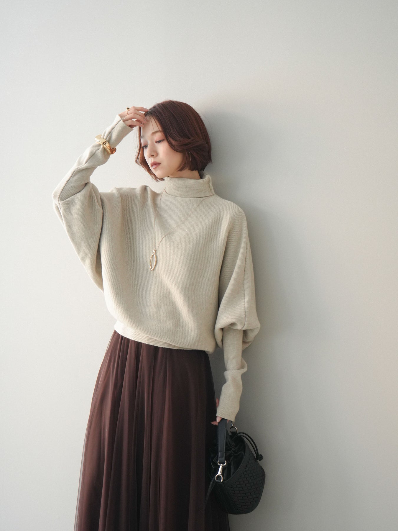 [予約]ボリュームドルマンタートルニットプルオーバー/ivory