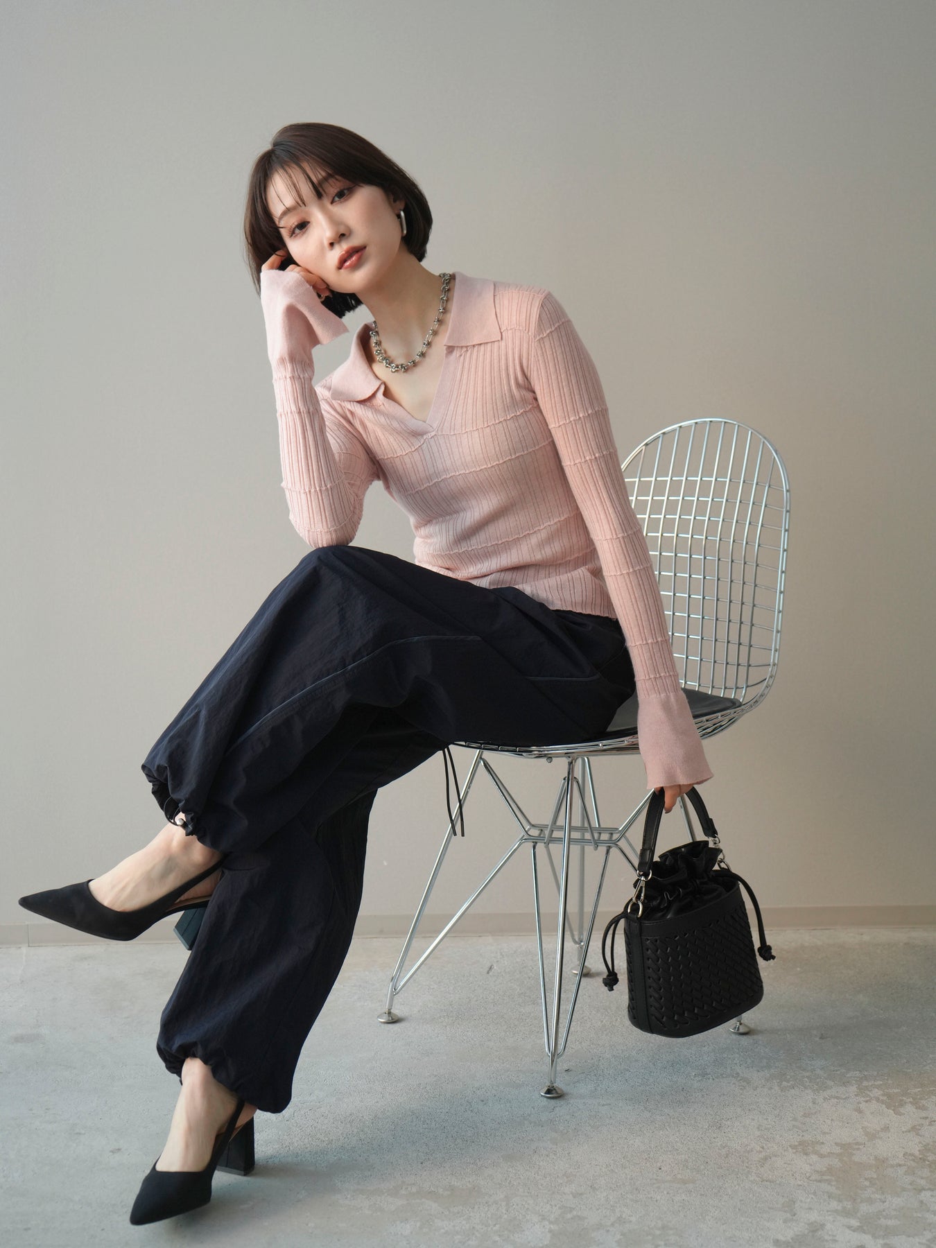 程よい透け感が魅力のシアーリブ素材を使用した、スキッパーデザインのニットトップス。デコルテをすっきりと見せる襟元が抜け感を演出し、女性らしいバランスの取れた印象に仕上げます。縦ラインを強調するリブ編みが、身体のラインをきれいに見せつつ、軽やかな着心地もポイント。1枚ではもちろん、ジャケットやカーディガンのインナーとしても活躍し、きれいめからカジュアルまで幅広いスタイリングに取り入れやすい一着です。 ※ボトムス、キャミソール(インナー)以外の商品は一律でインナーは付属していません。