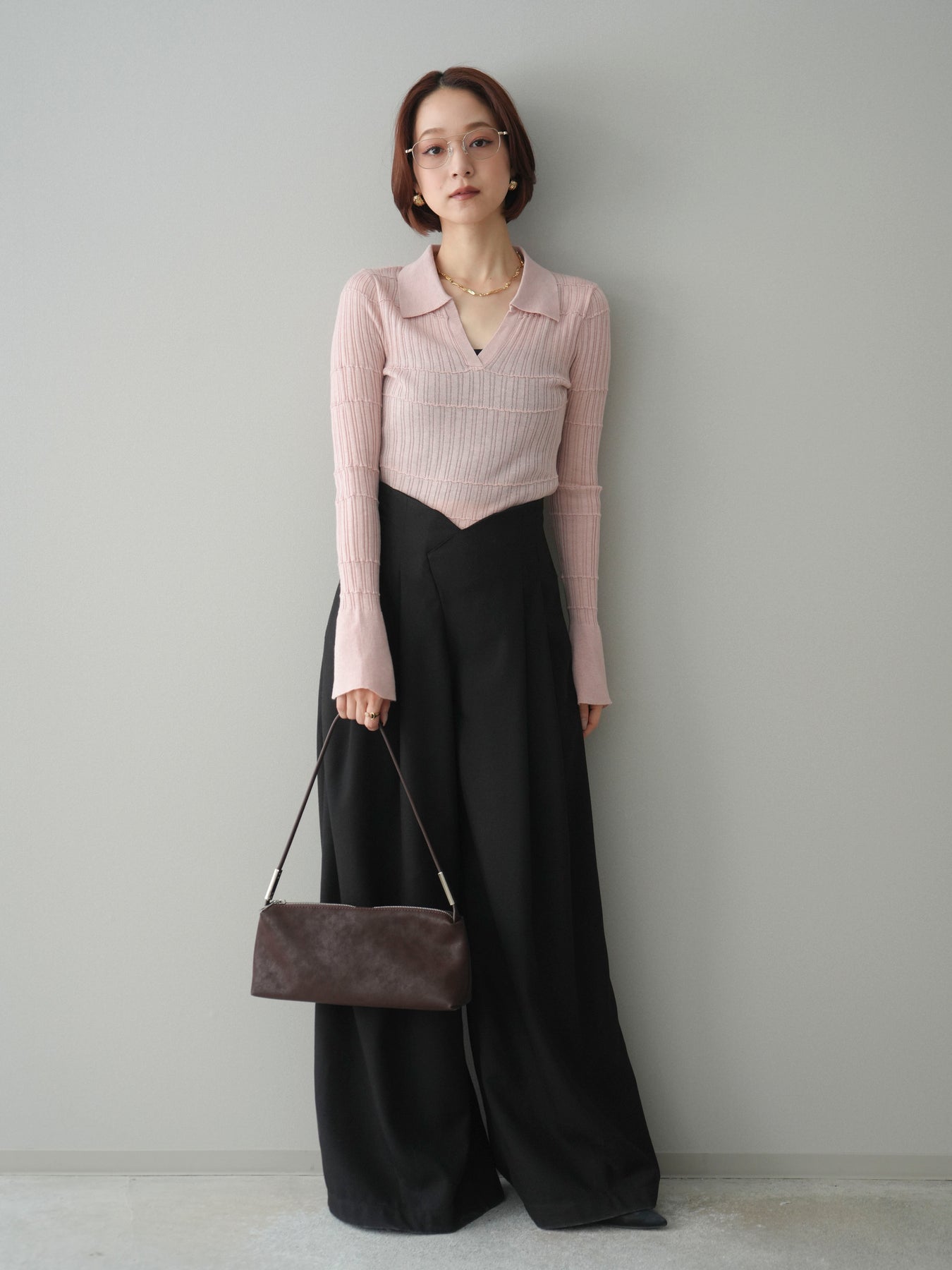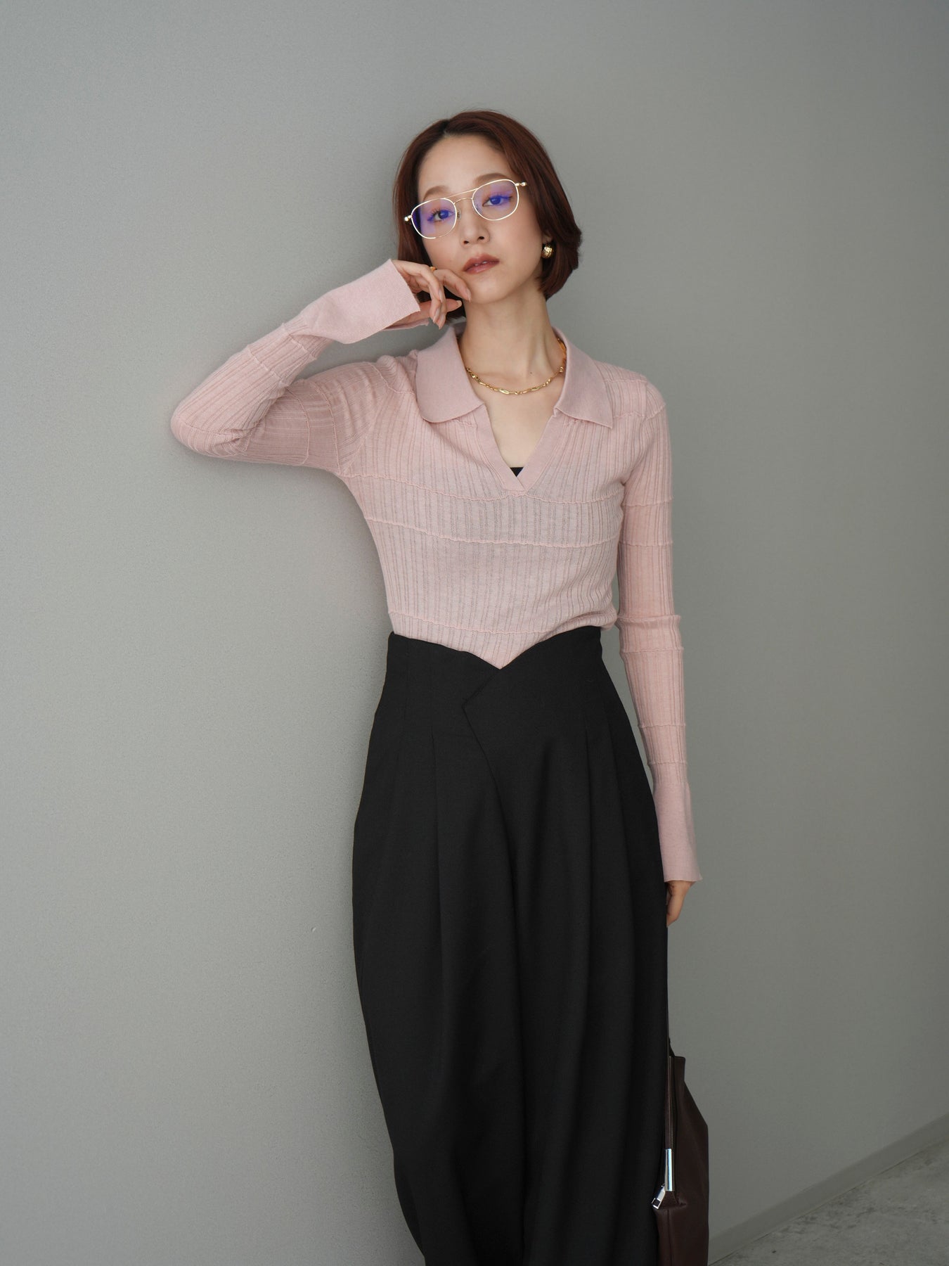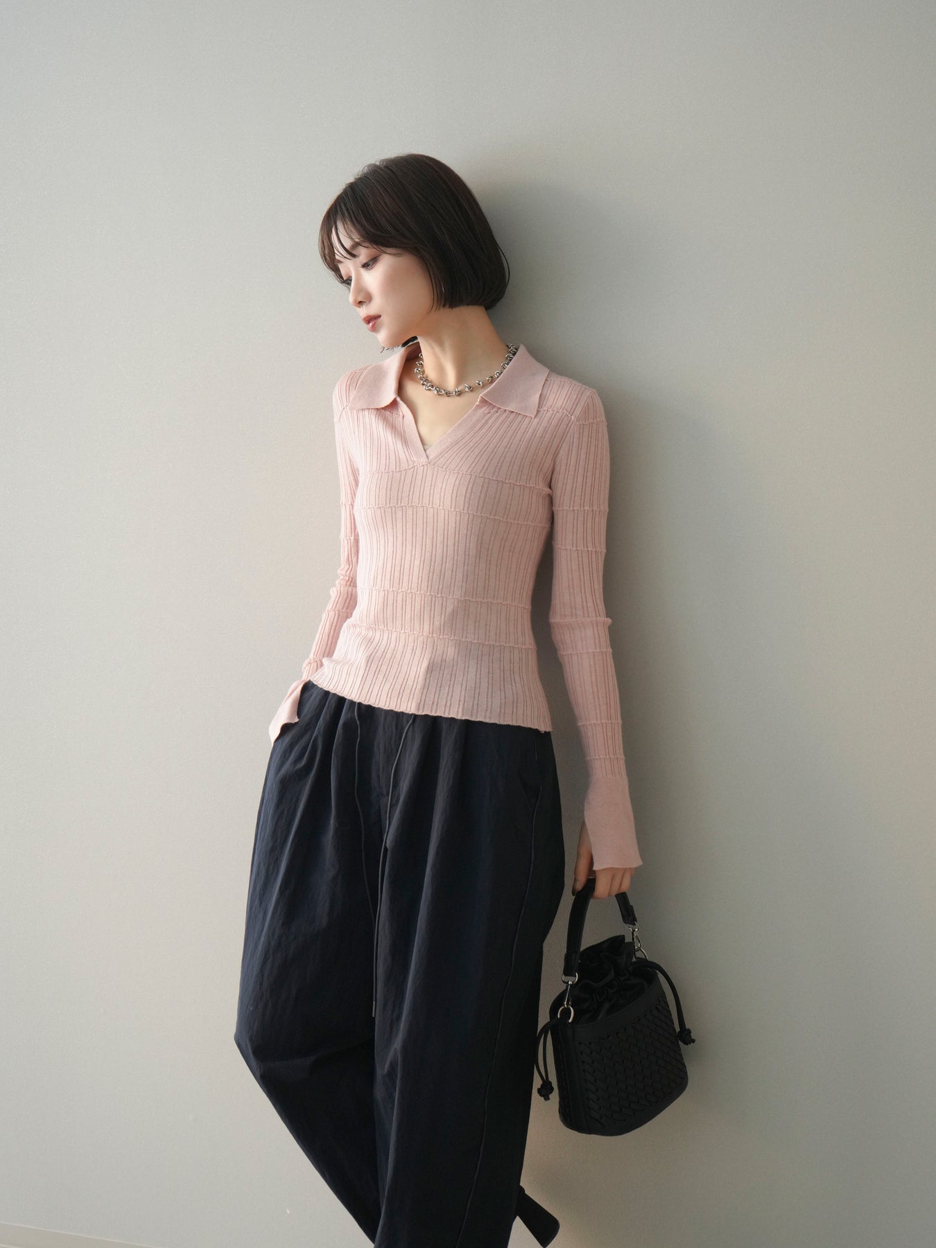 [予約]シアーリブスキッパーニットトップス/pink
