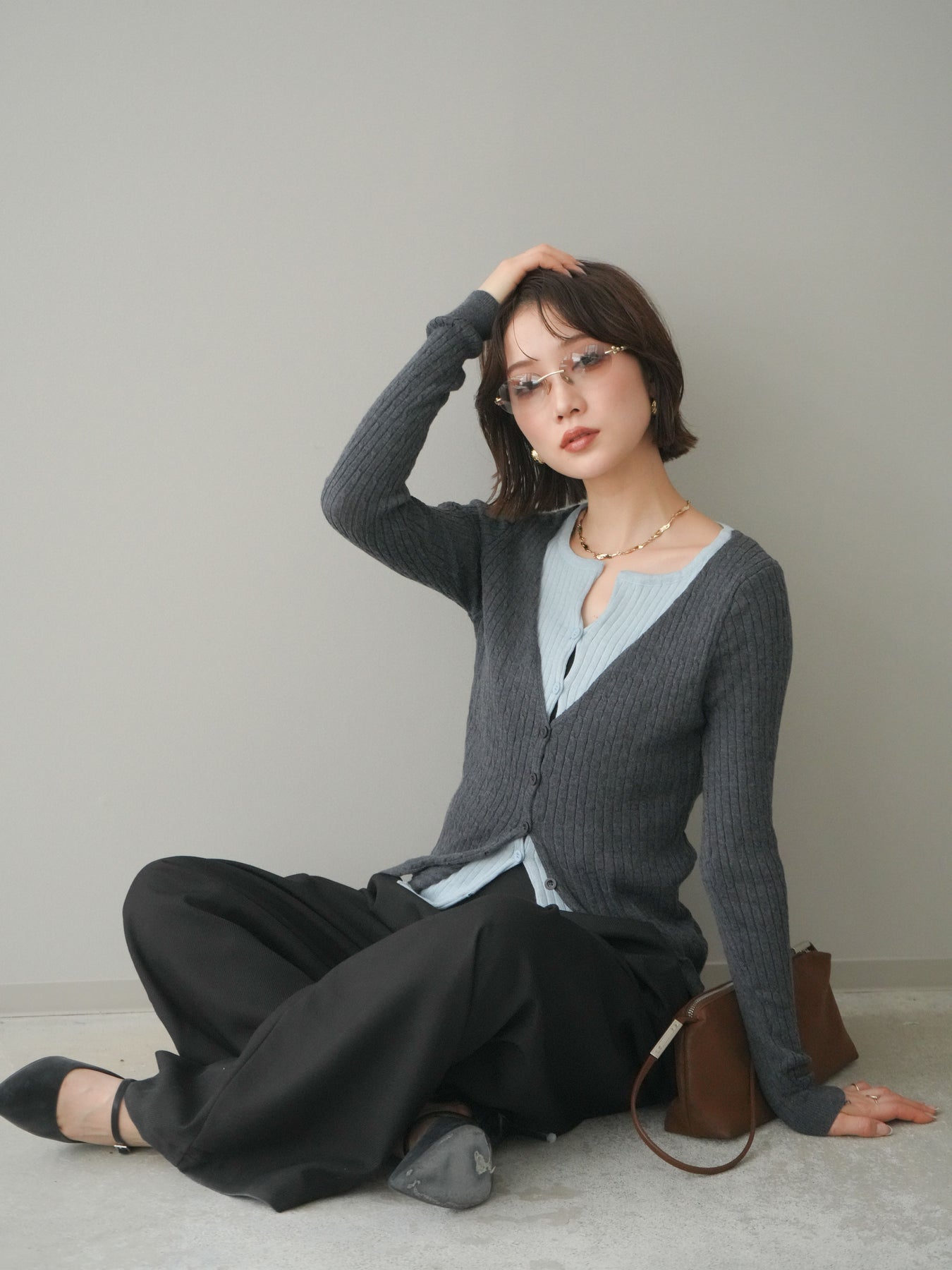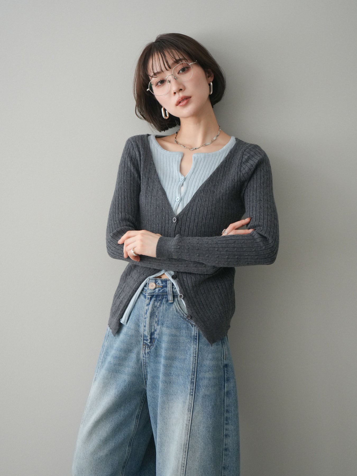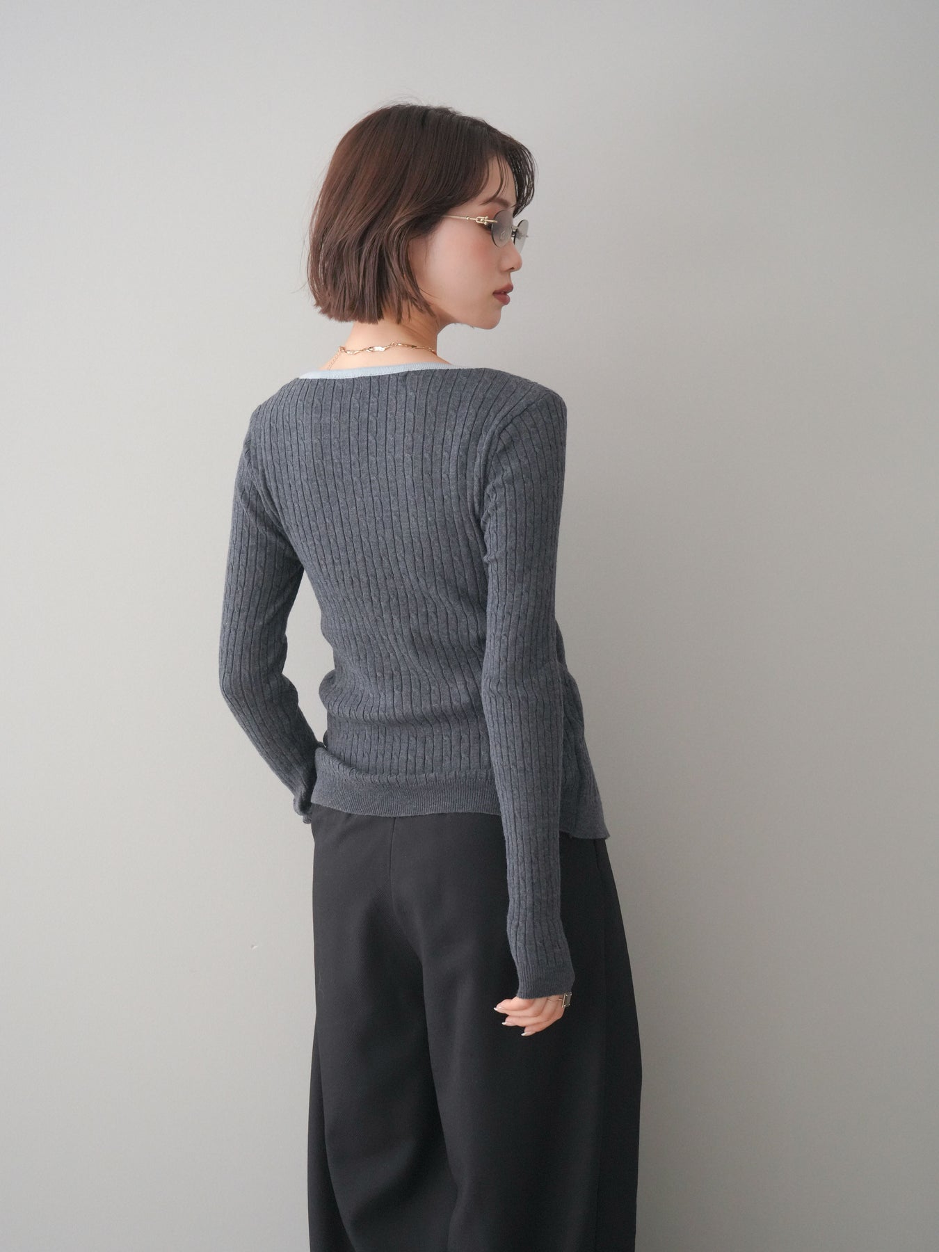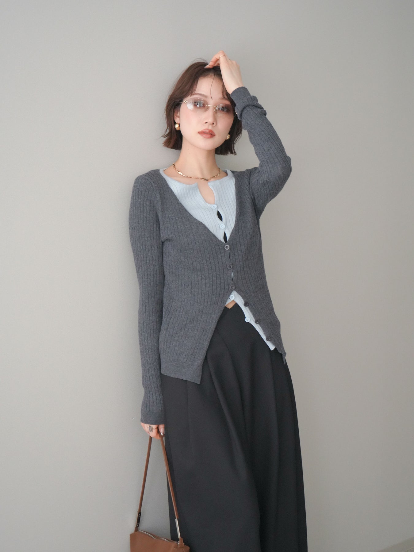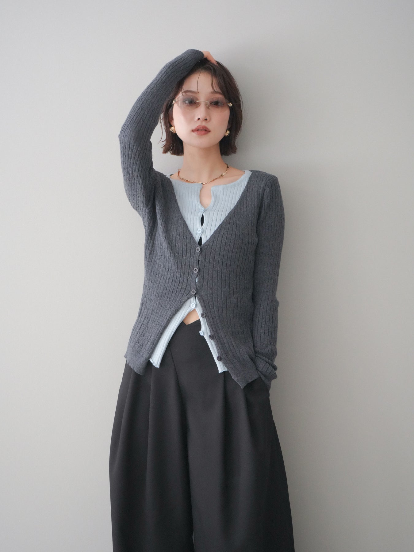 [予約]バイカラーレイヤードニットカーディガン/gray
