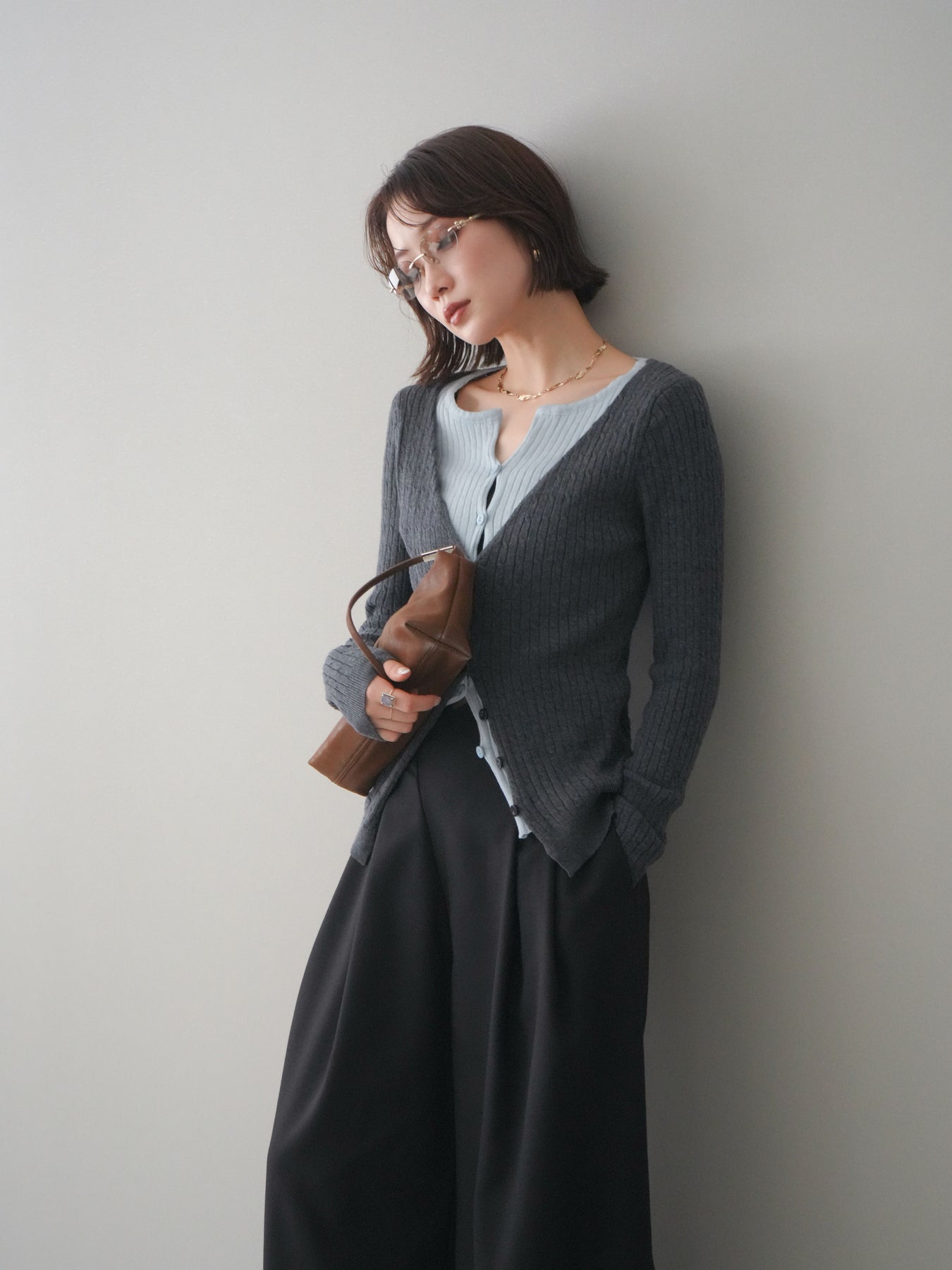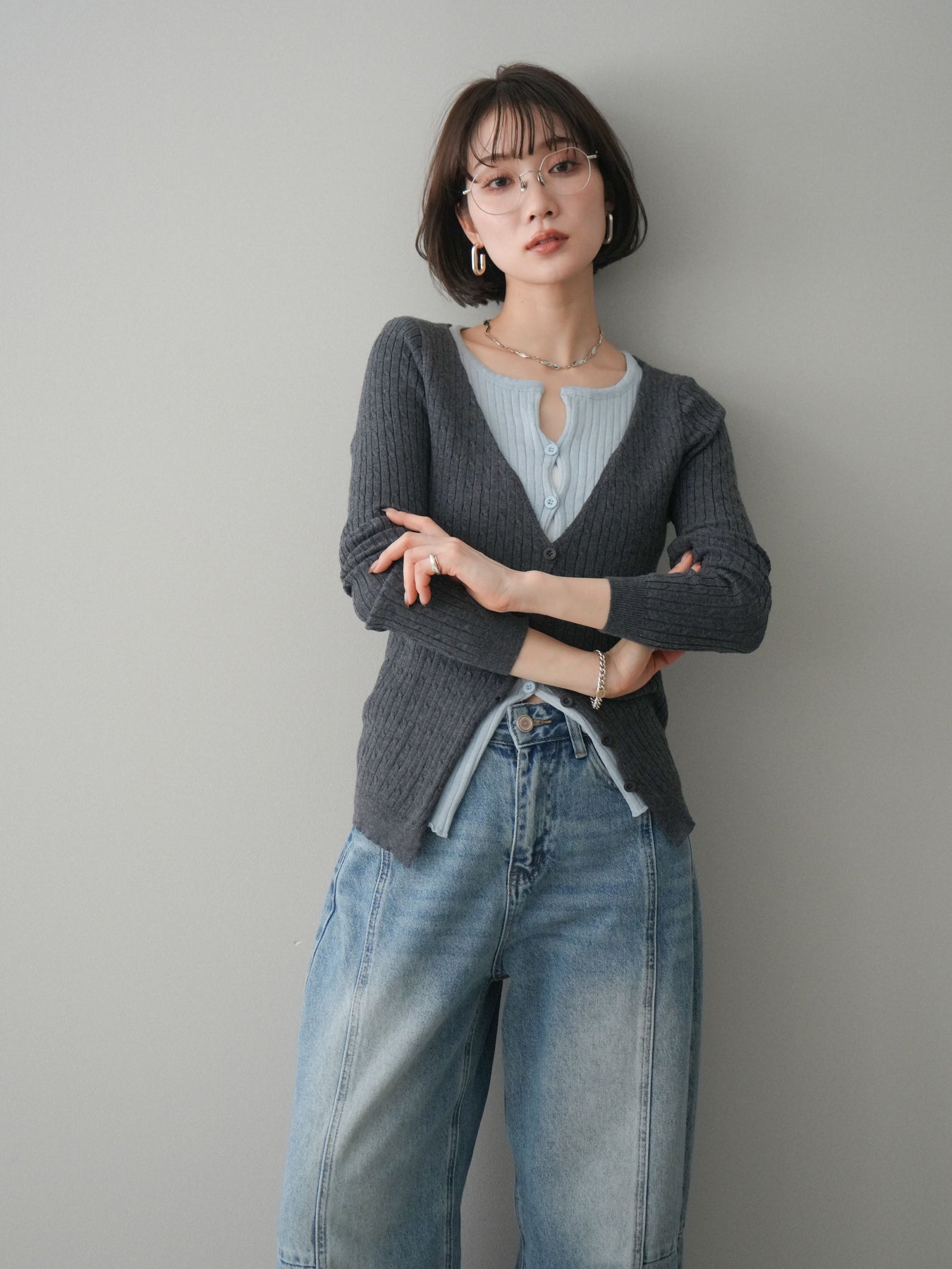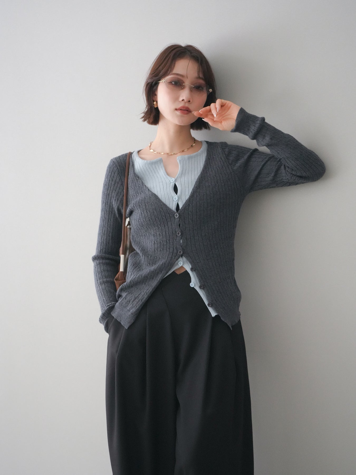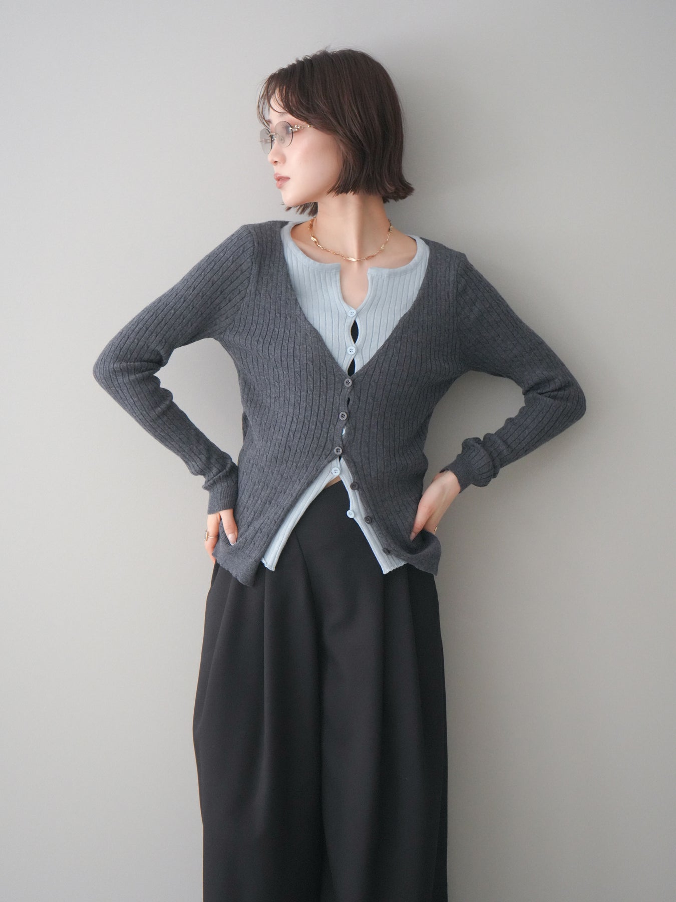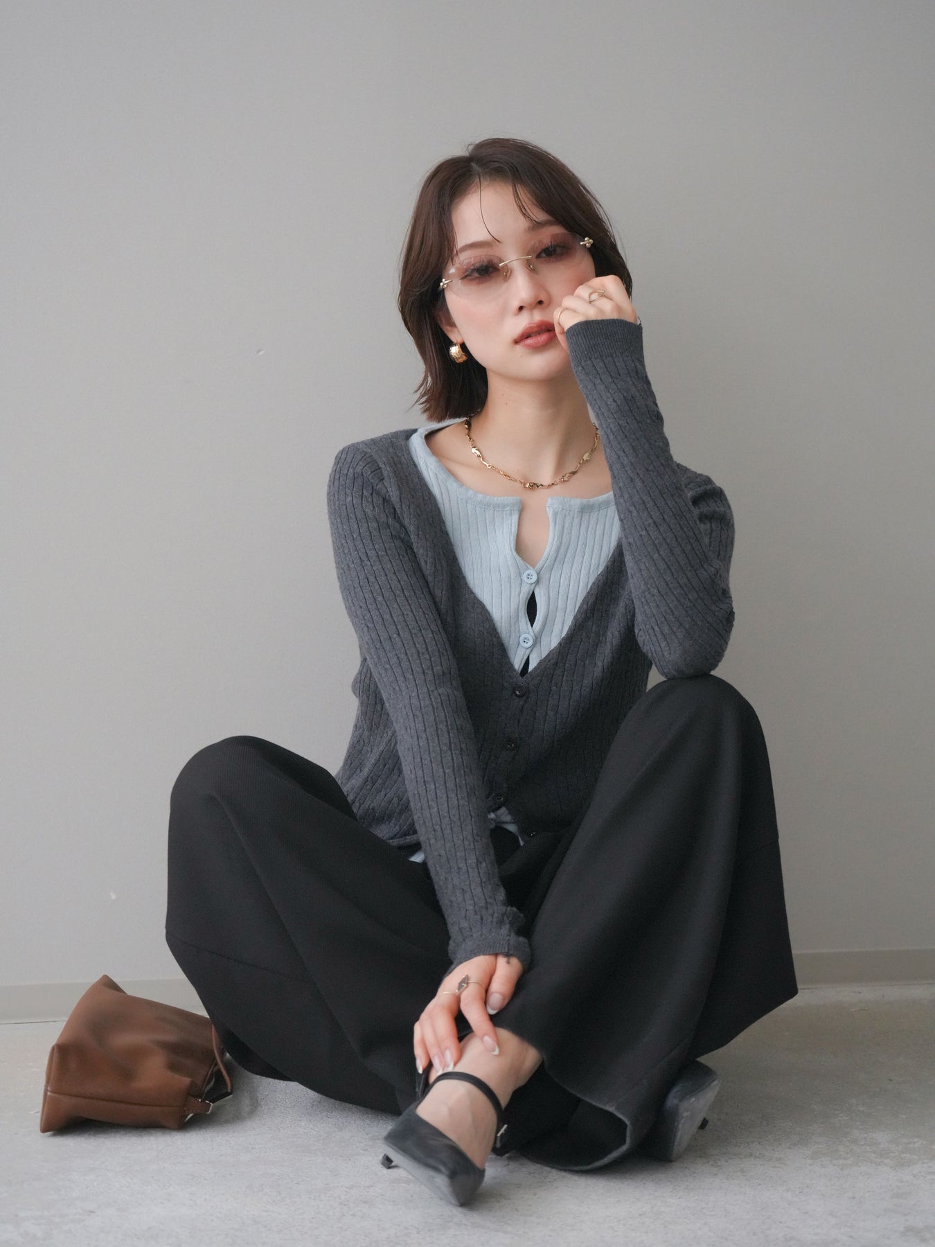 [予約]バイカラーレイヤードニットカーディガン/gray