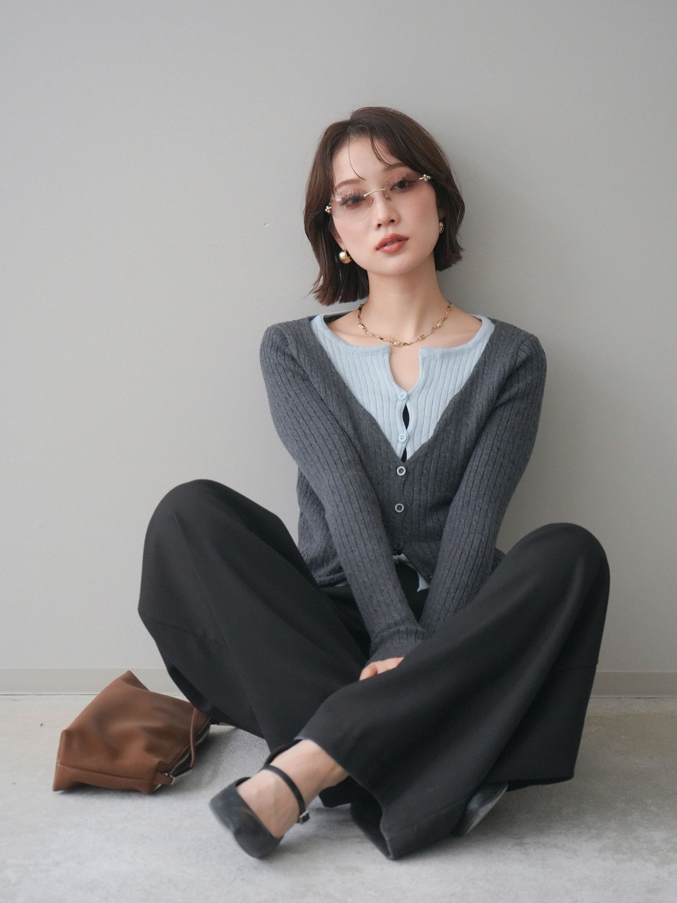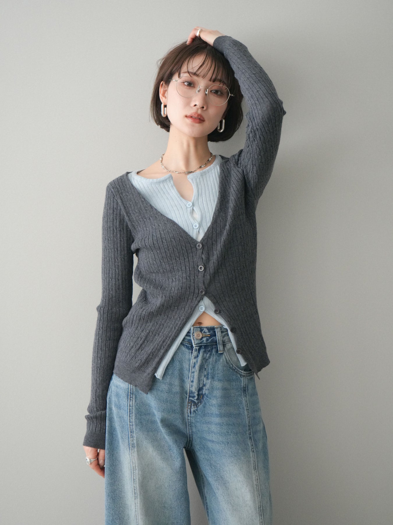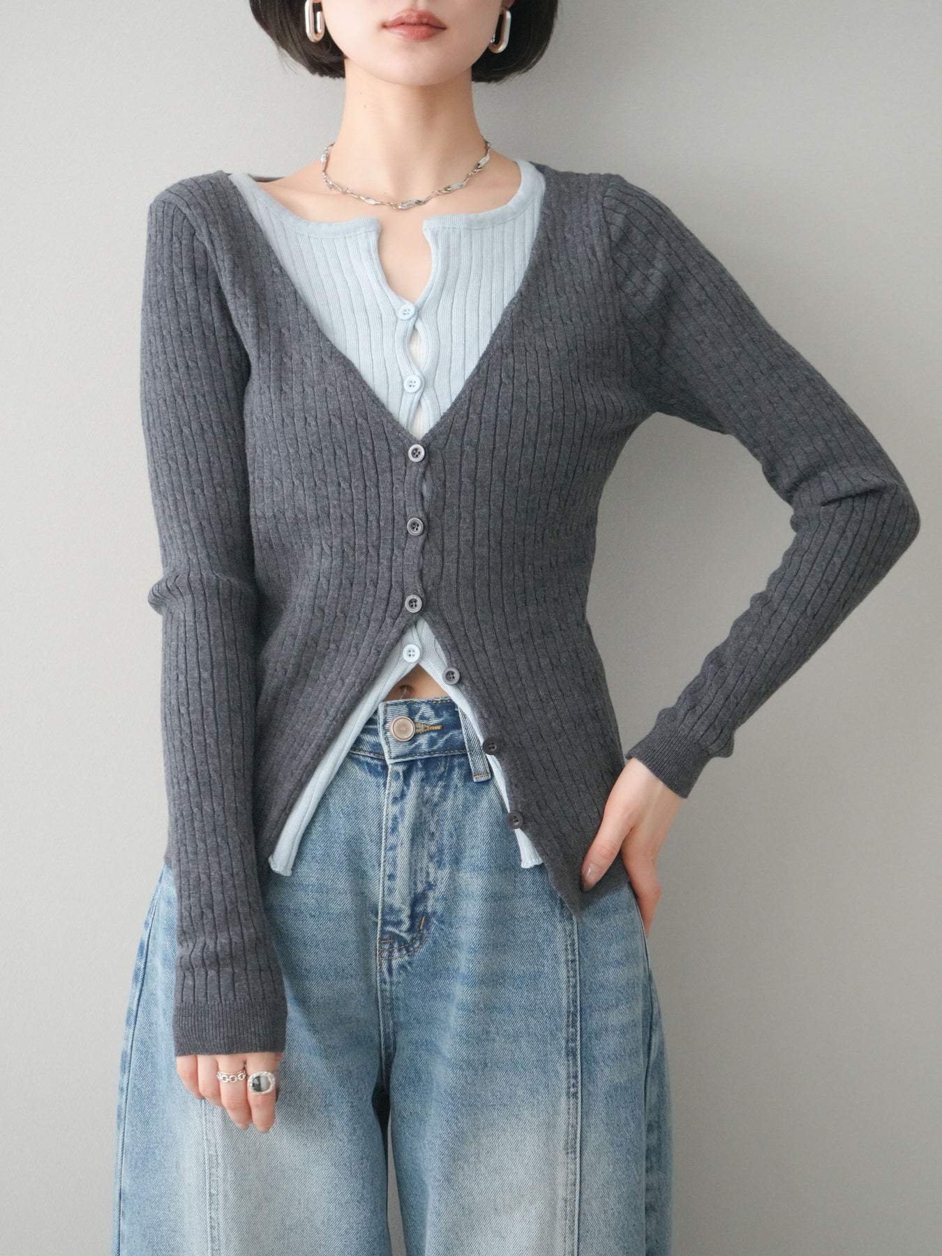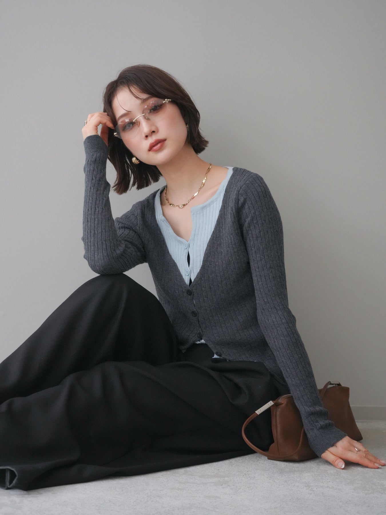 [予約]バイカラーレイヤードニットカーディガン/gray