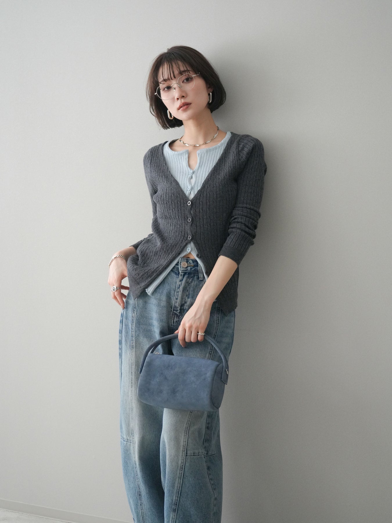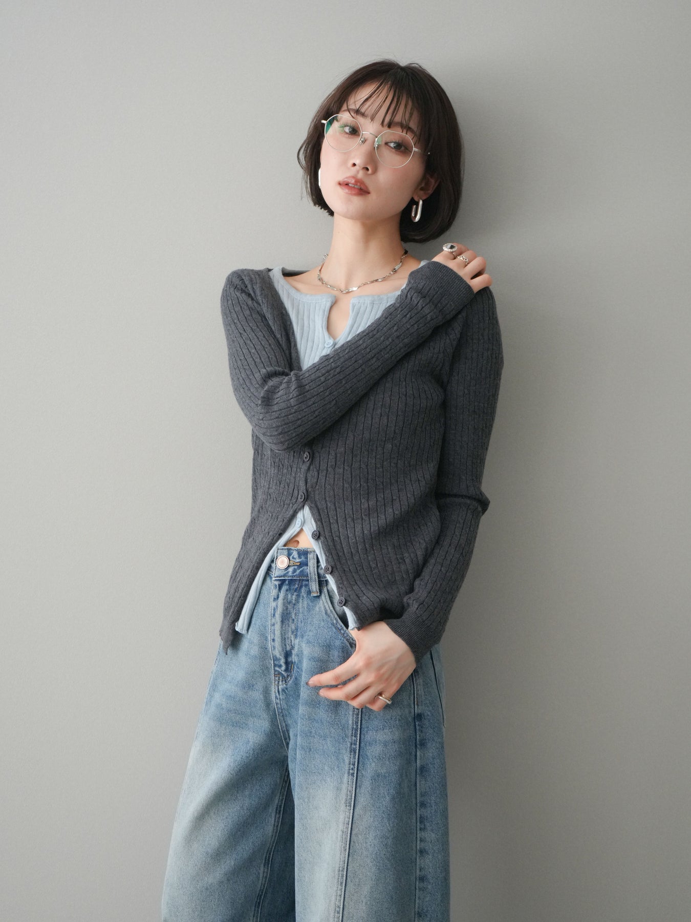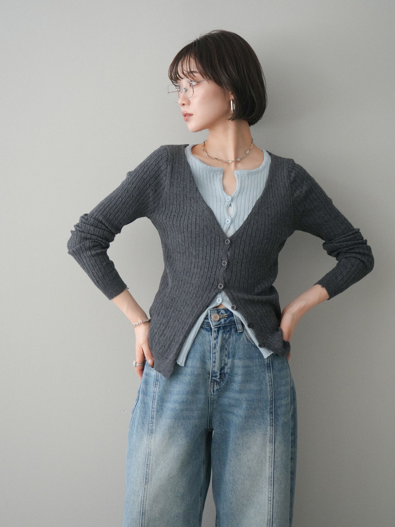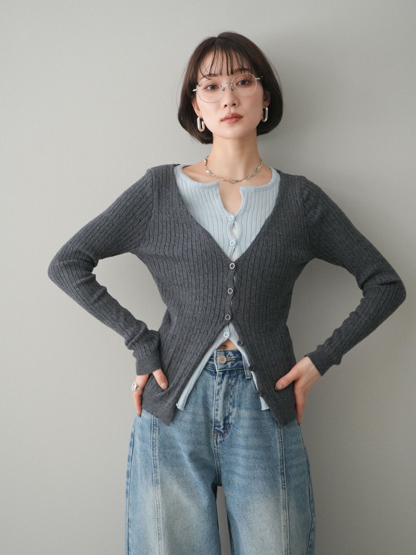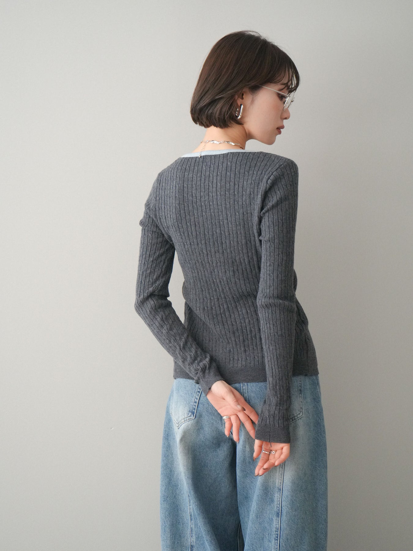 [予約]バイカラーレイヤードニットカーディガン/gray