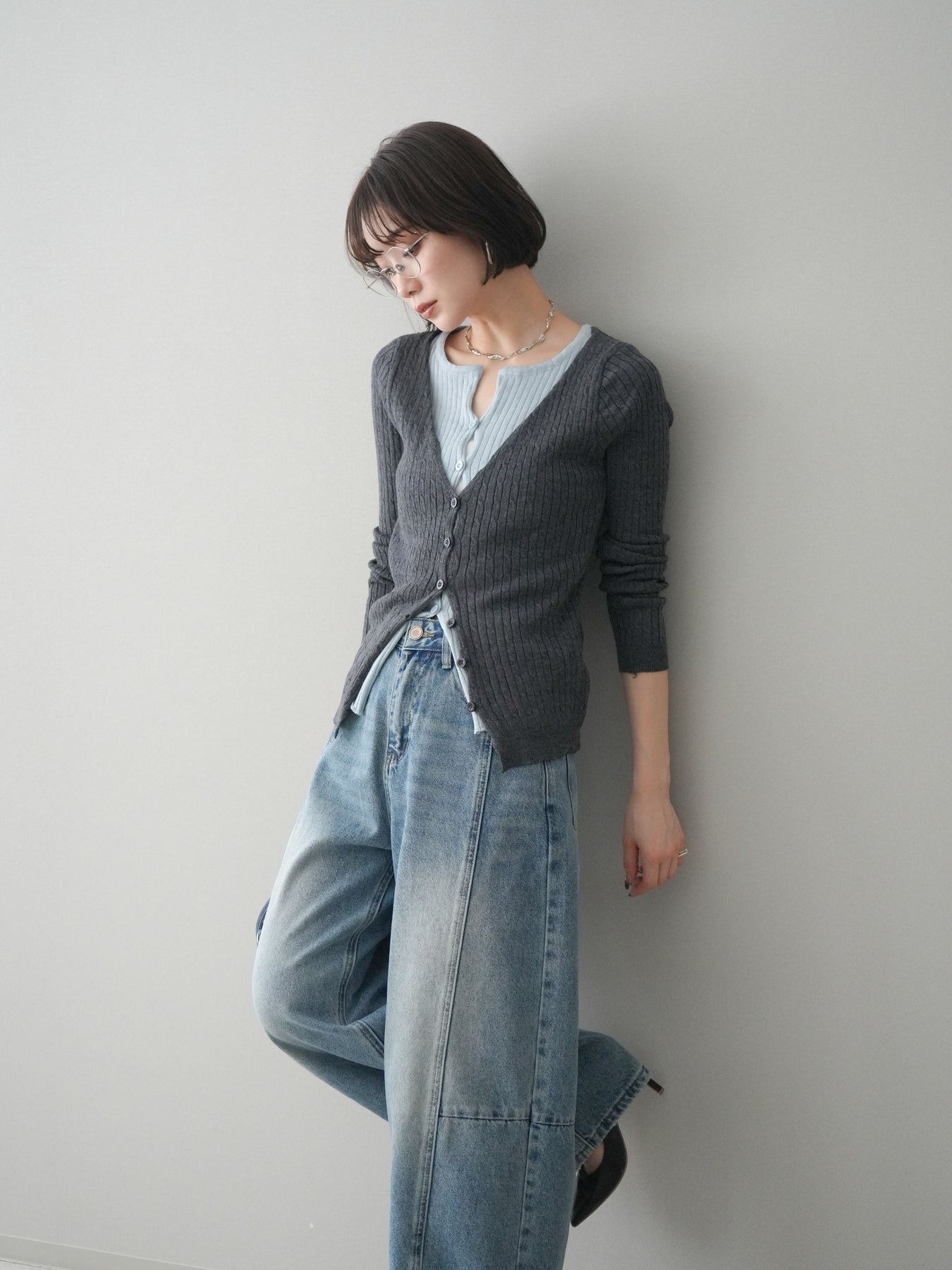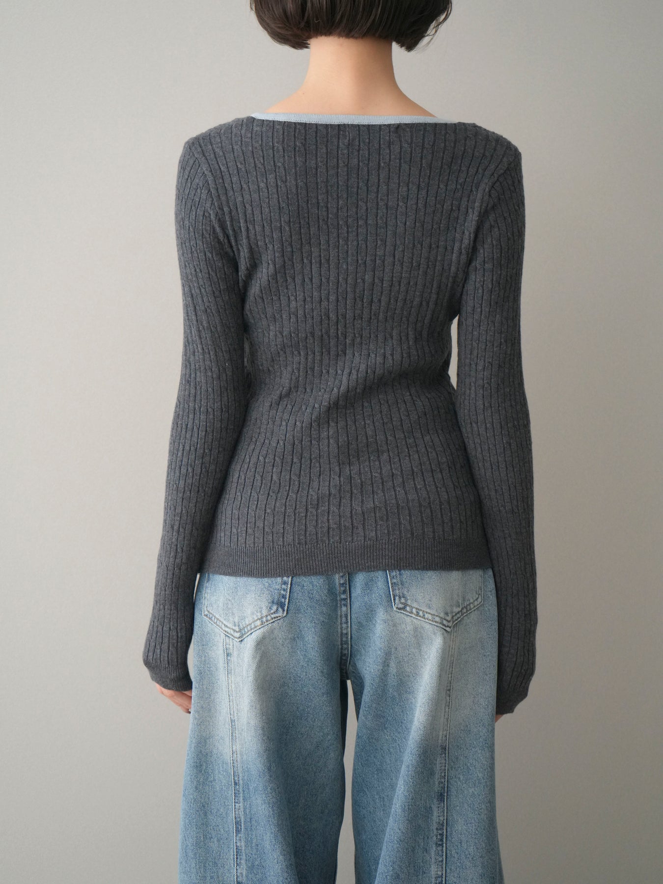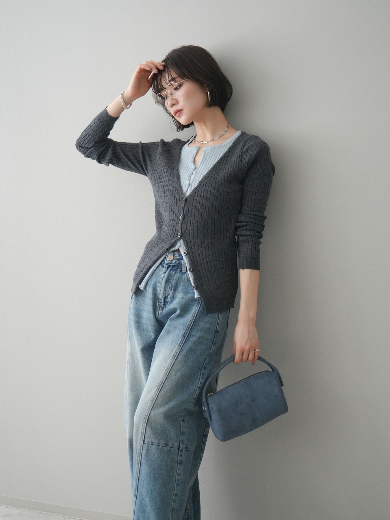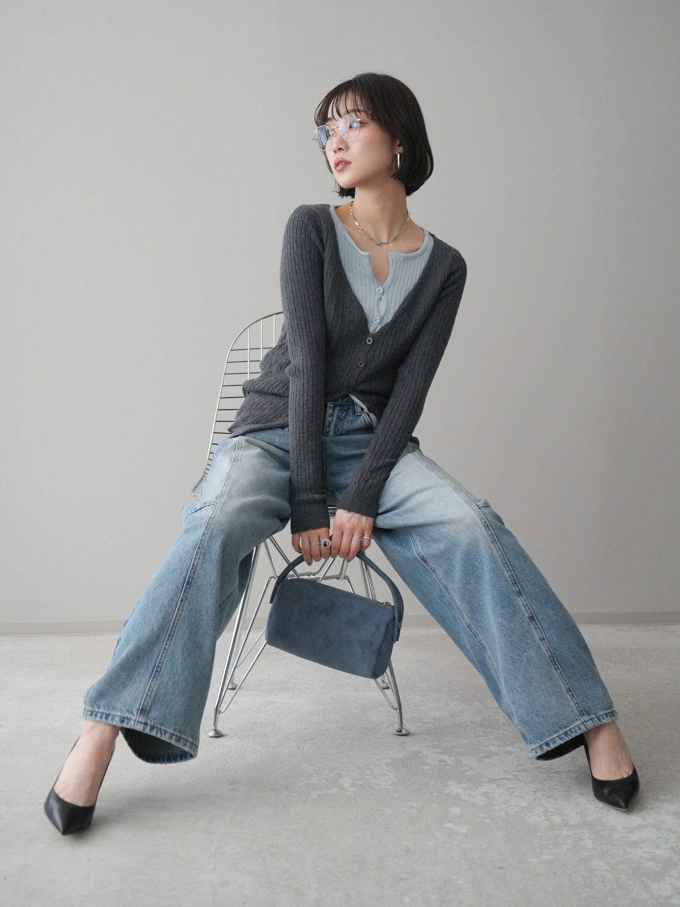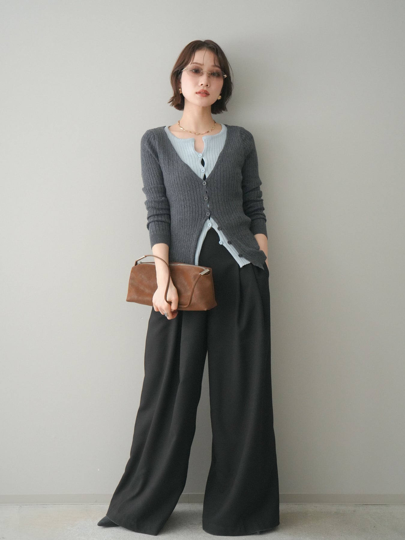 [予約]バイカラーレイヤードニットカーディガン/gray