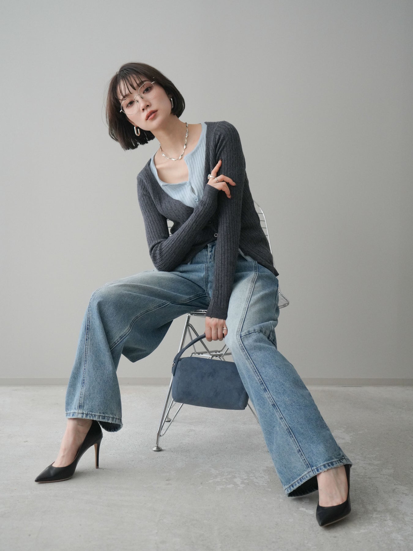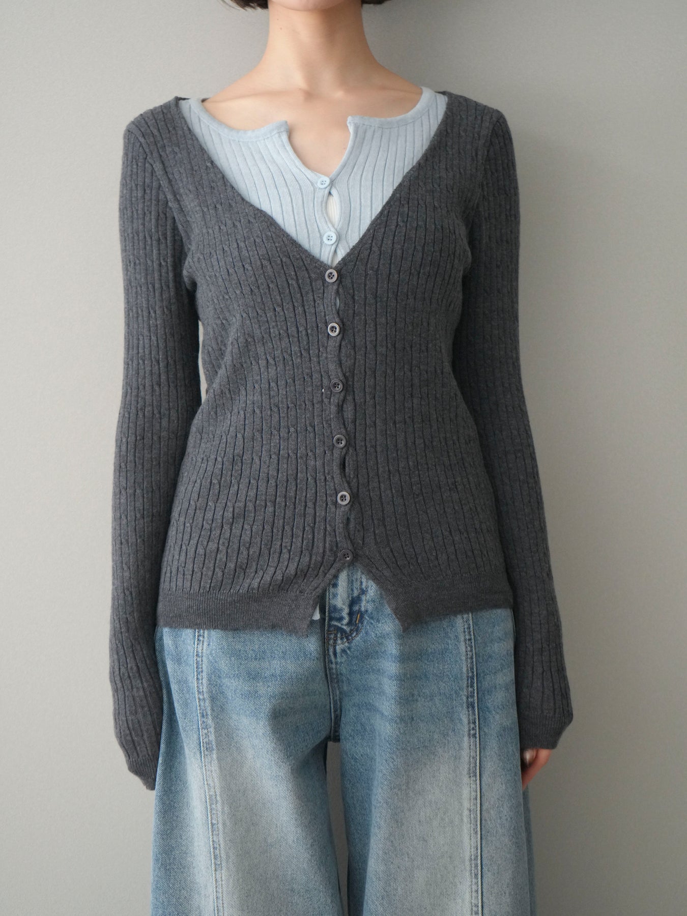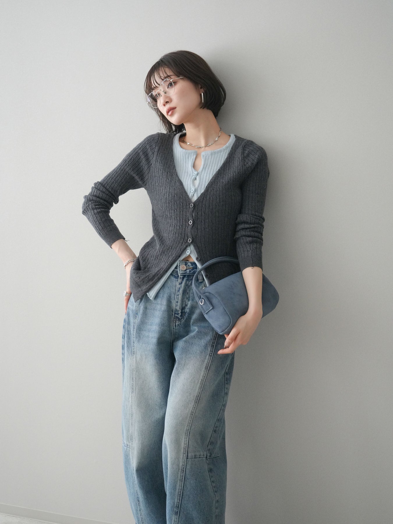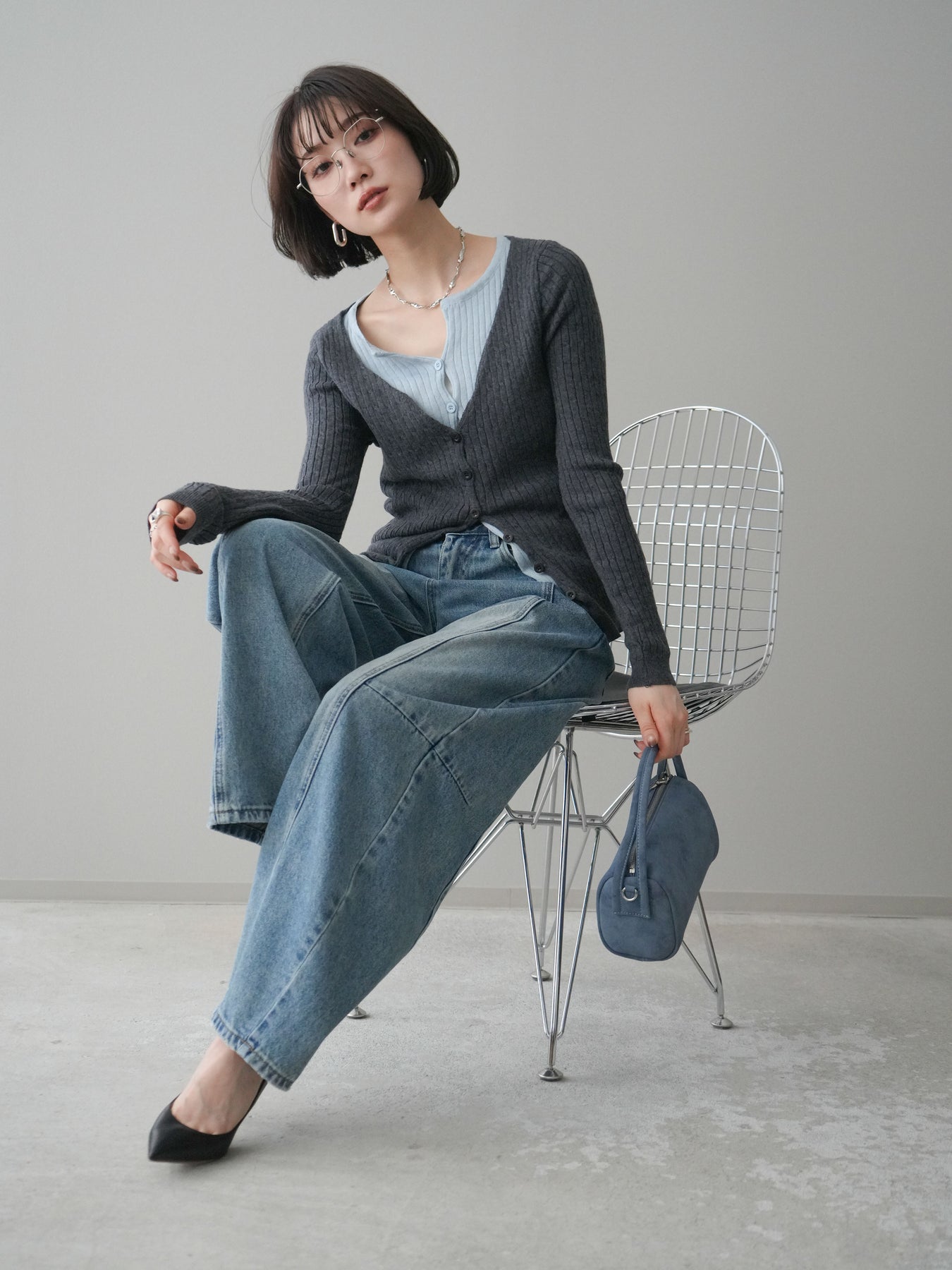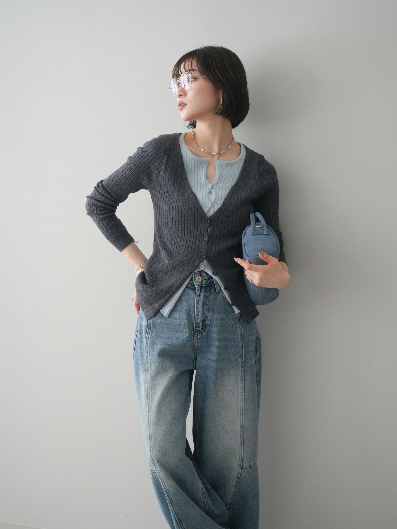 [予約]バイカラーレイヤードニットカーディガン/gray