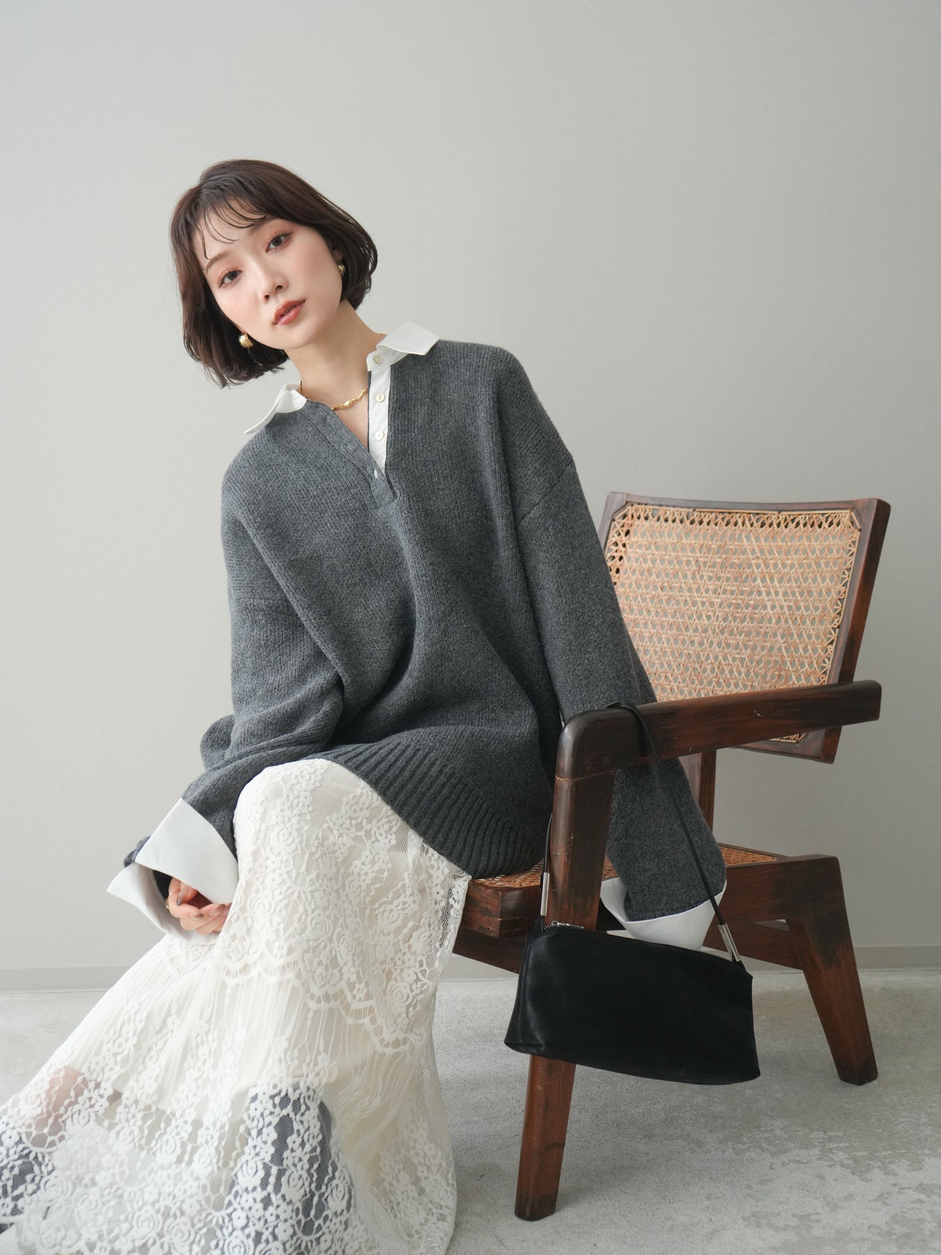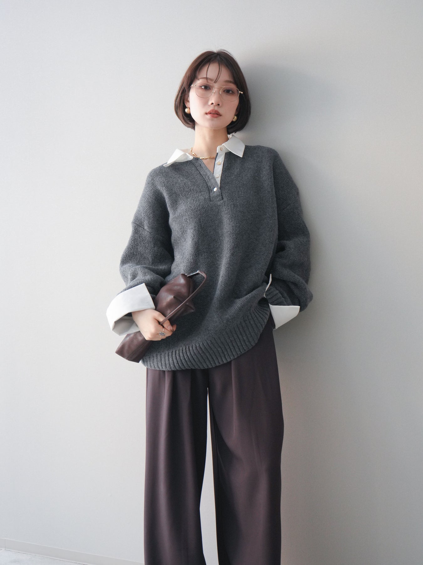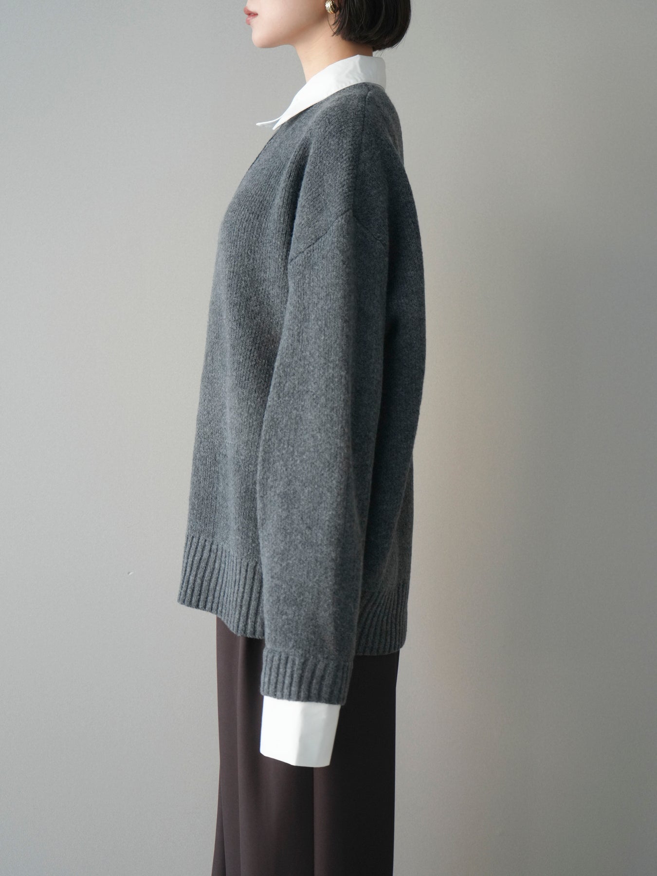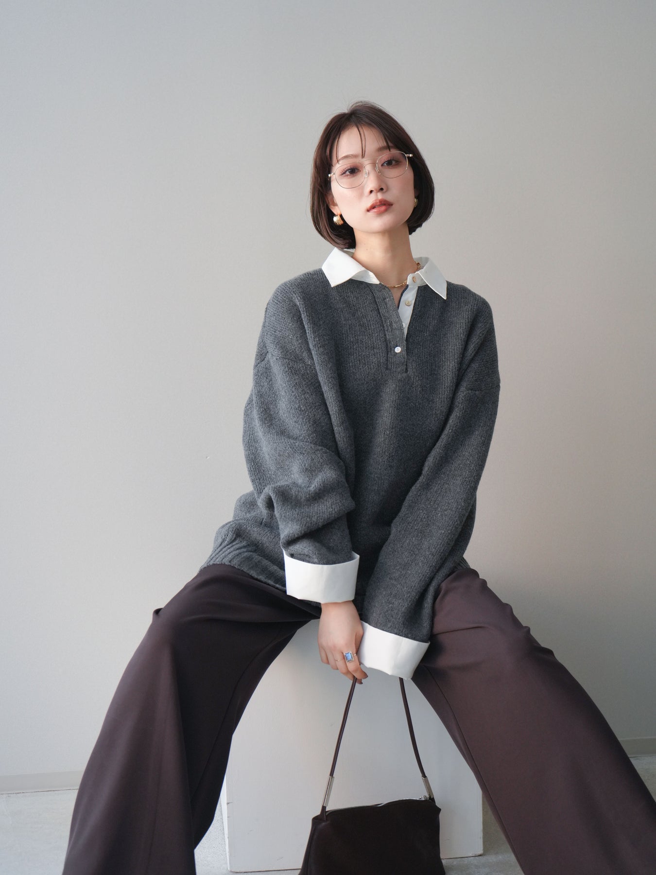 シャツを重ねたようなデザインが特徴の、ドッキング仕様オーバーニットプルオーバー。襟元や袖口、裾から覗くシャツディテールが、ニットスタイルに程よいきちんと感と抜け感をプラスします。ゆったりとしたオーバーシルエットで体のラインを拾いにくく、リラックス感のある着心地も魅力。1枚でレイヤード風の着こなしが完成し、パンツにもスカートにも合わせやすく、デイリーからお出かけまで幅広く活躍する一着です。 ※ボトムス、キャミソール(インナー)以外の商品は一律でインナーは付属していません。