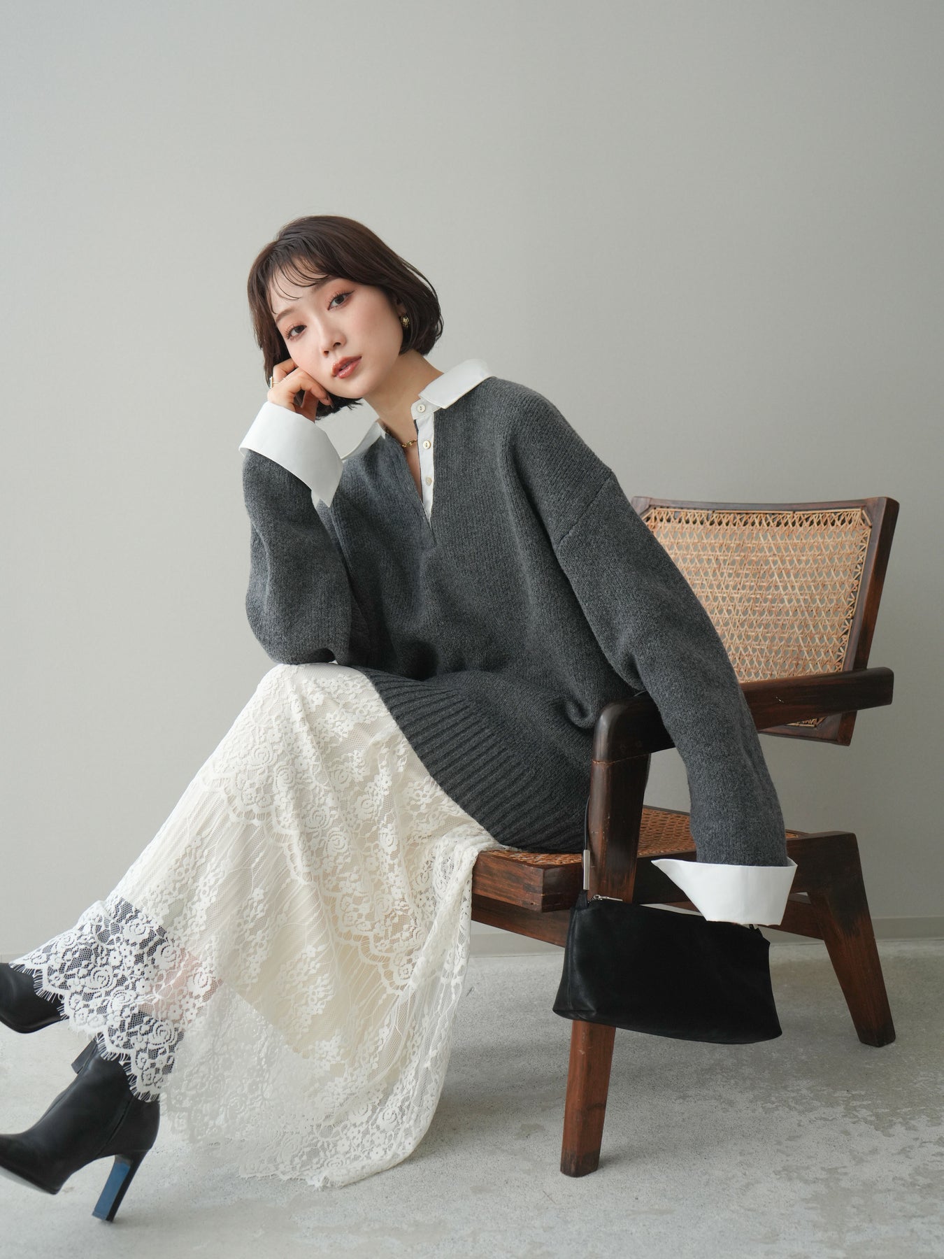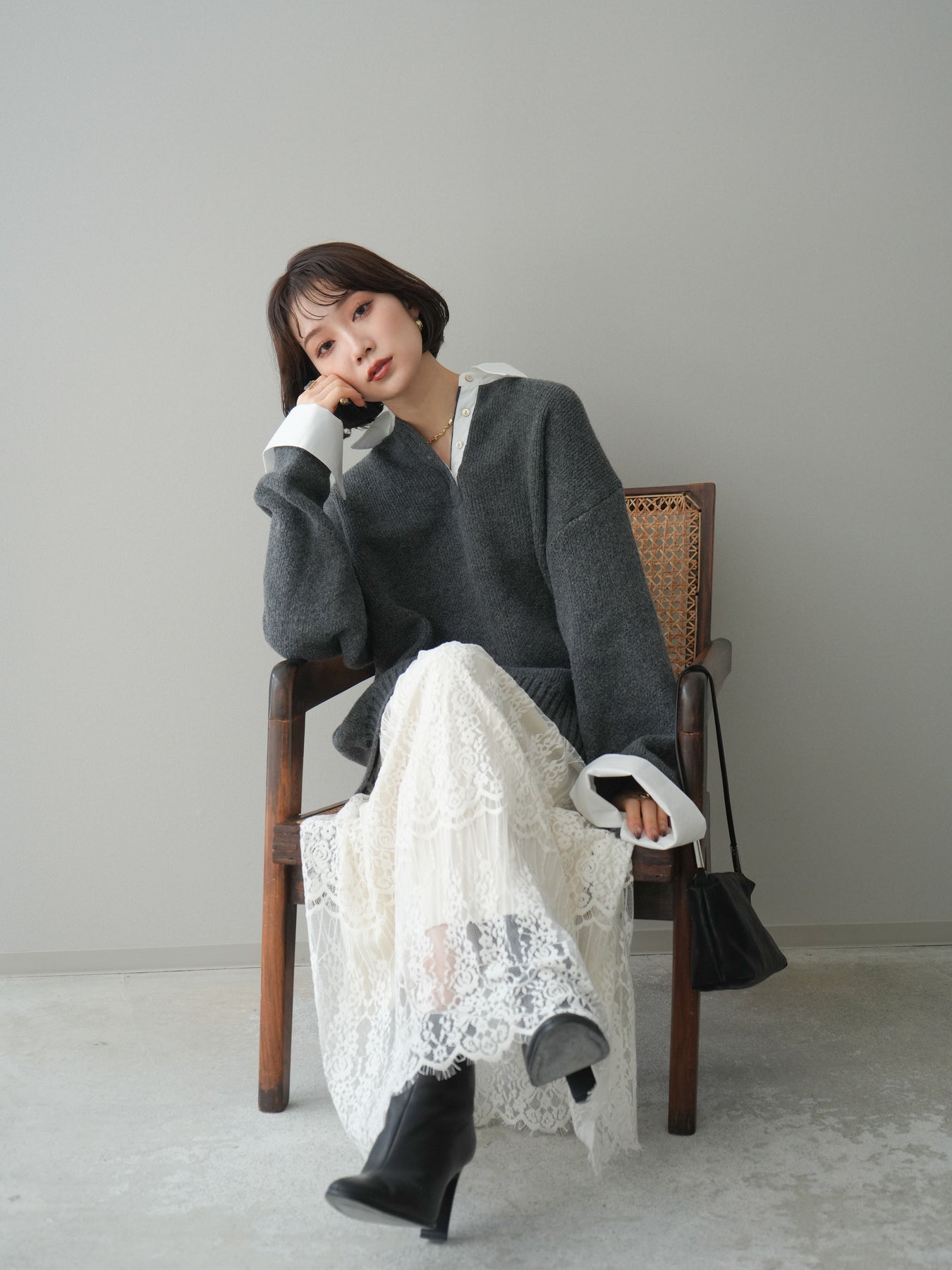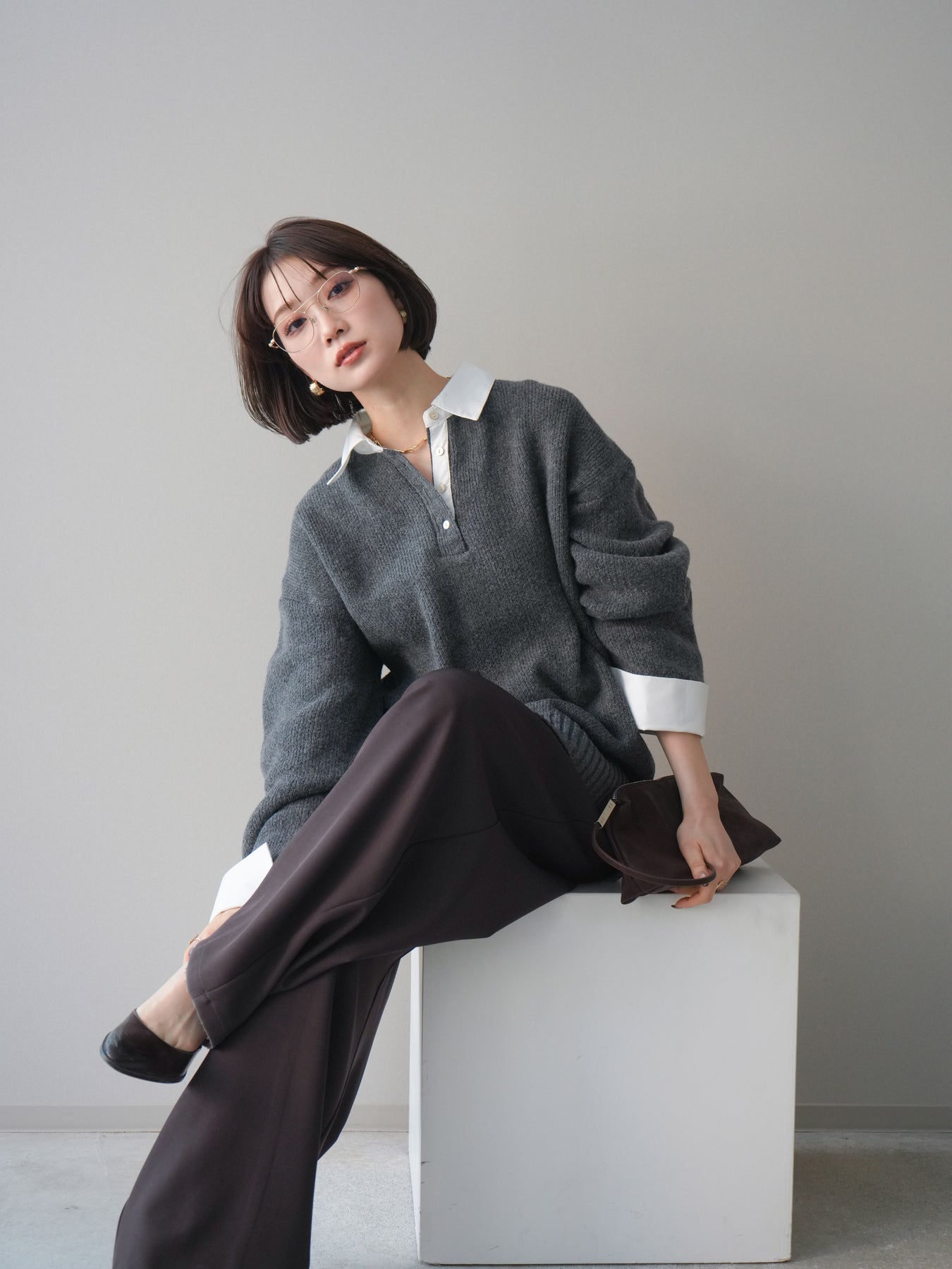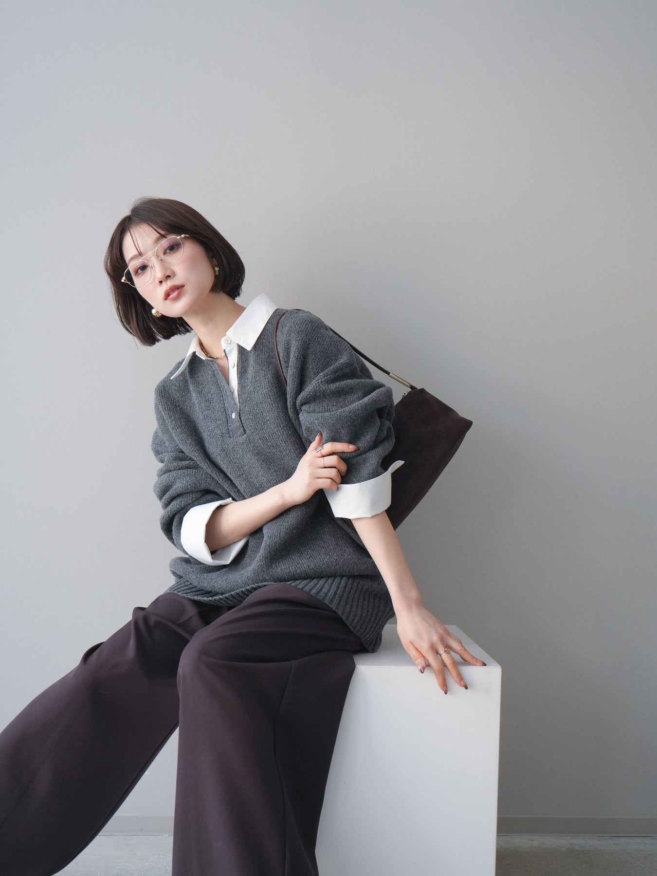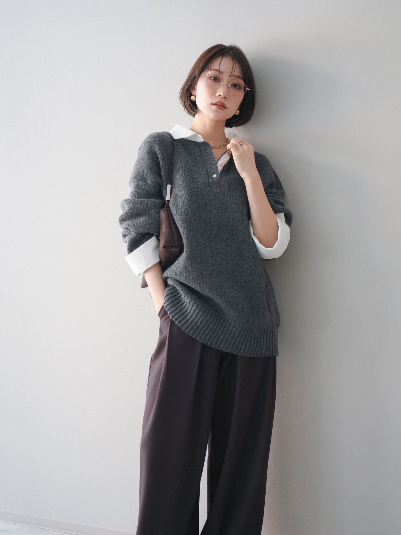シャツを重ねたようなデザインが特徴の、ドッキング仕様オーバーニットプルオーバー。襟元や袖口、裾から覗くシャツディテールが、ニットスタイルに程よいきちんと感と抜け感をプラスします。ゆったりとしたオーバーシルエットで体のラインを拾いにくく、リラックス感のある着心地も魅力。1枚でレイヤード風の着こなしが完成し、パンツにもスカートにも合わせやすく、デイリーからお出かけまで幅広く活躍する一着です。 ※ボトムス、キャミソール(インナー)以外の商品は一律でインナーは付属していません。