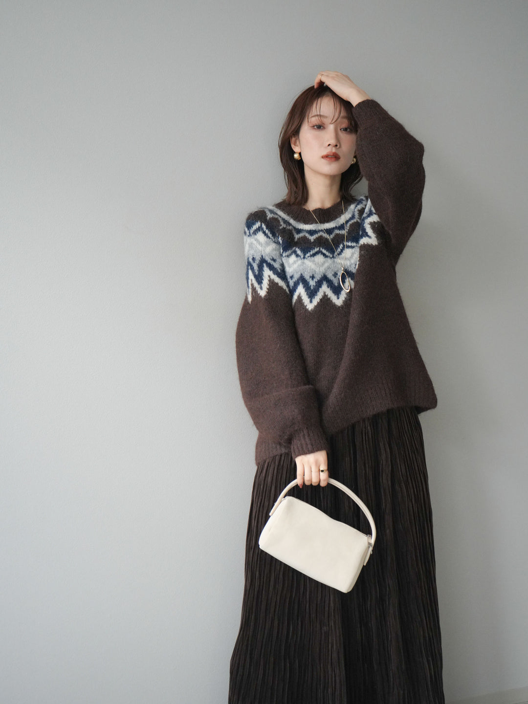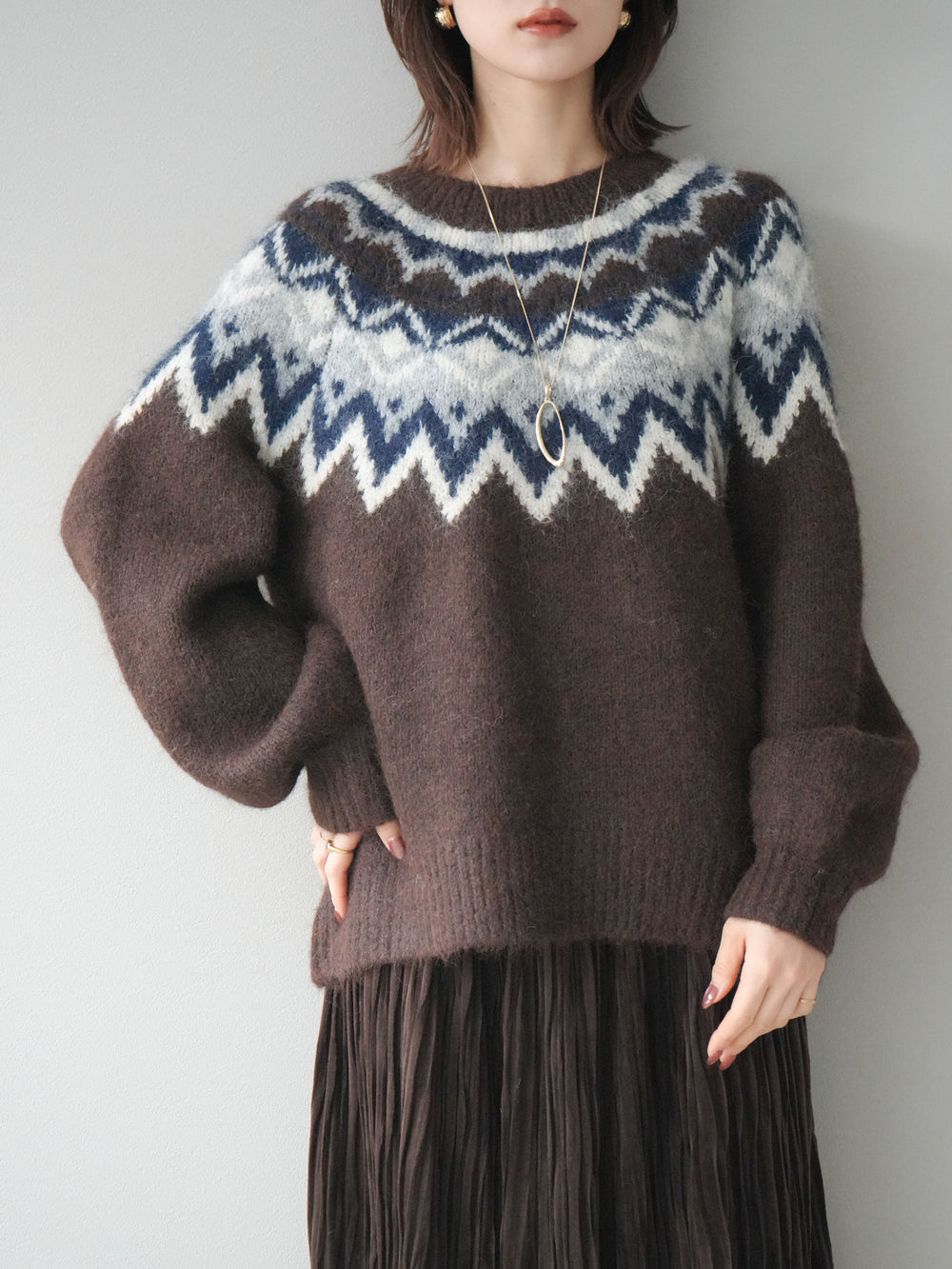 [予約]求心柄オーバーニットプルオーバー/brown