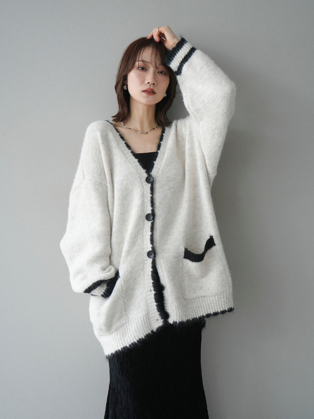 [予約]バイカラーラメニットカーディガン/ivory