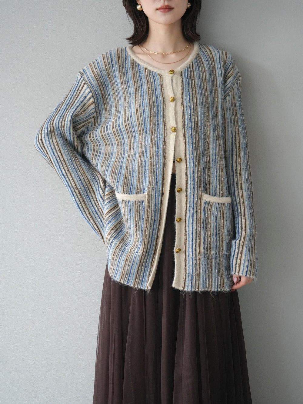 [予約]アンティークボタンストライプニットカーディガン/ivory