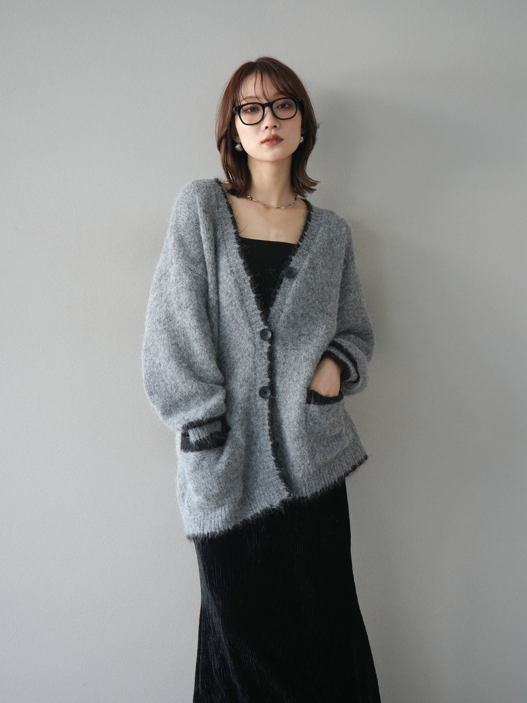 [予約]バイカラーラメニットカーディガン/gray