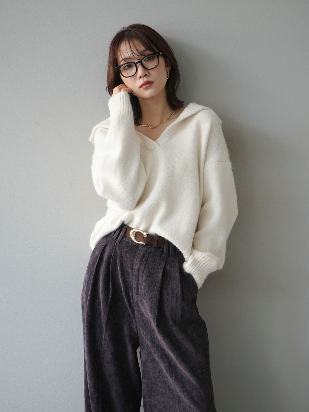 [予約]スキッパーニットプルオーバー/offwhite