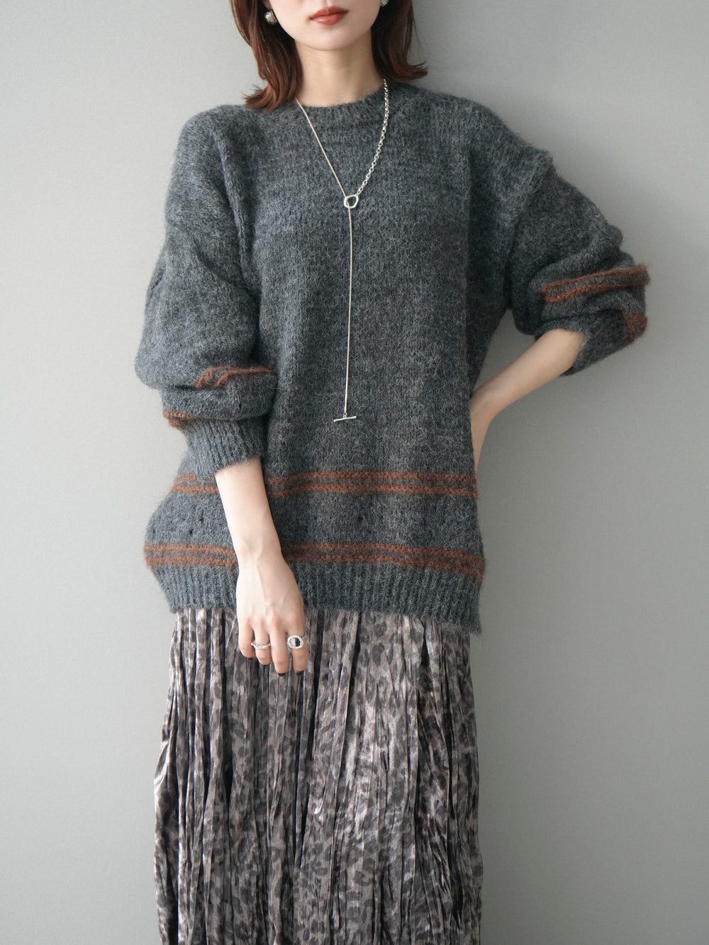 [予約]クルーネックラインボーダーニットプルオーバー/gray