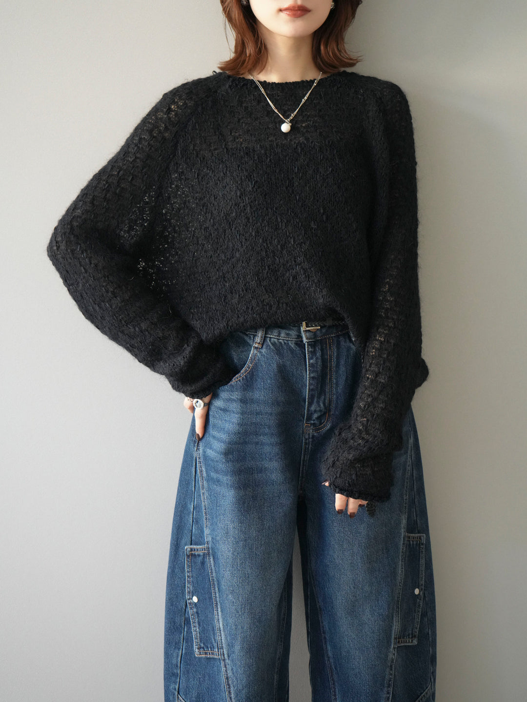 [予約]透かし編みモヘアタッチポコポコニットプルオーバー/black