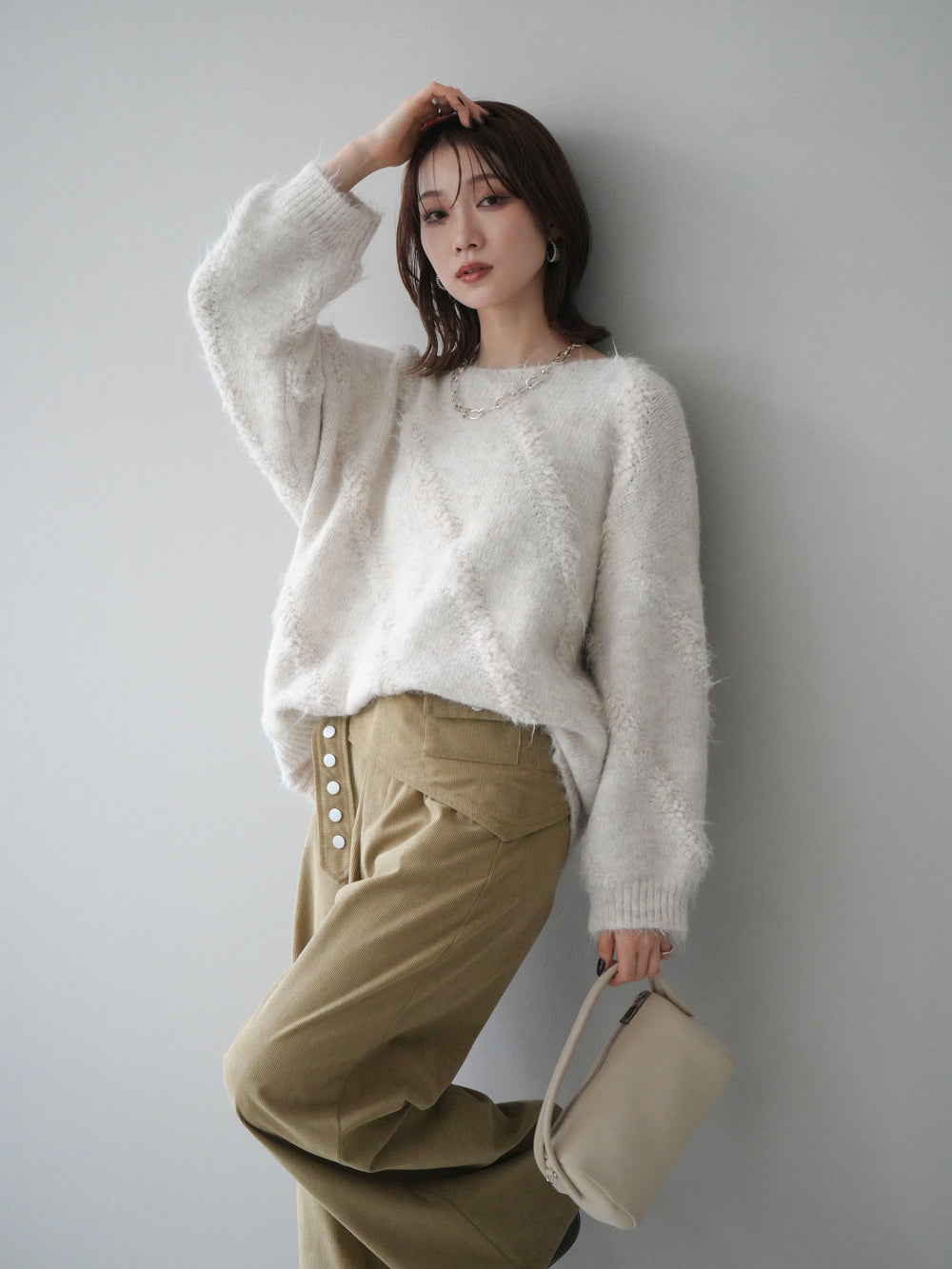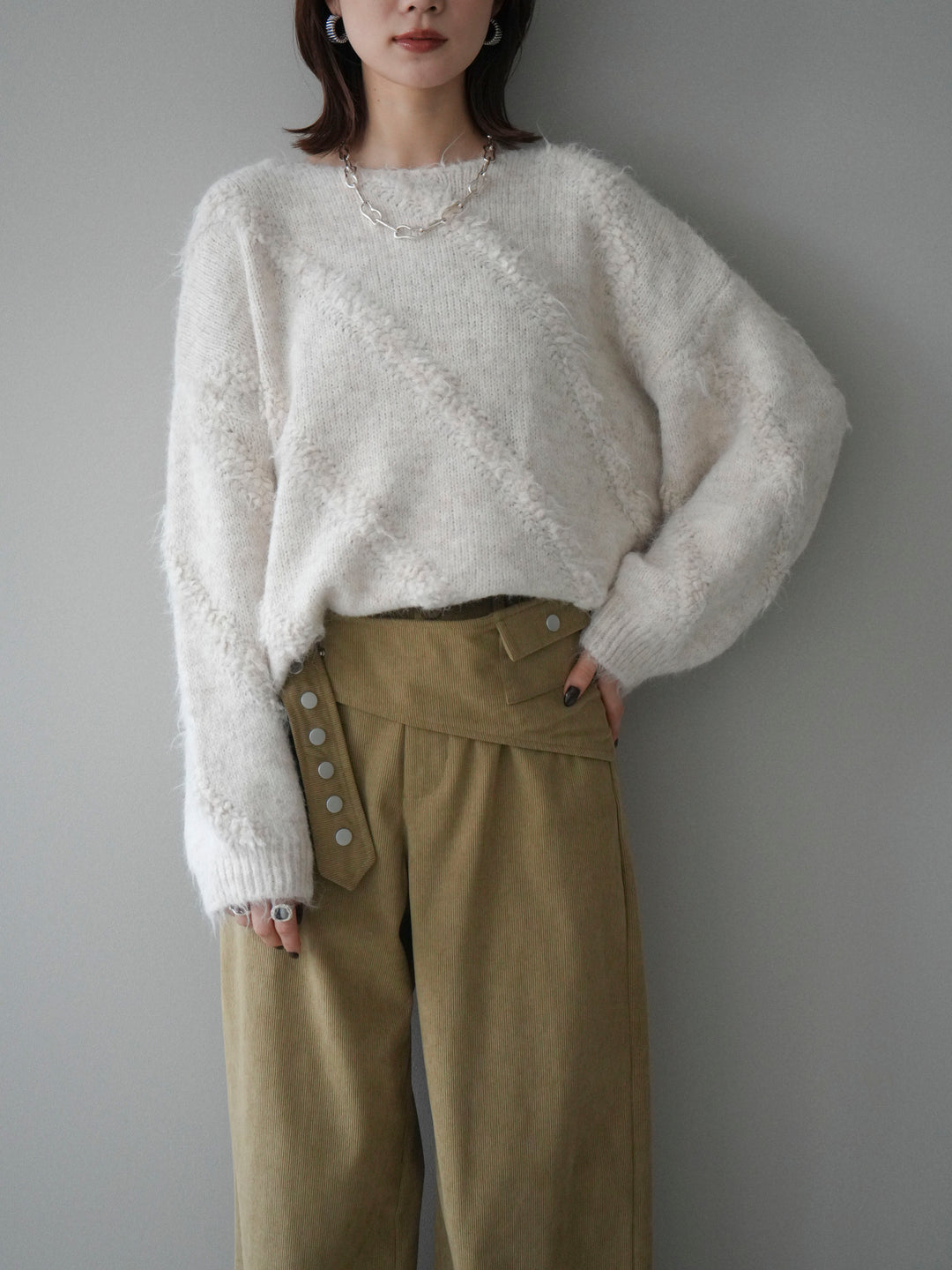 [予約]ブークレラインデザインニットプルオーバー/ivory