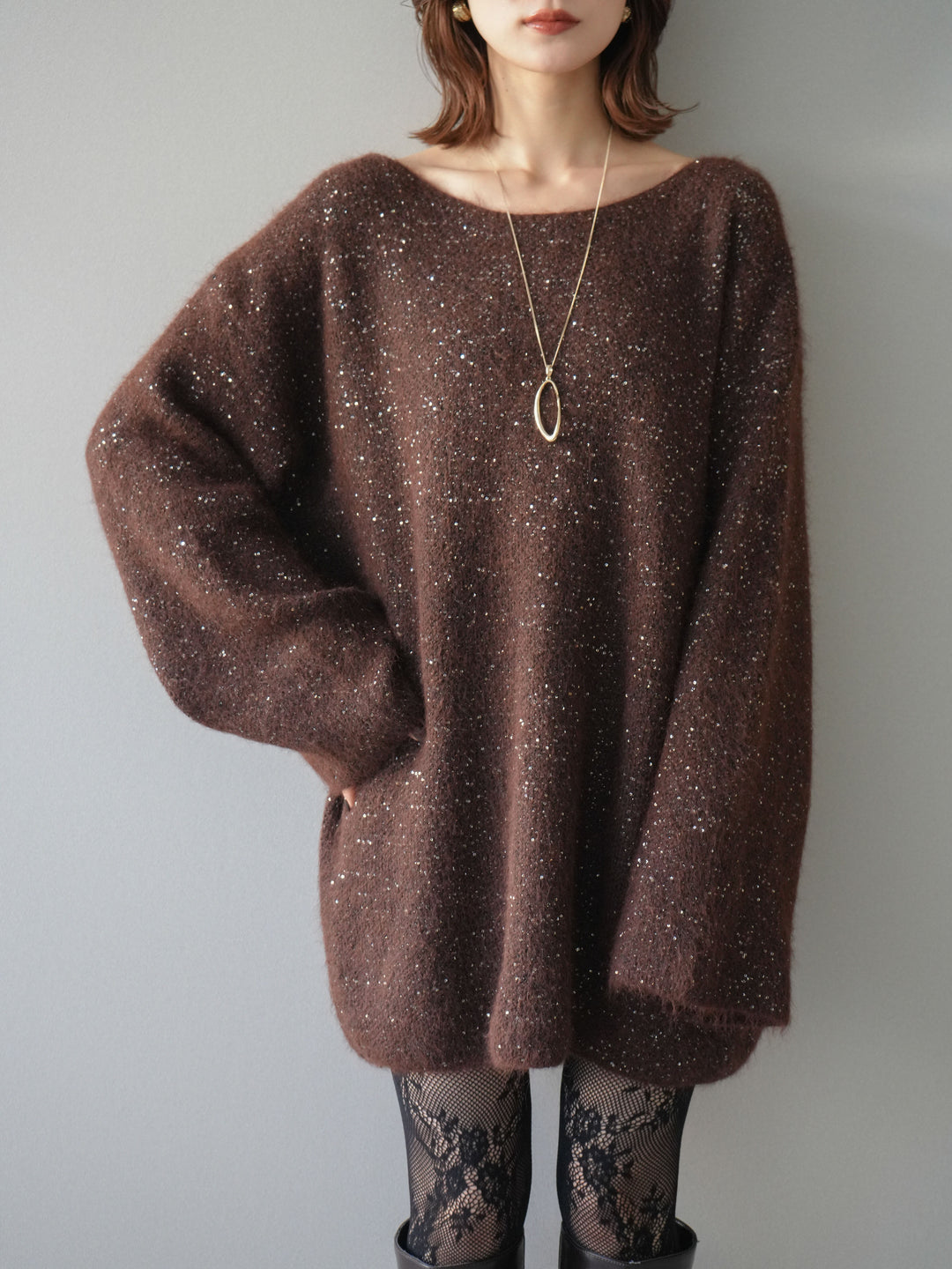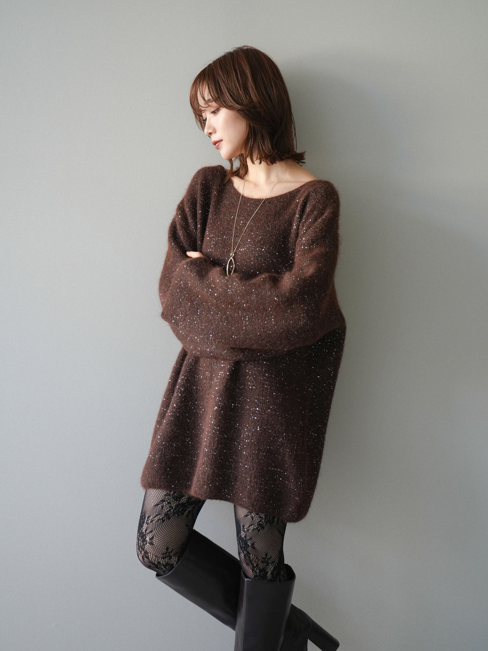 [予約]スパンコールミニシャギーニットチュニック/brown