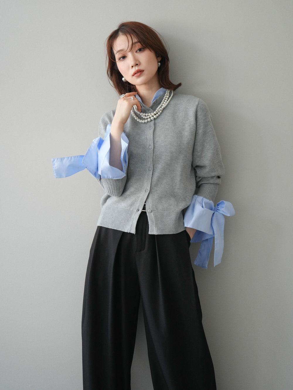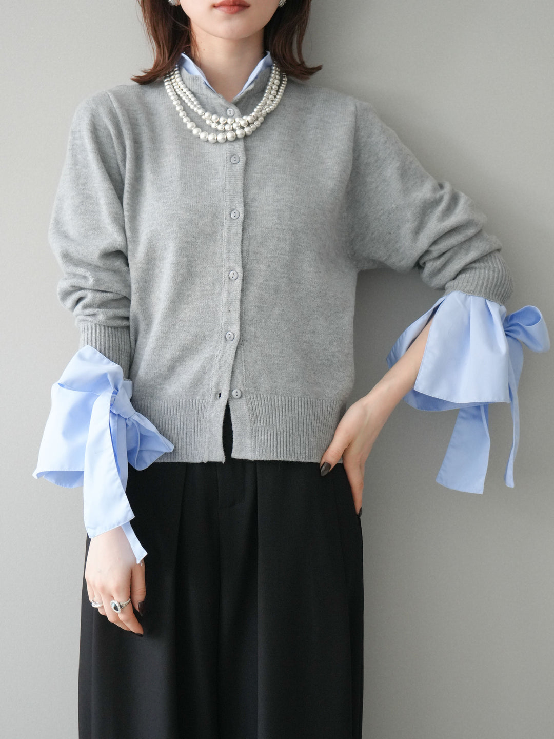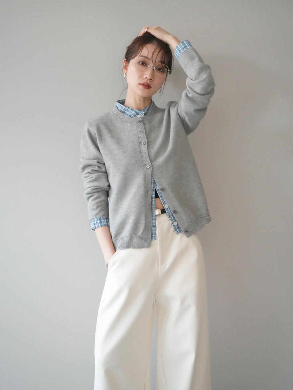 [予約]チェックシャツレイヤードデザインニットカーディガン/gray