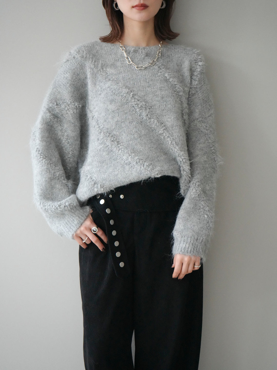 [予約]ブークレラインデザインニットプルオーバー/gray