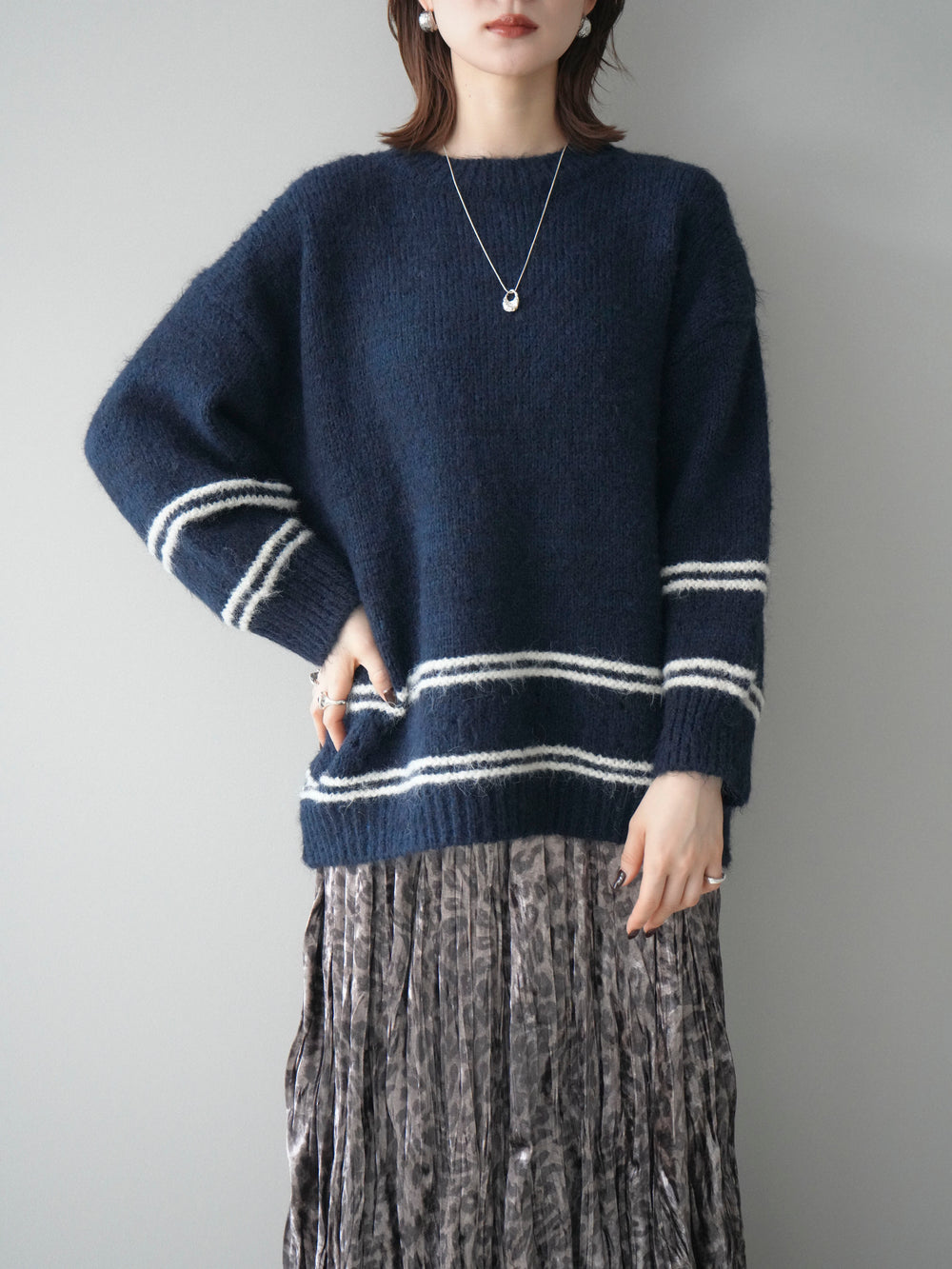 [予約]クルーネックラインボーダーニットプルオーバー/navy