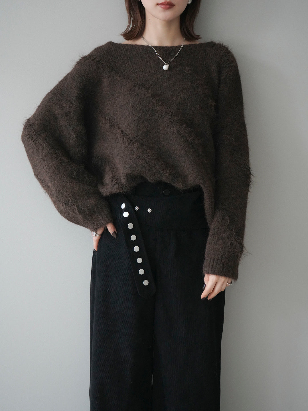 [予約]透かし編みモヘアタッチポコポコニットプルオーバー/brown