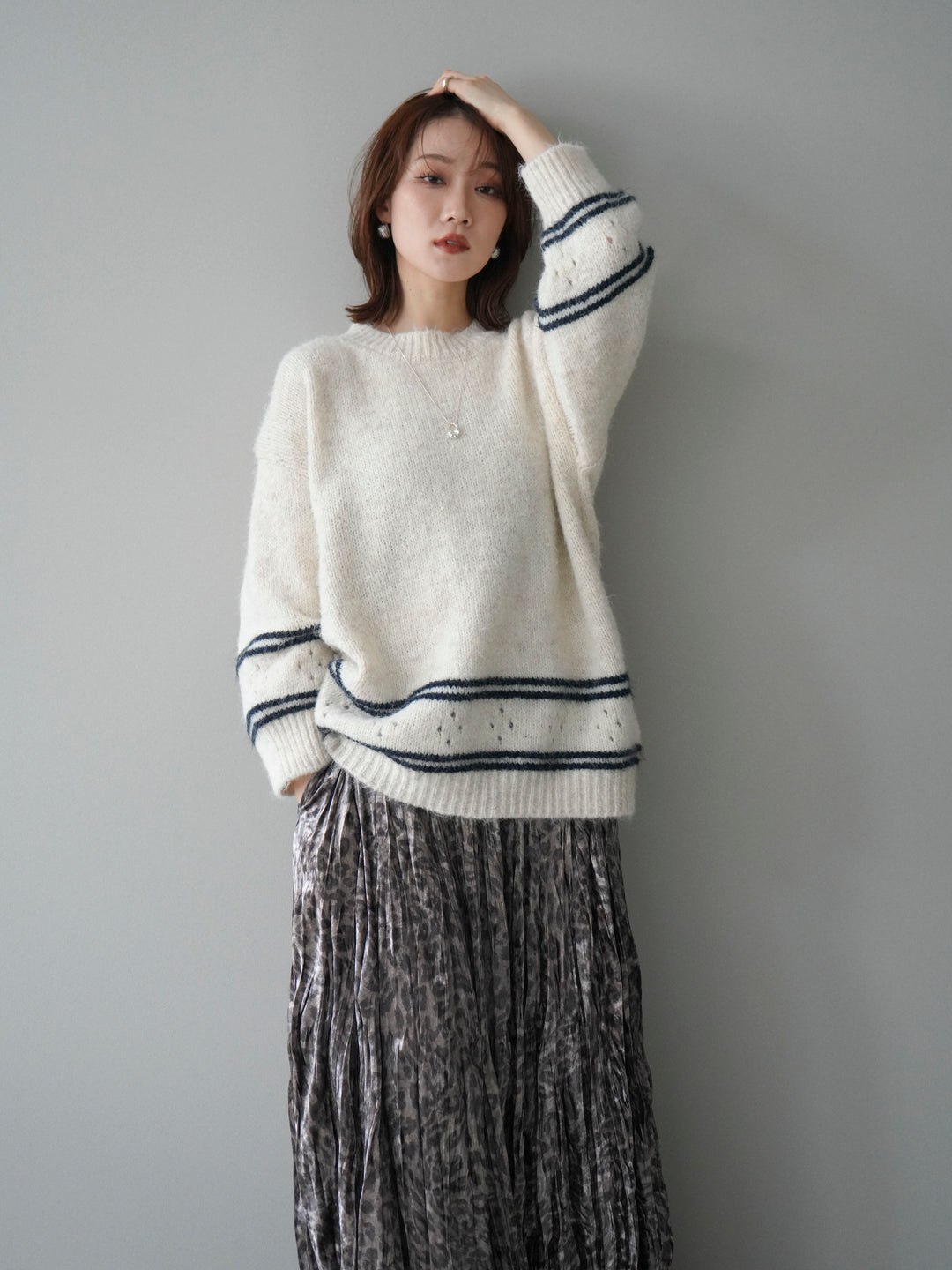 [予約]クルーネックラインボーダーニットプルオーバー/white