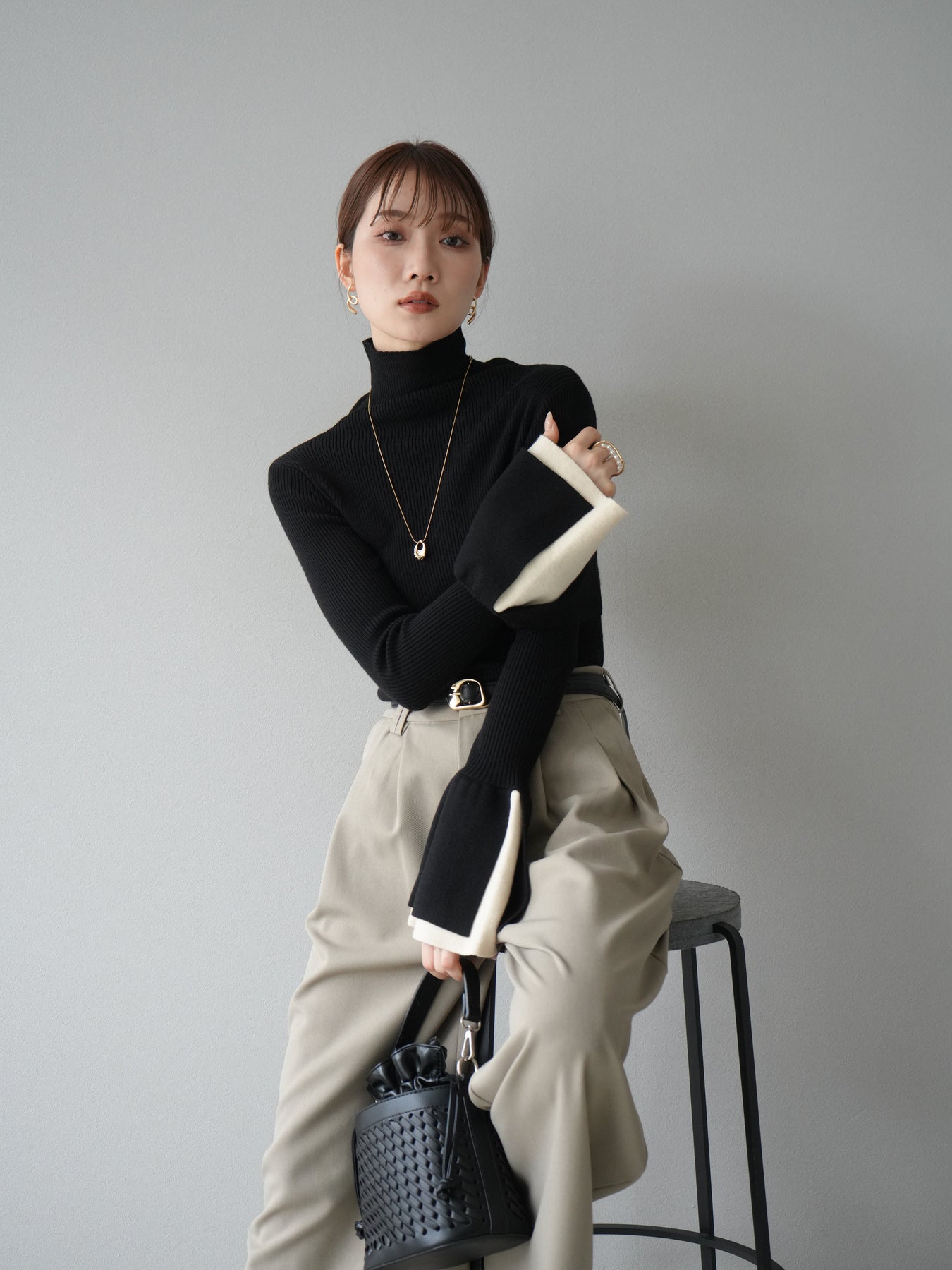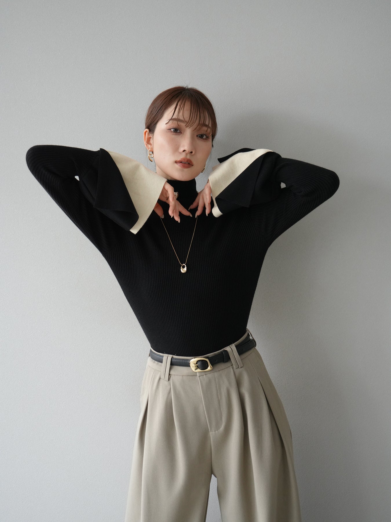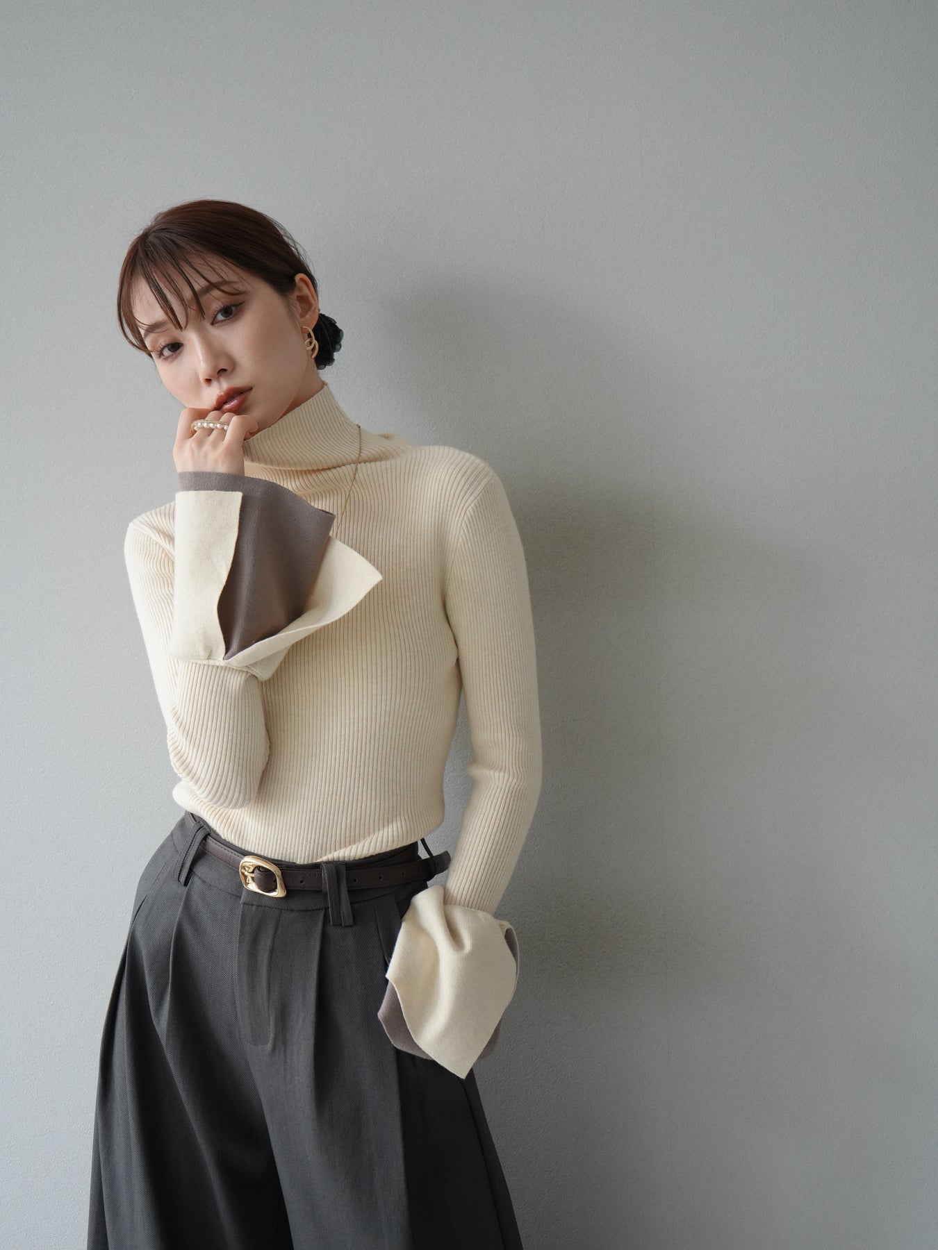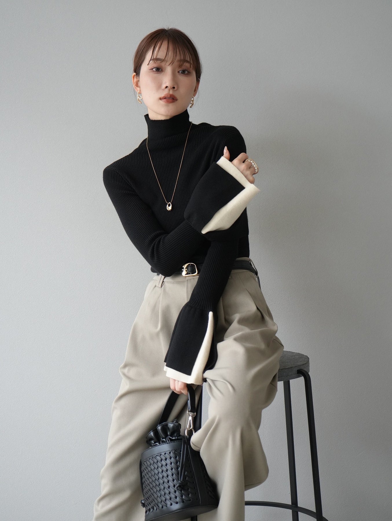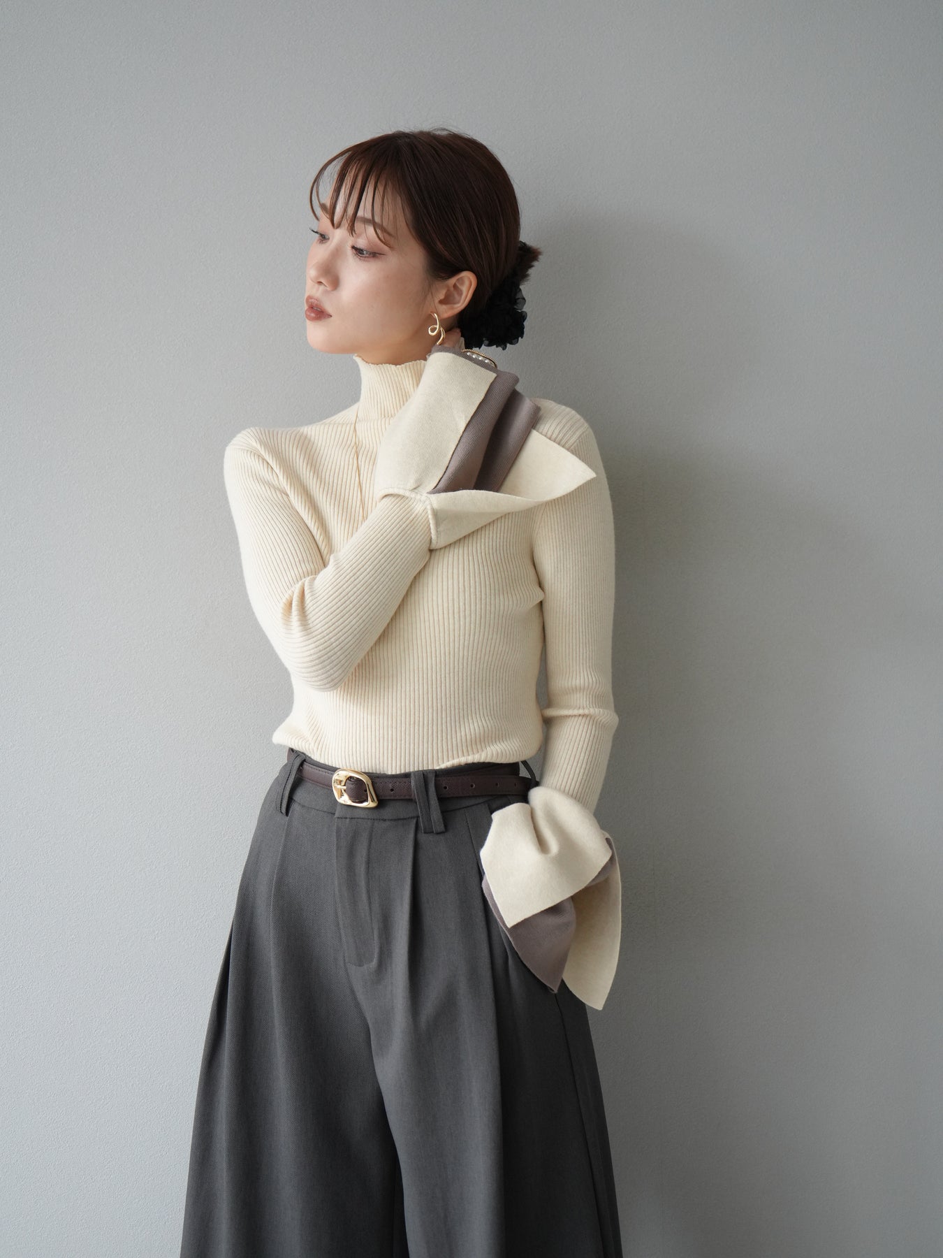 [套裝] 層疊喇叭袖高領針織上衣 + 配件套裝(2 組)