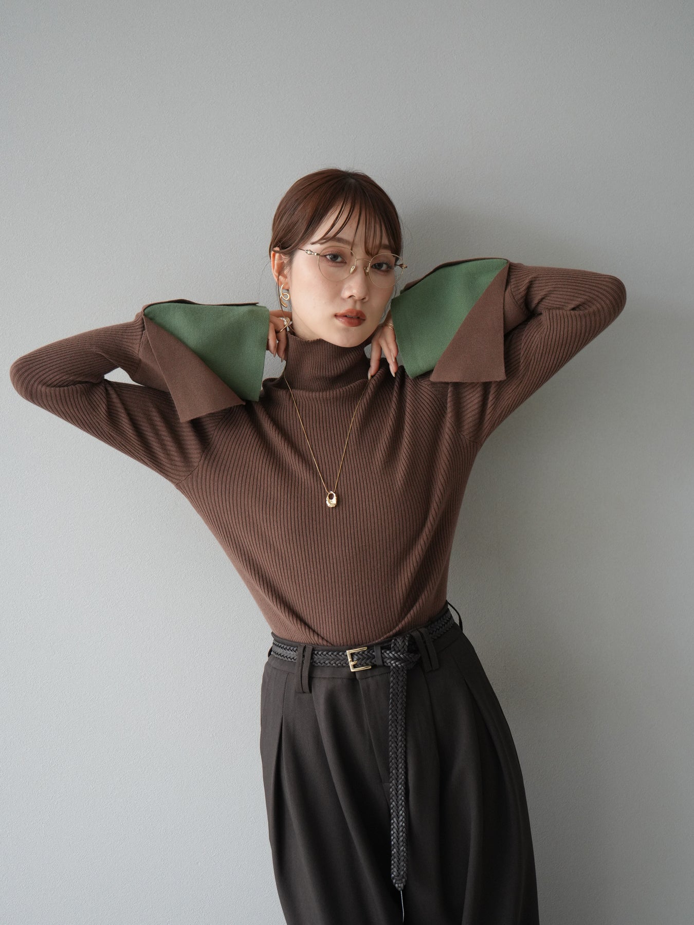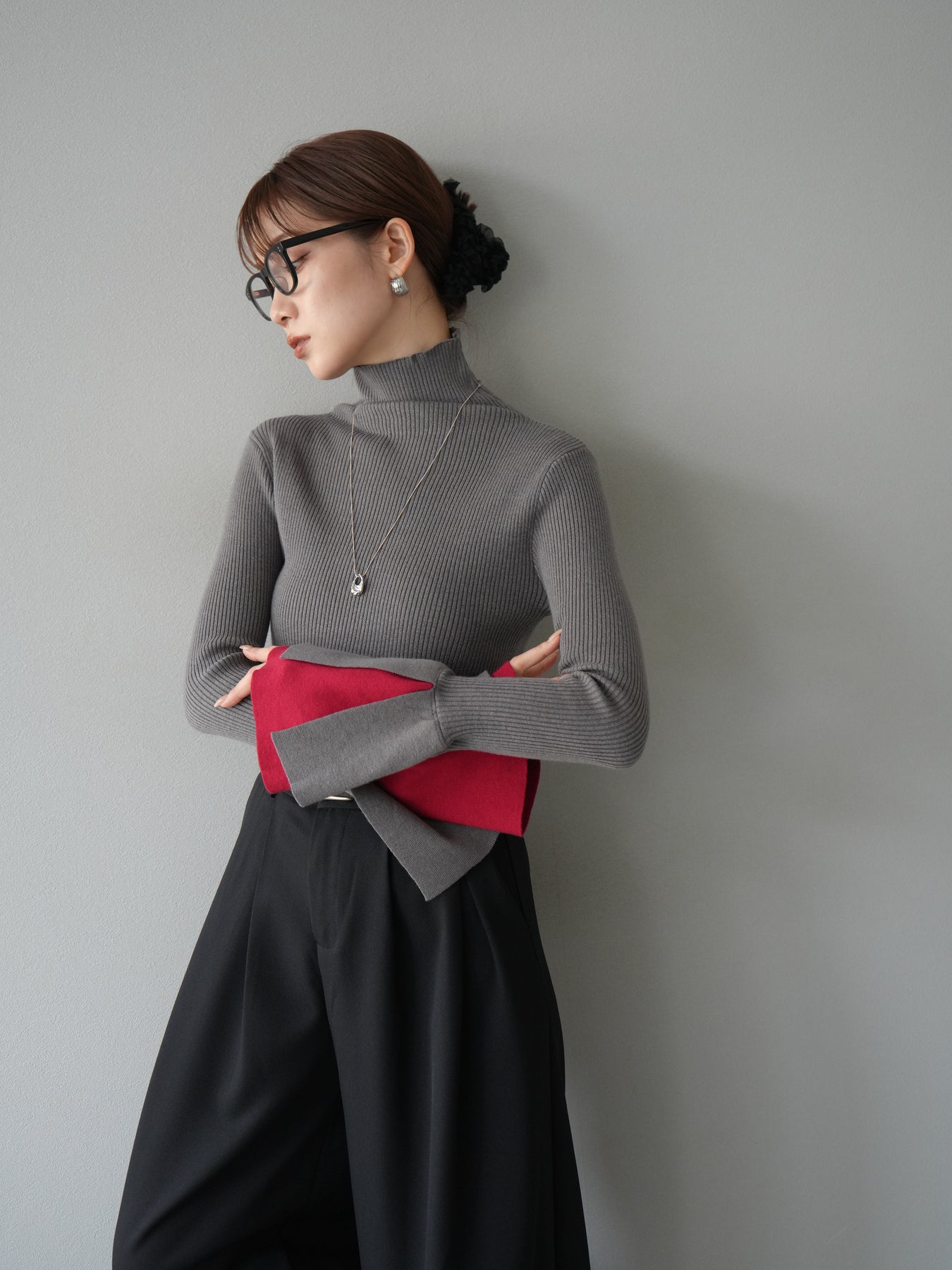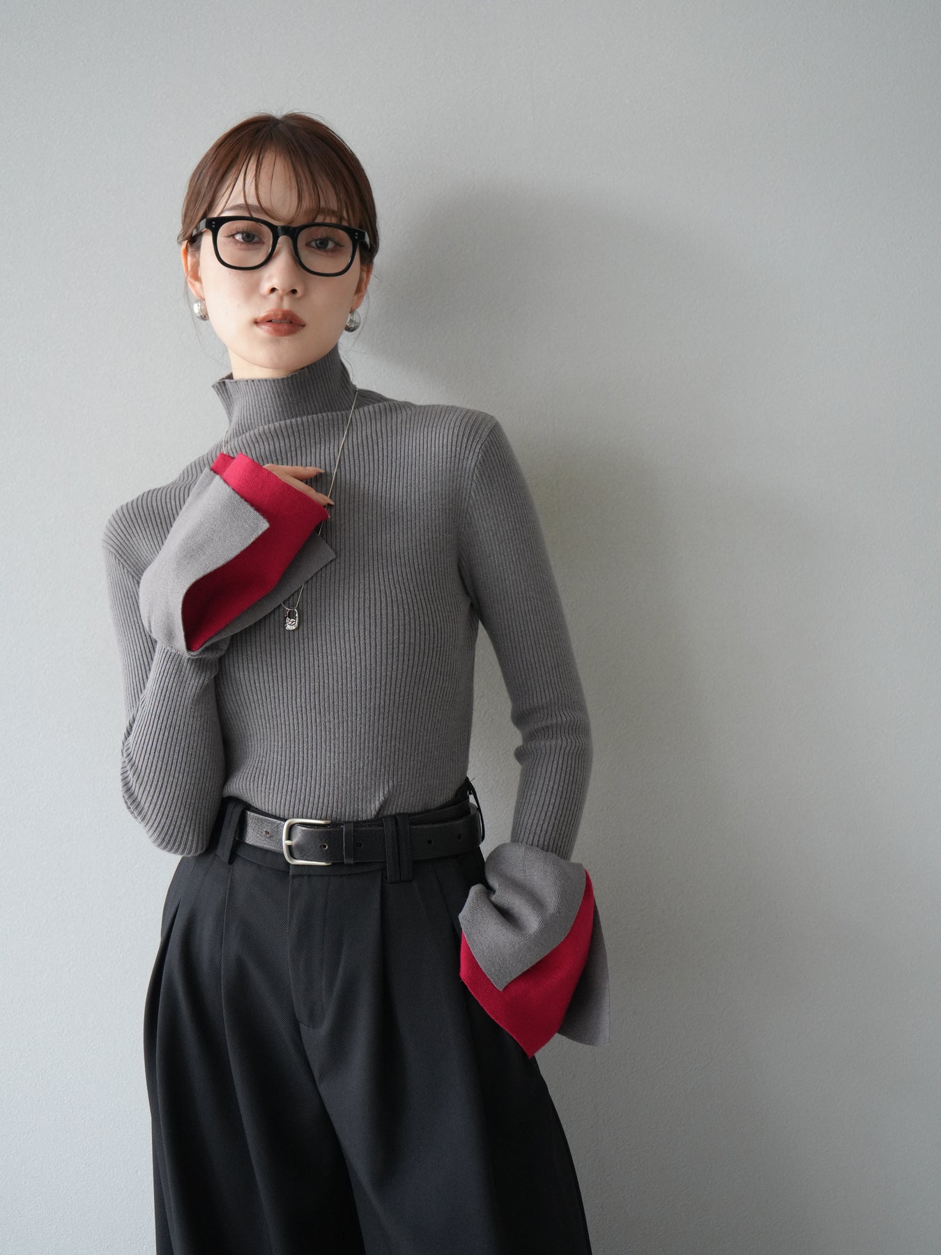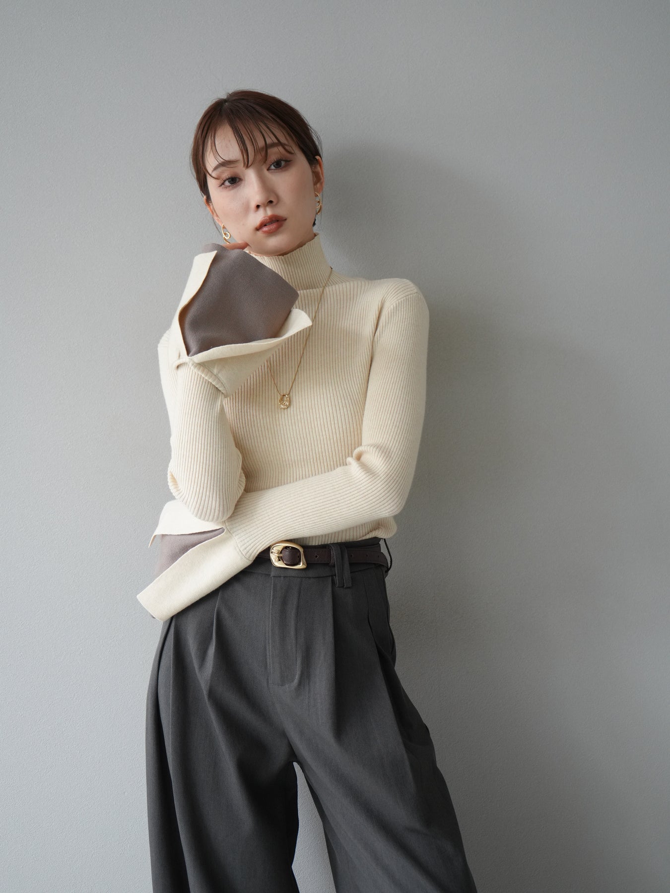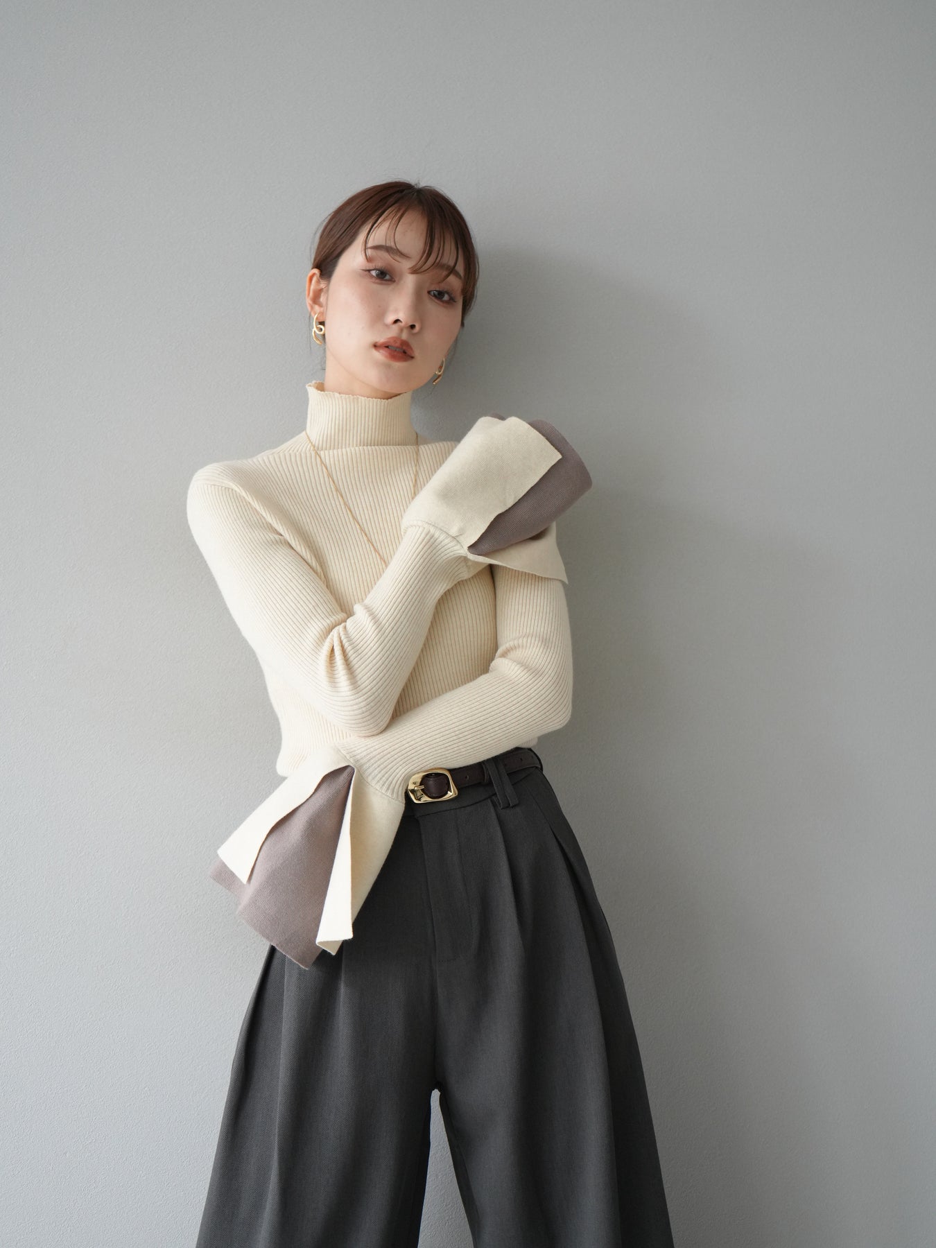 [套裝] 層疊喇叭袖高領針織上衣 + 配件套裝(2 組)
