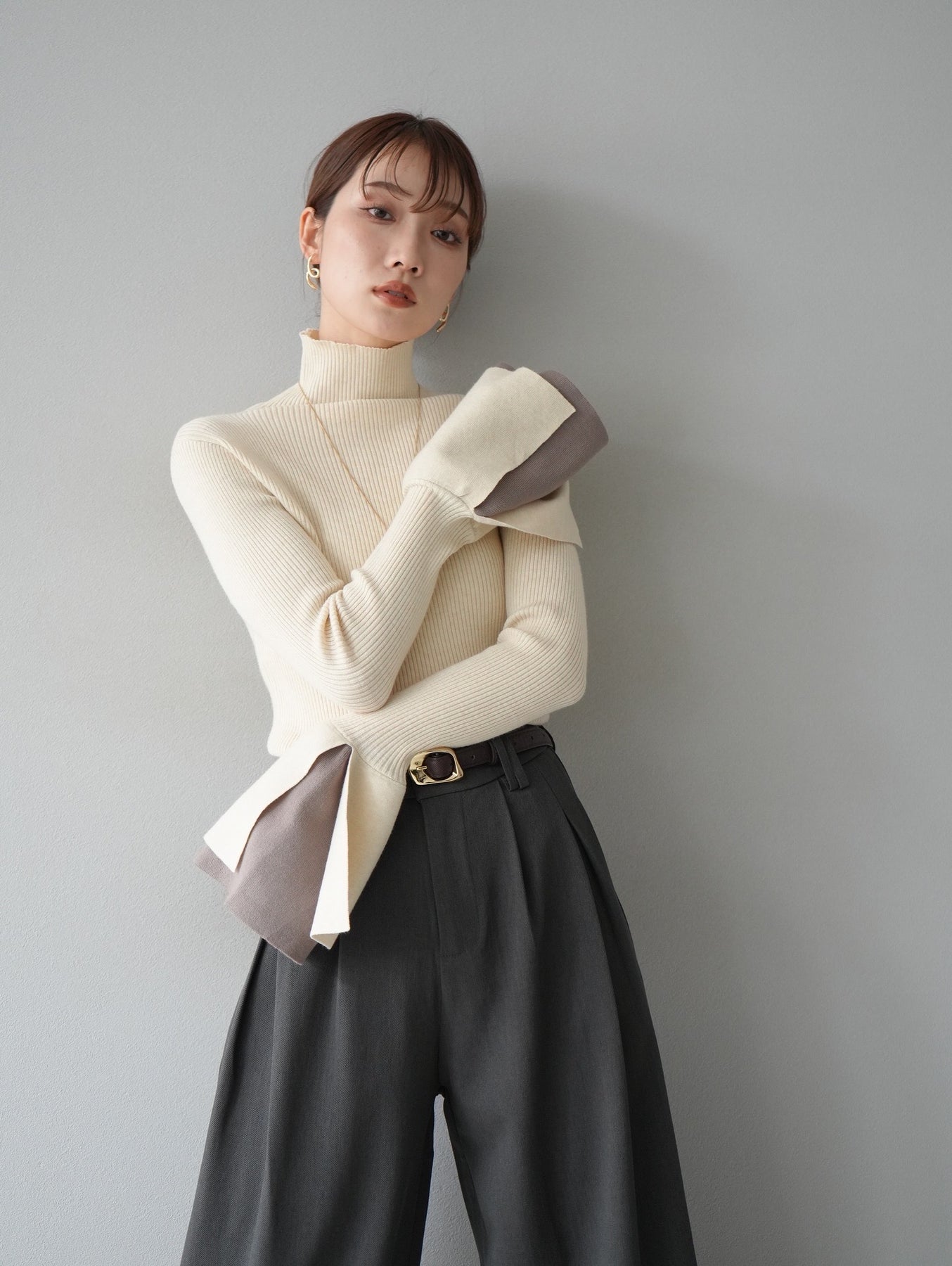 【預購】疊層喇叭袖高領針織上衣