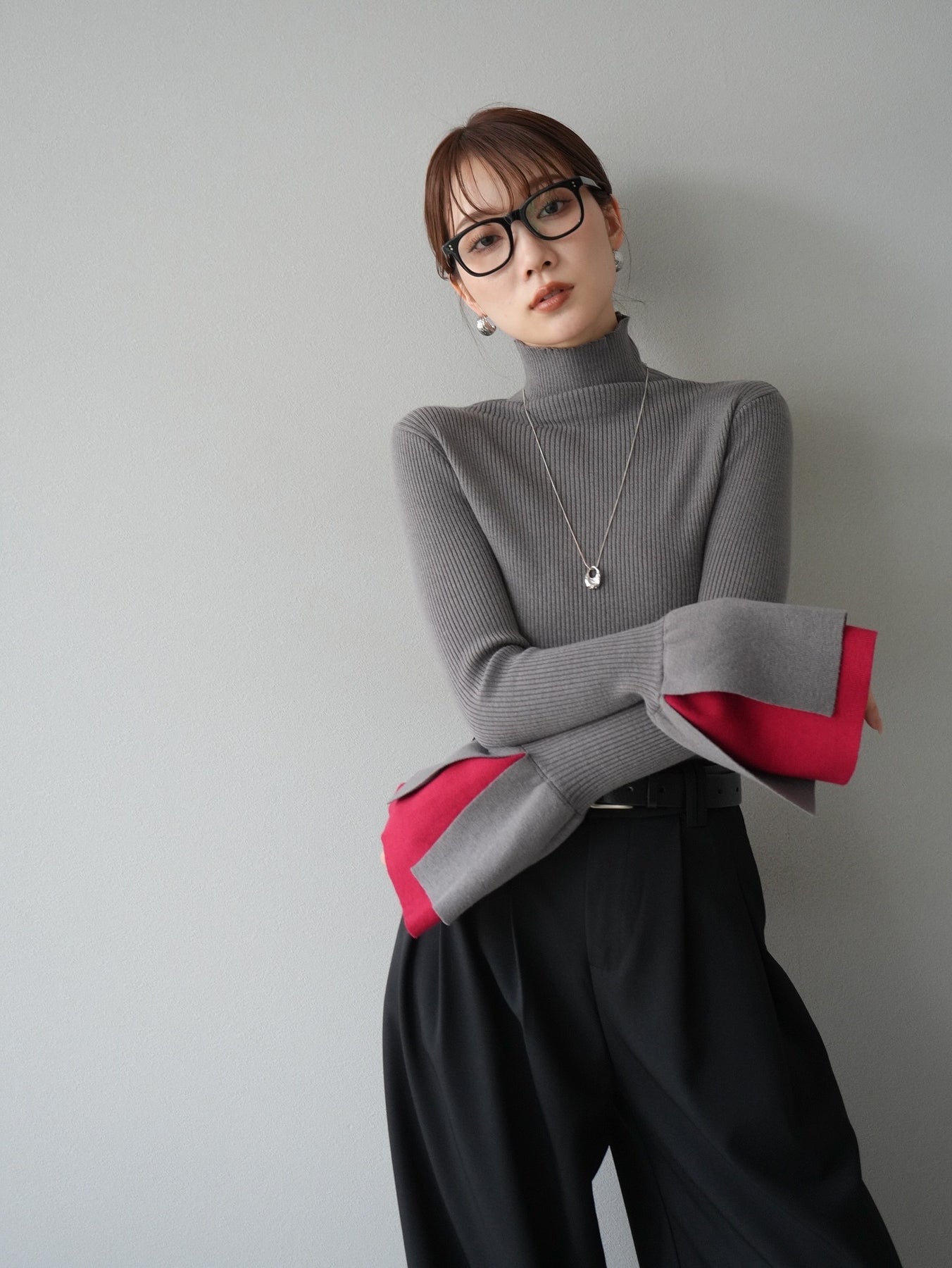 這款高領針織上衣採用醒目的喇叭袖設計,袖口處採用層疊設計。俏皮的設計為簡約的羅紋針織增添了一絲優雅,使其成為引人注目的單品。其輪廓貼合身體,可與夾克或外套完美搭配。無論是日常穿著還是外出,這款單品都能為任何造型增添一抹優雅氣質。 *除下裝及吊帶背心(內搭)外,所有單品均不含內搭。