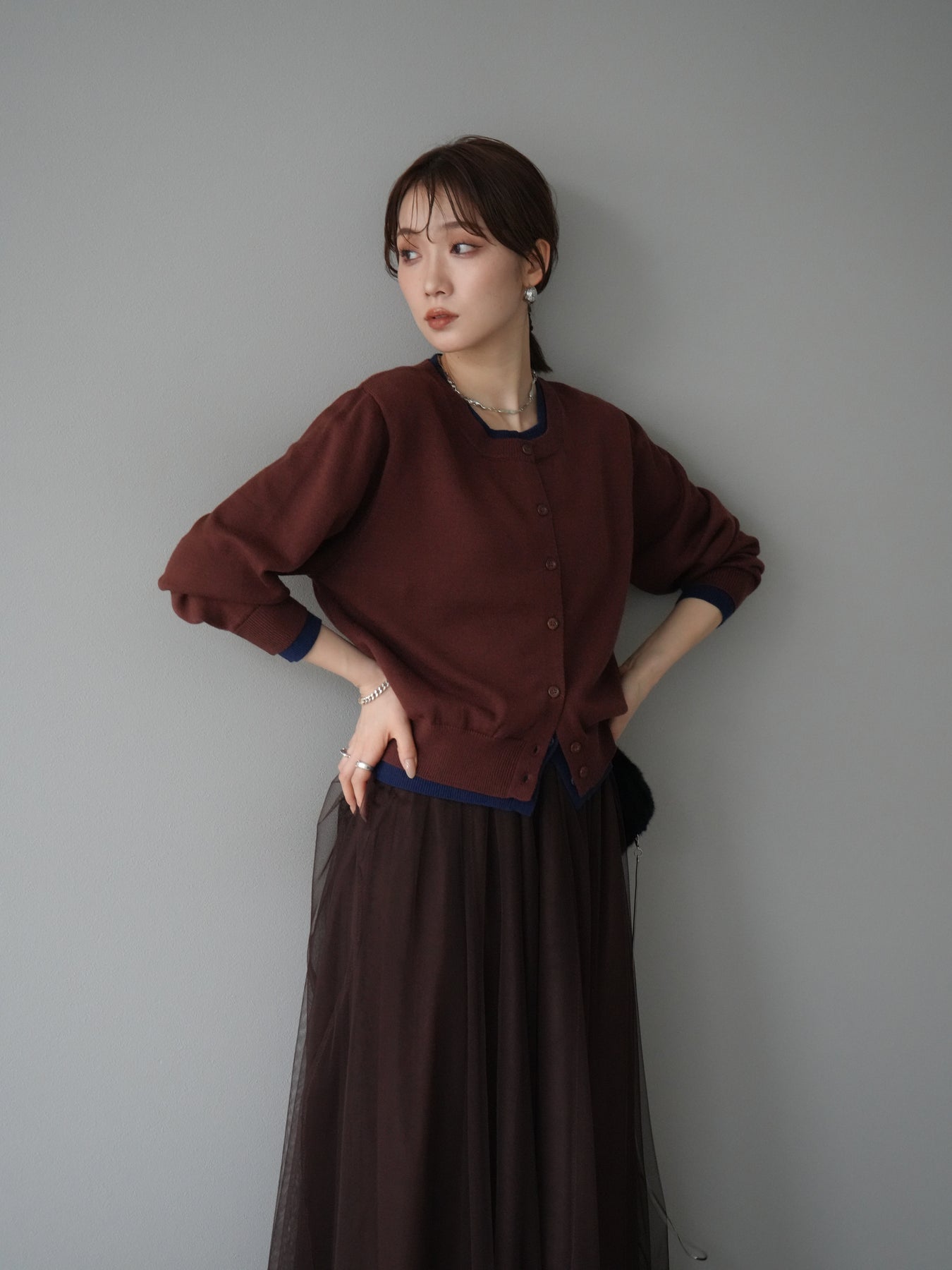 這款開襟衫採用撞色設計,打造層疊造型。簡潔的輪廓與撞擊色搭配,為整體造型增添一抹俏皮感。適中的厚度使其易於穿著,既可以像上衣一樣扣緊紐扣,也可以作為輕盈的外衣敞開穿著。從日常穿著到休閒的辦公室裝扮,它是一款百搭單品。 *除下裝和吊帶背心(內衣)外,所有商品均不包含內衣。