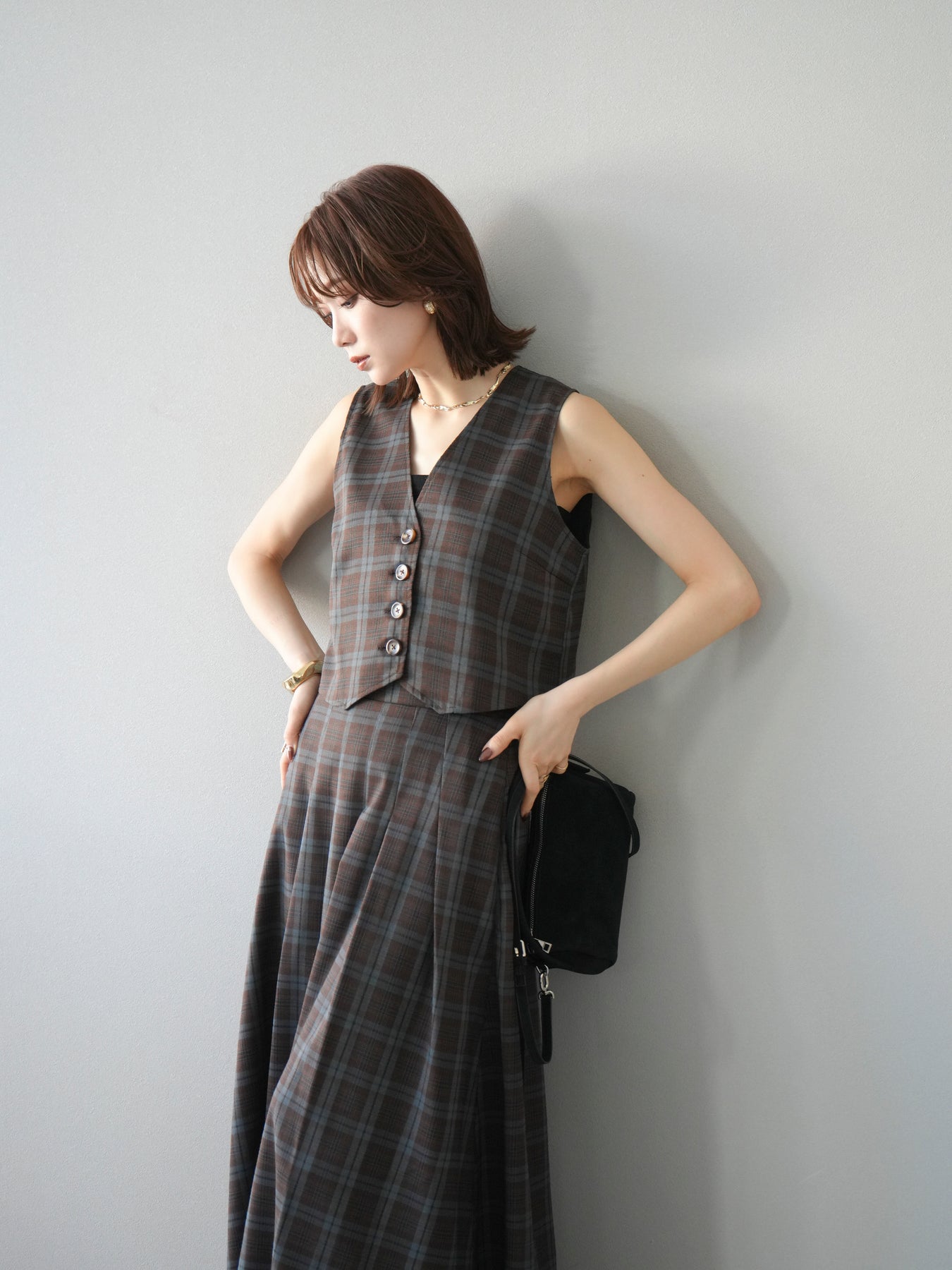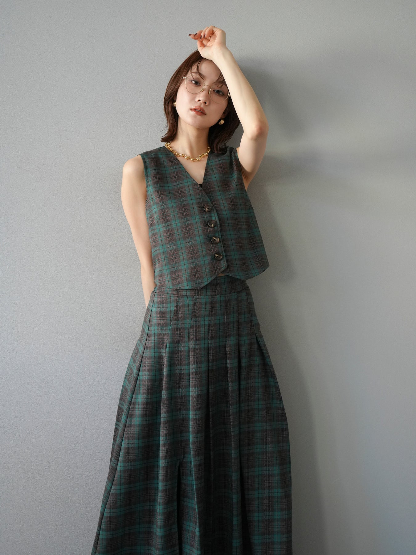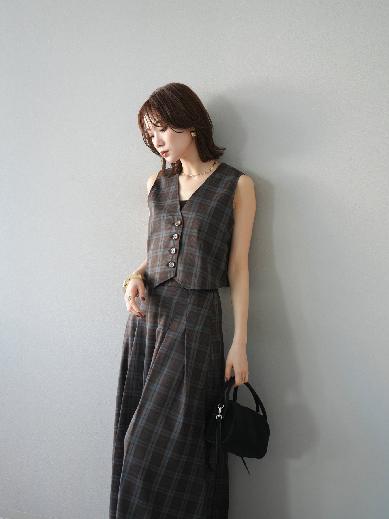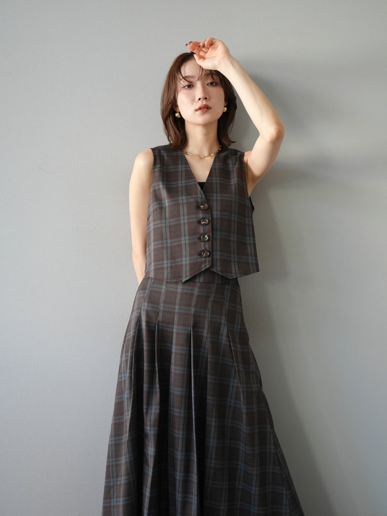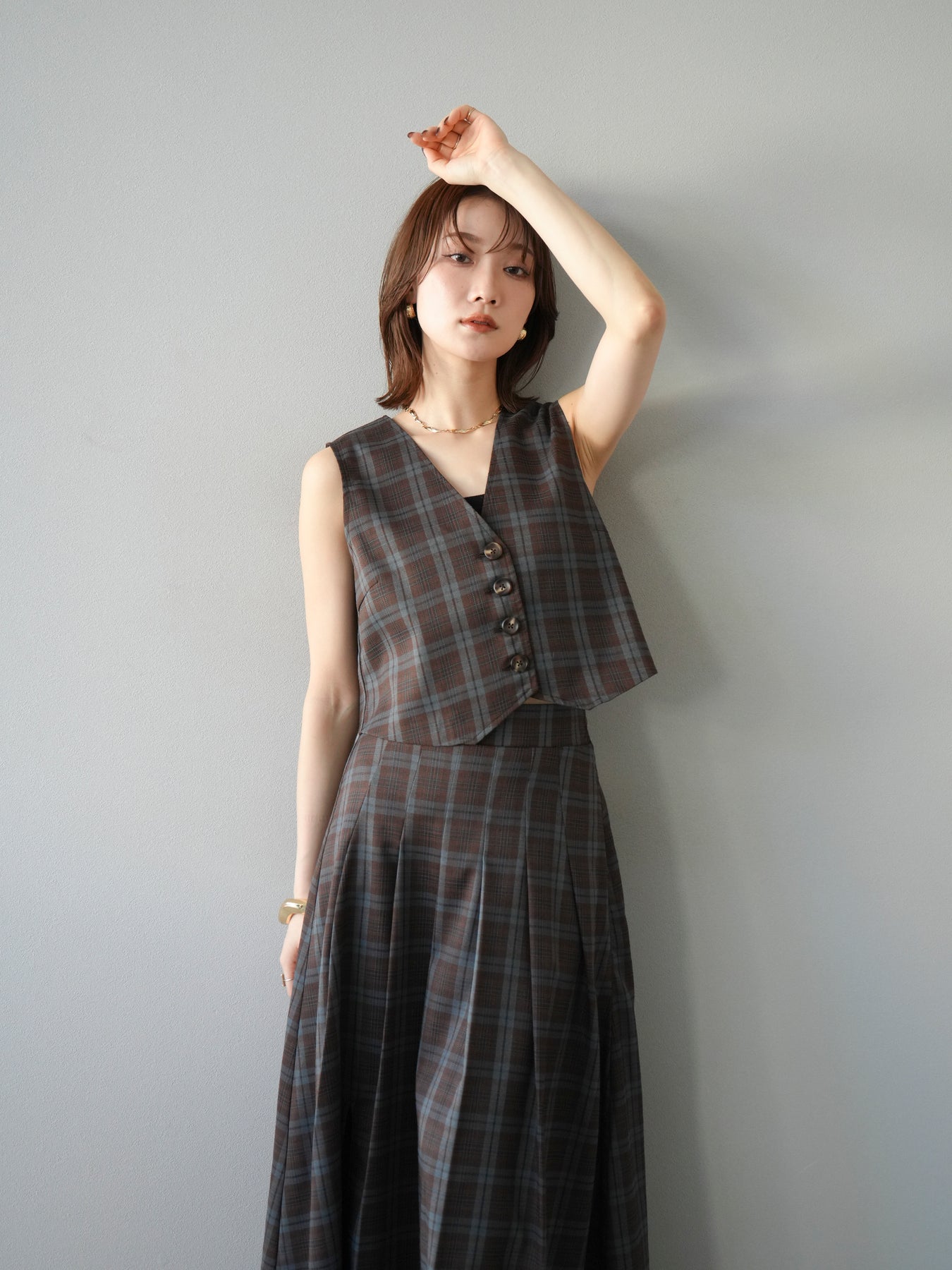 [SET] 格紋背心+格紋褶皺喇叭裙(2套)