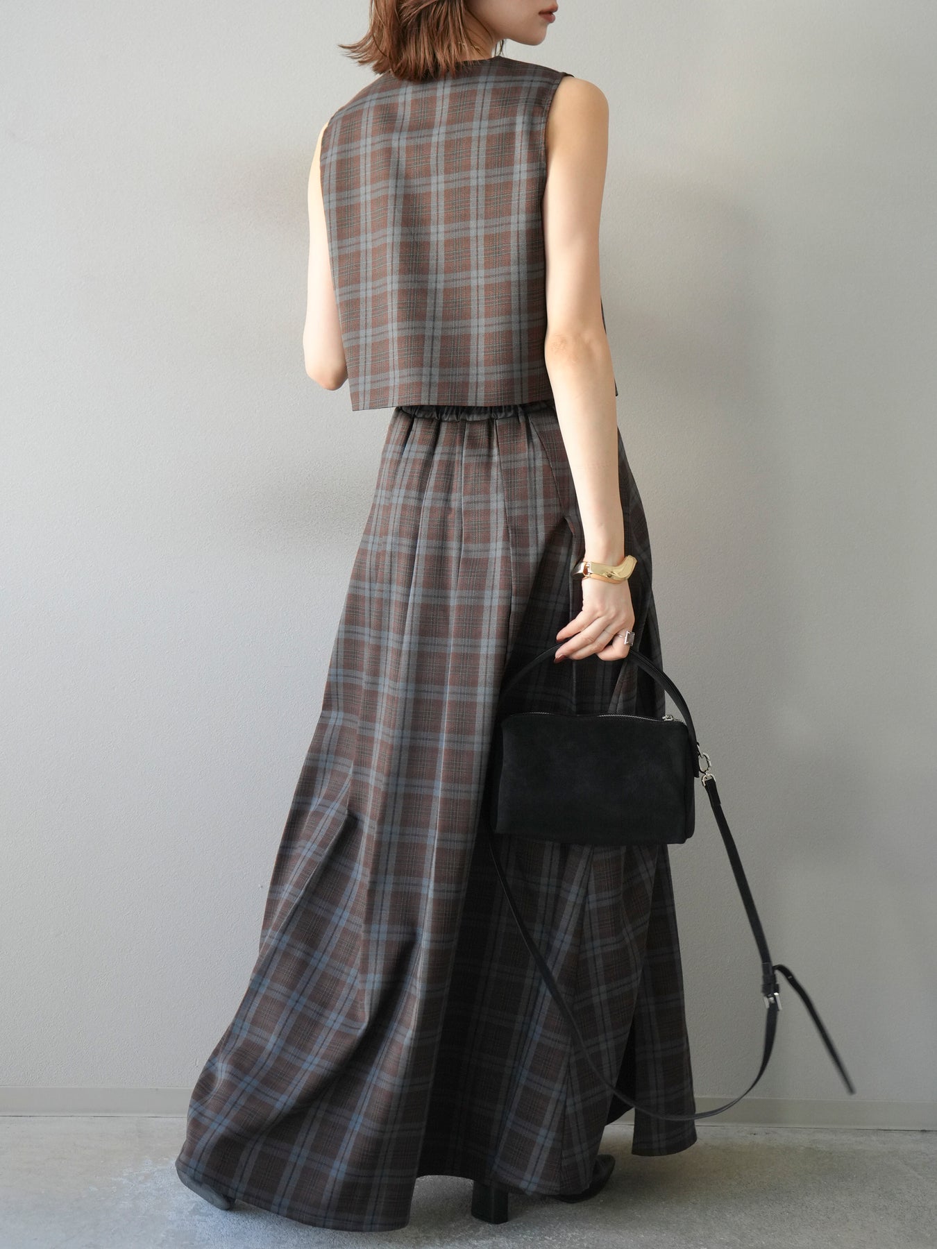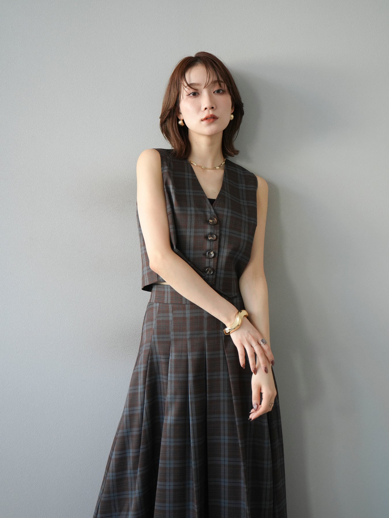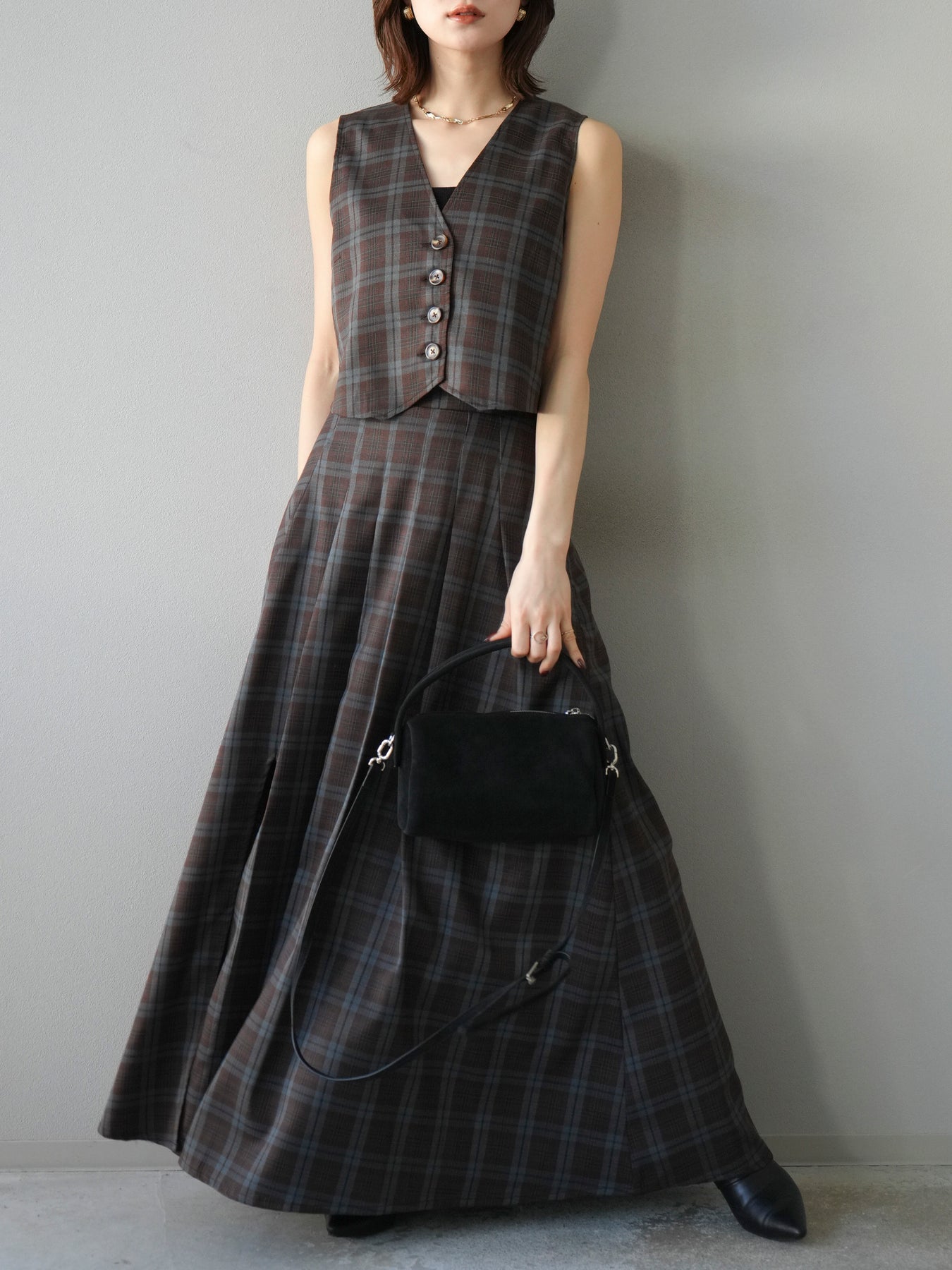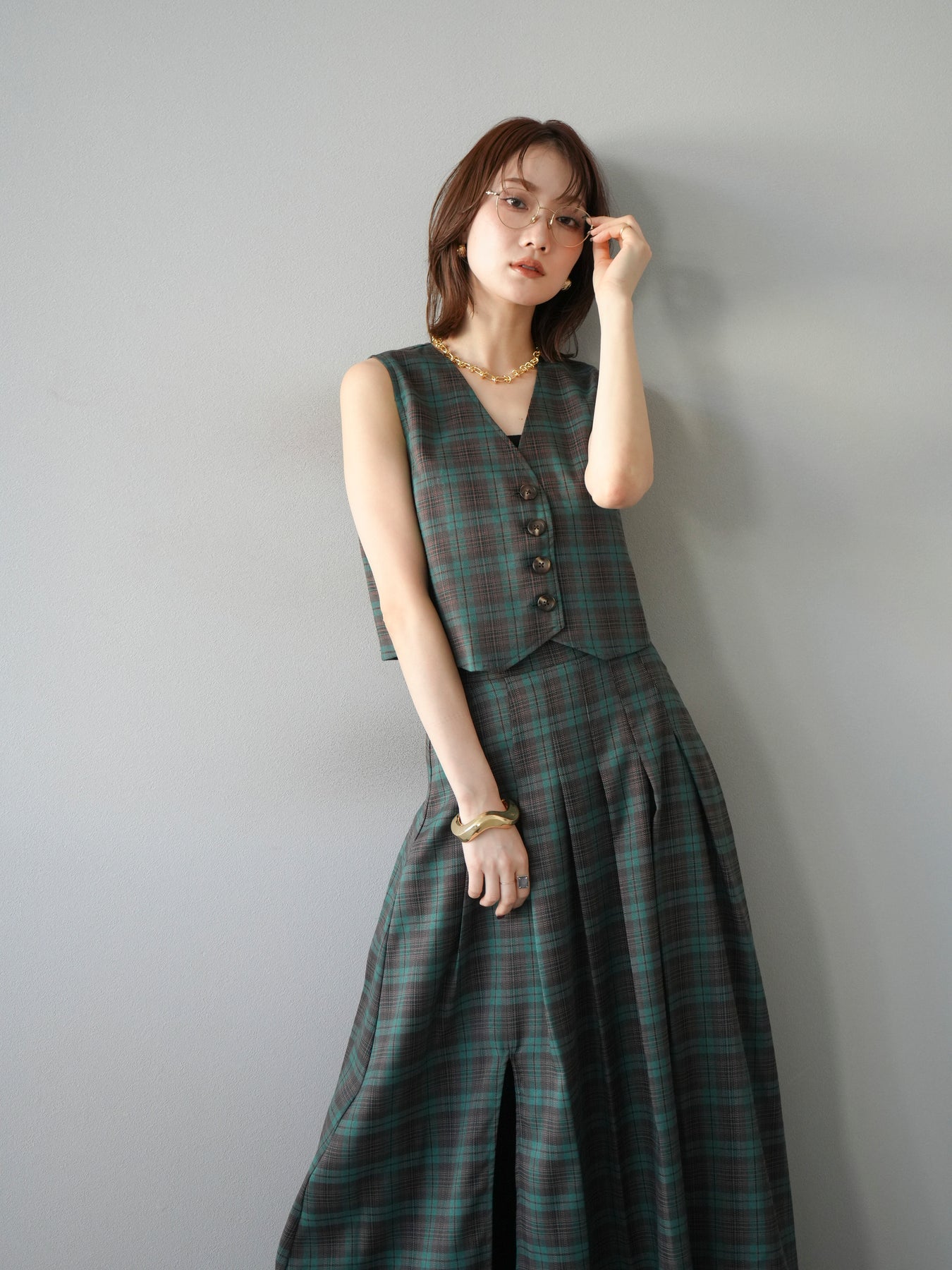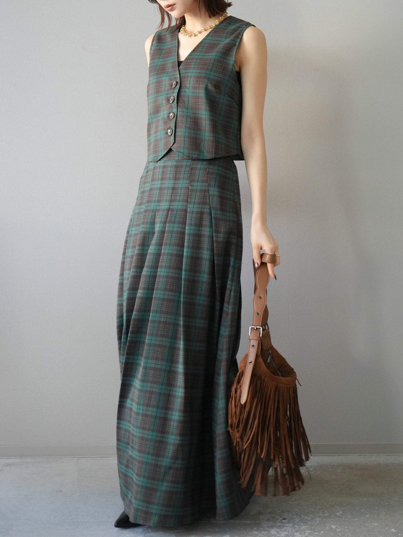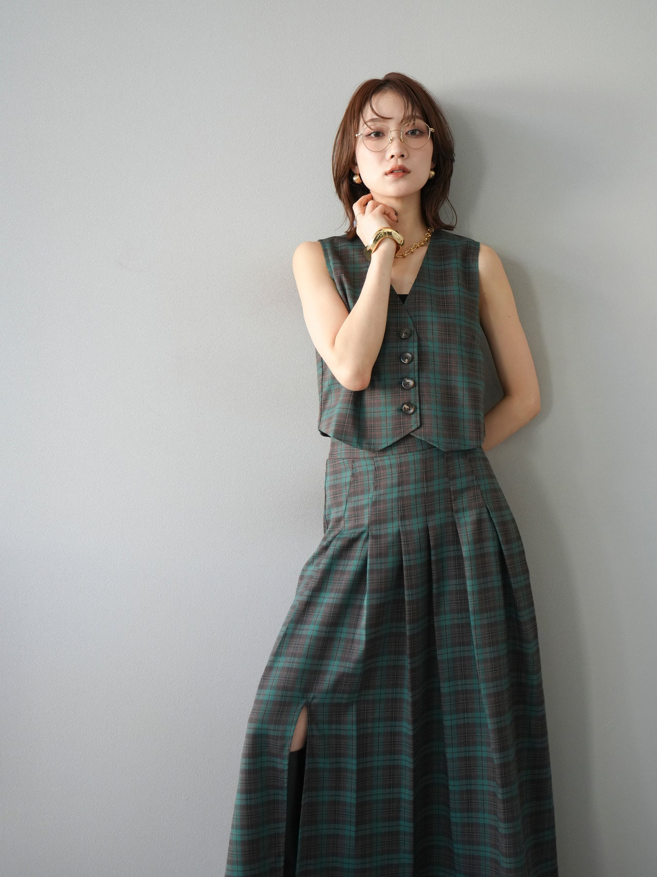 [SET] 格紋背心+格紋褶皺喇叭裙(2套)