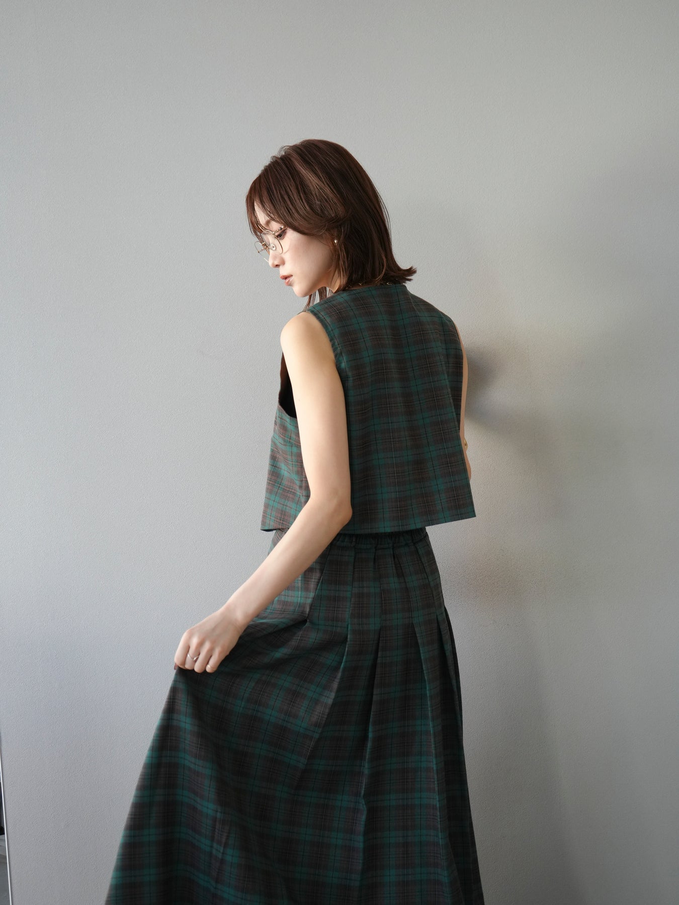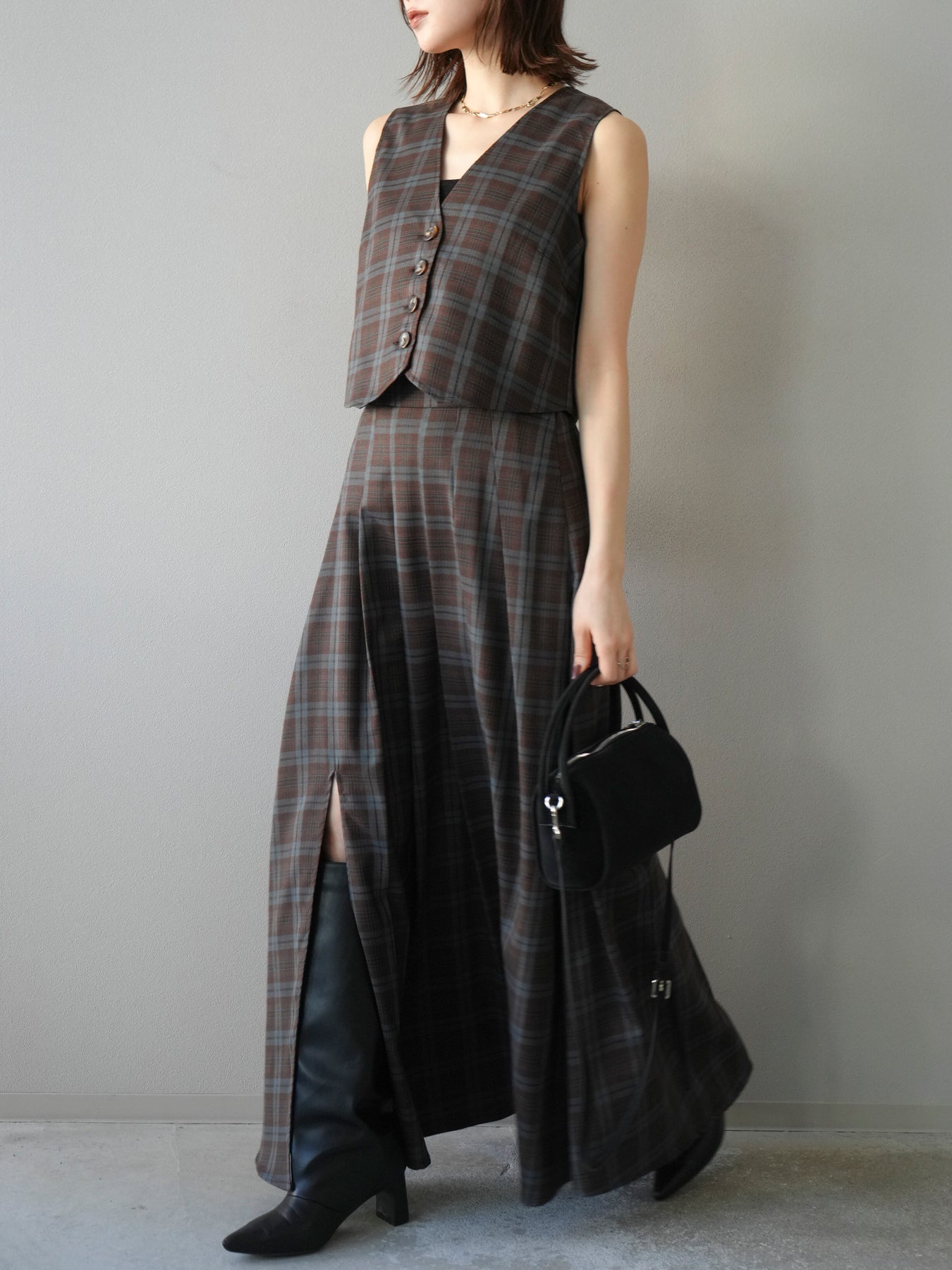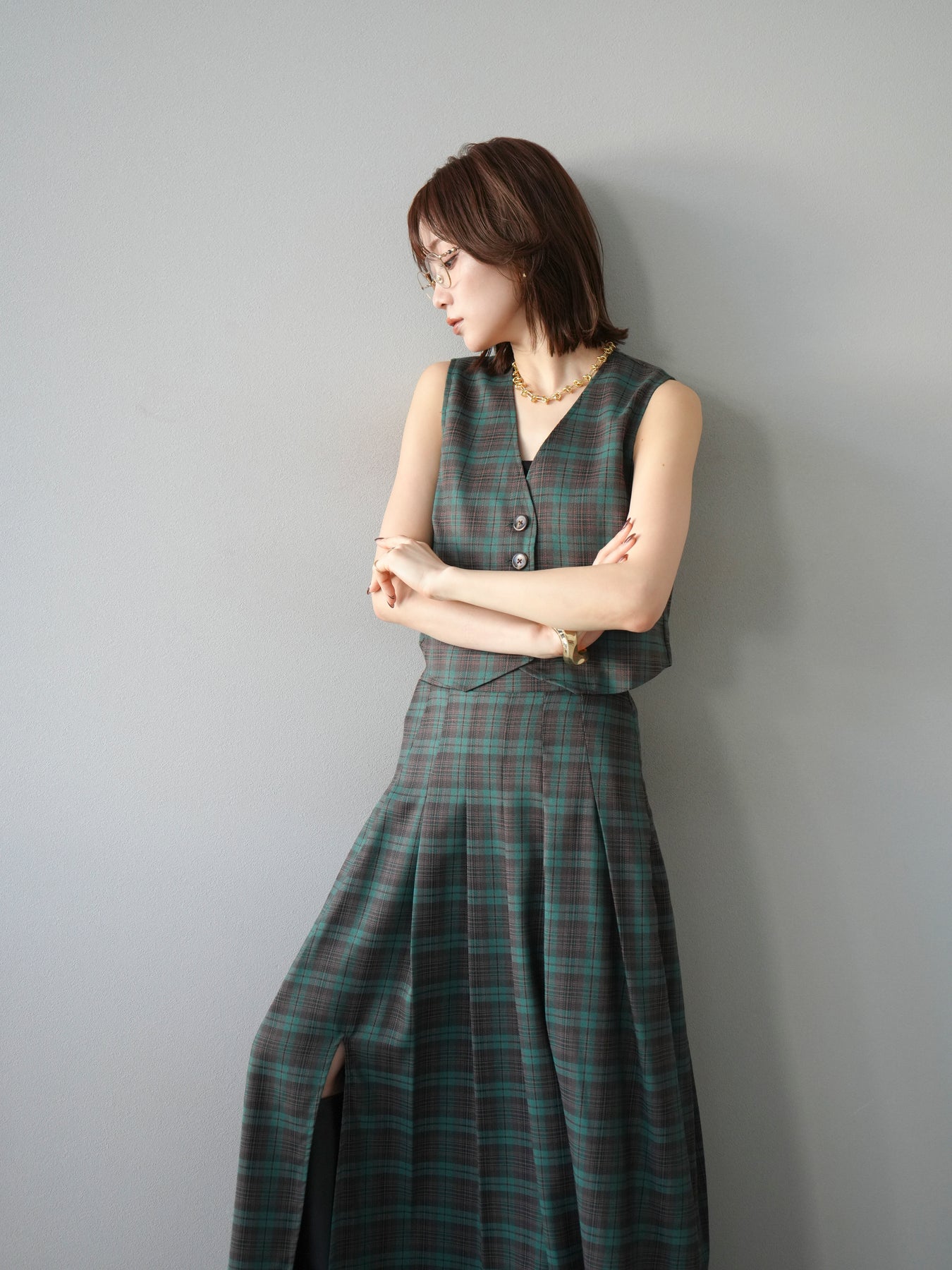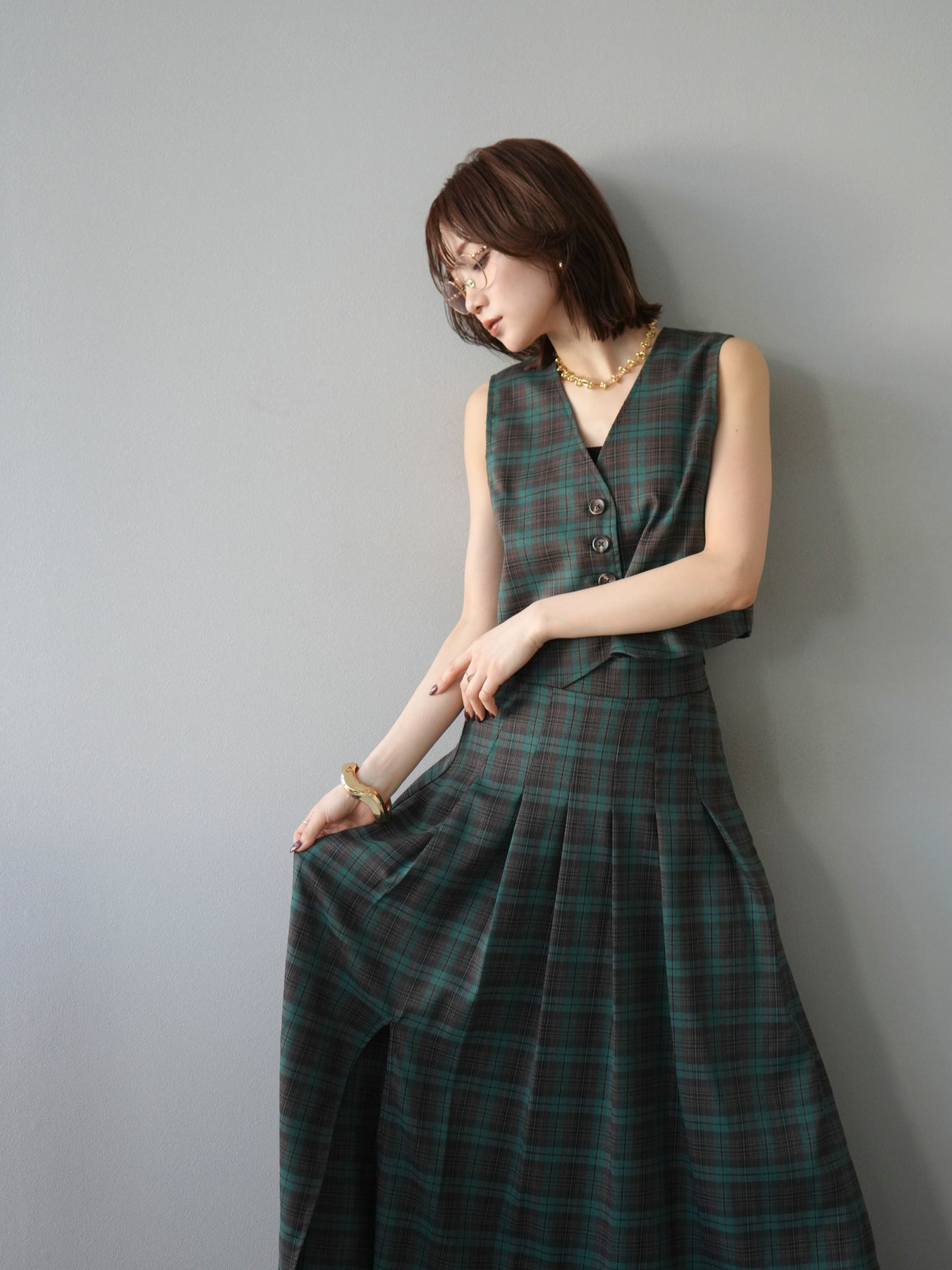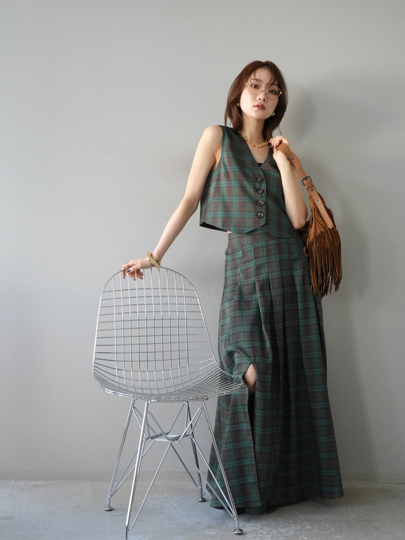 [SET] 格紋背心+格紋褶皺喇叭裙(2套)