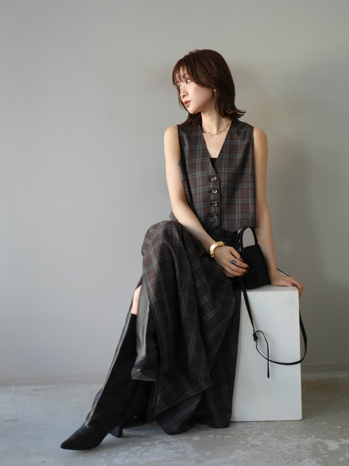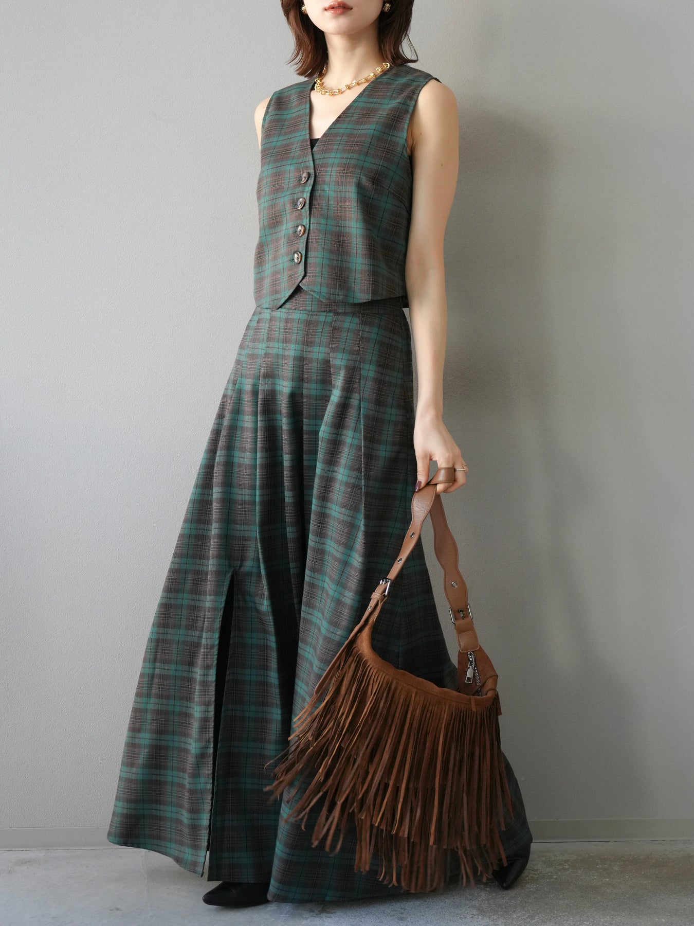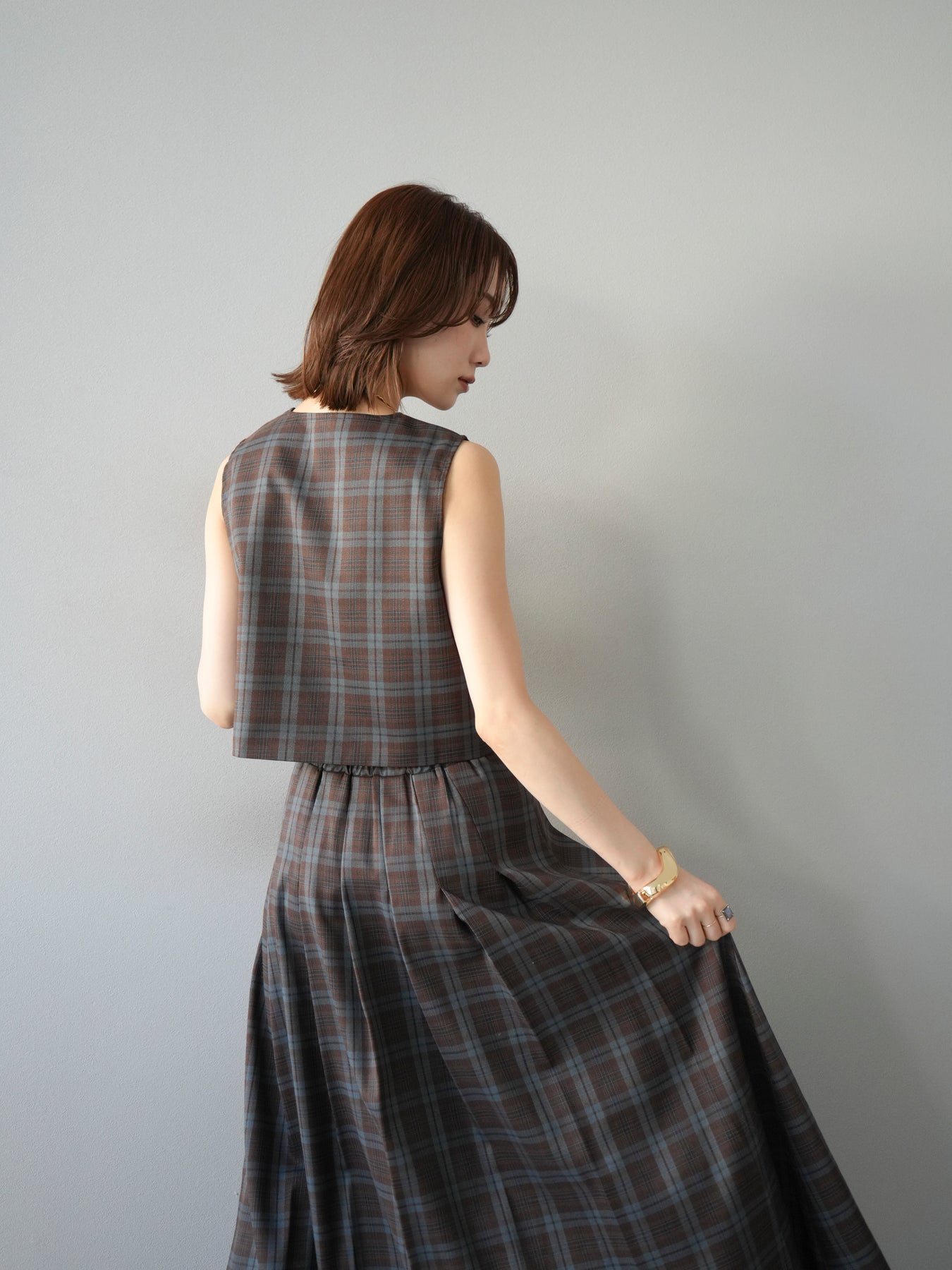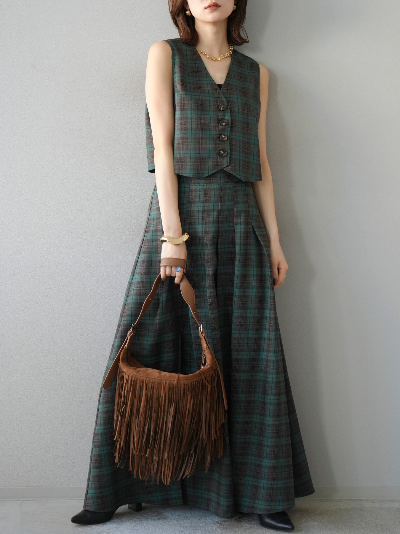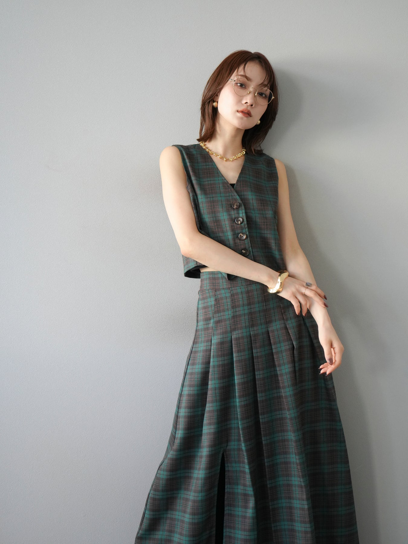 [SET] 格紋背心+格紋褶皺喇叭裙(2套)