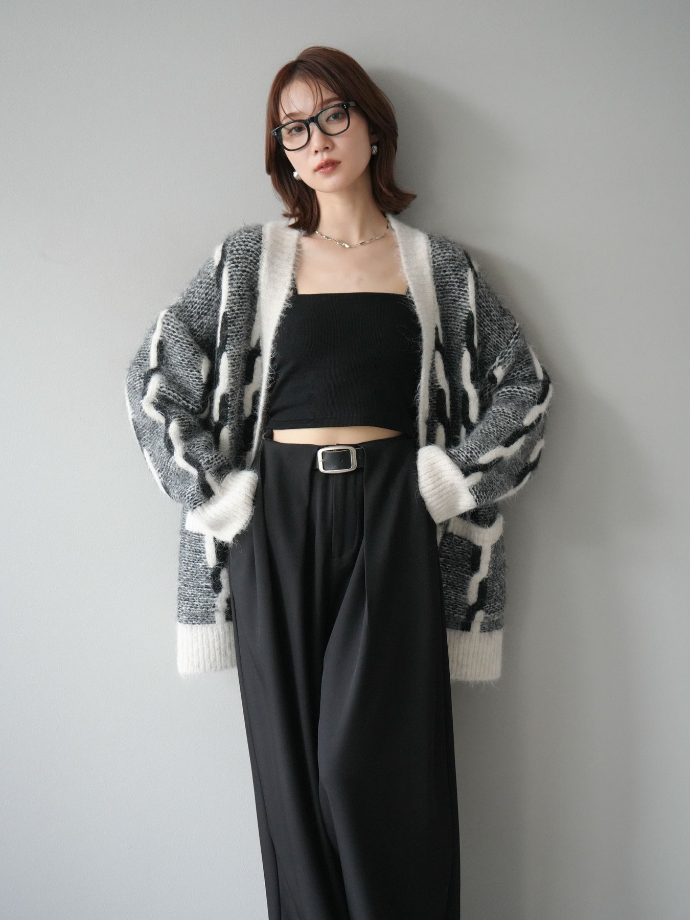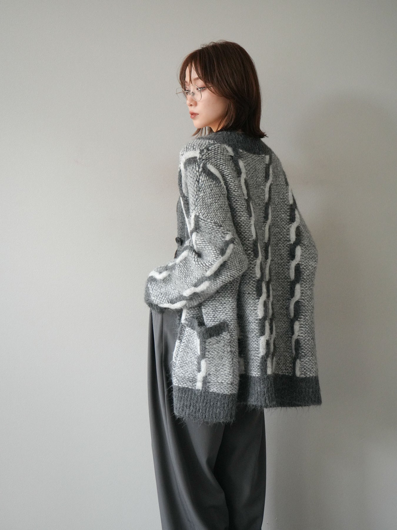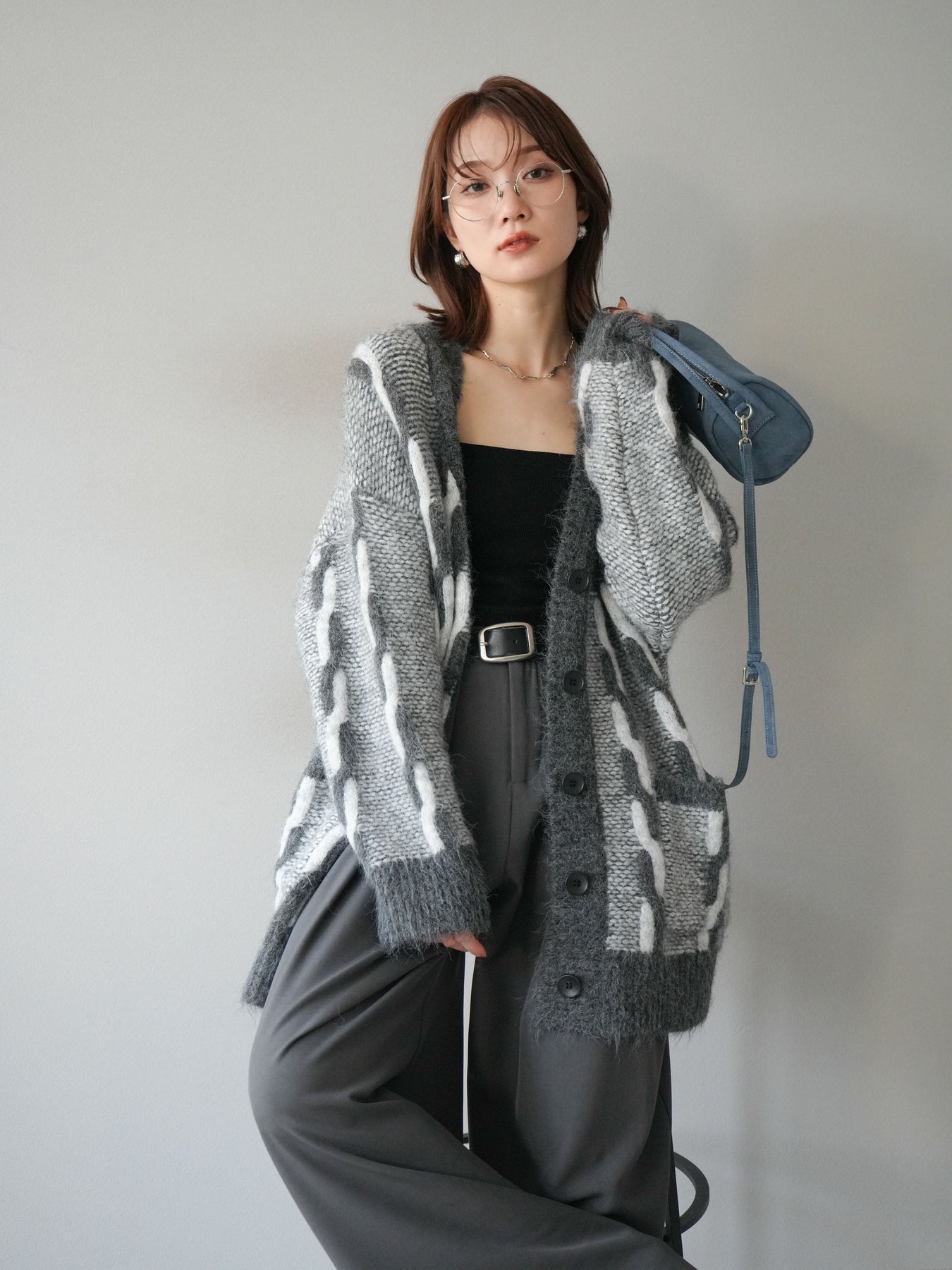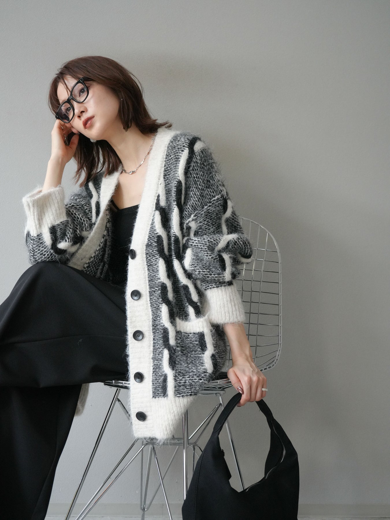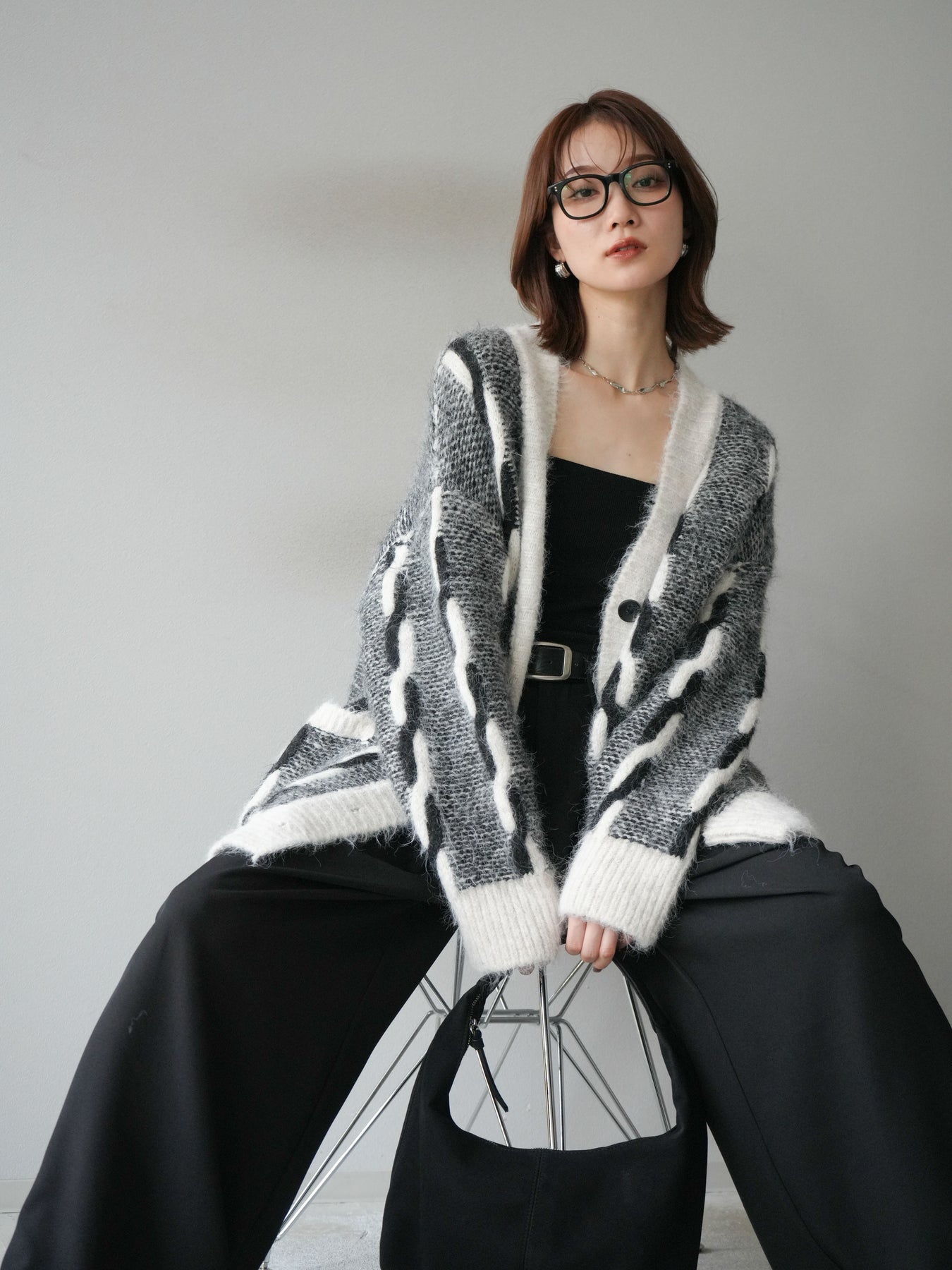 ◆ [予約]バイカラー編み込みデザインニットカーディガン