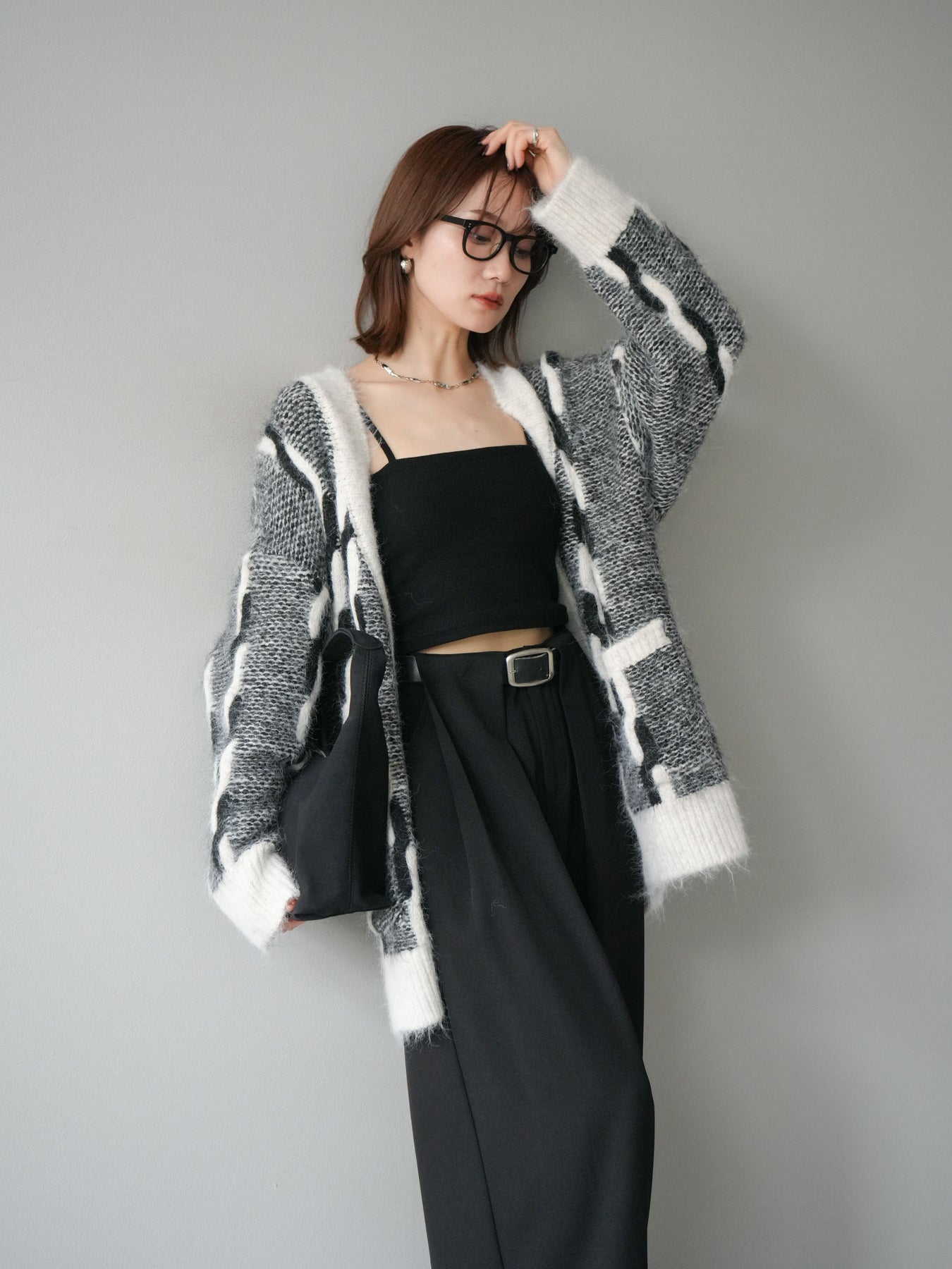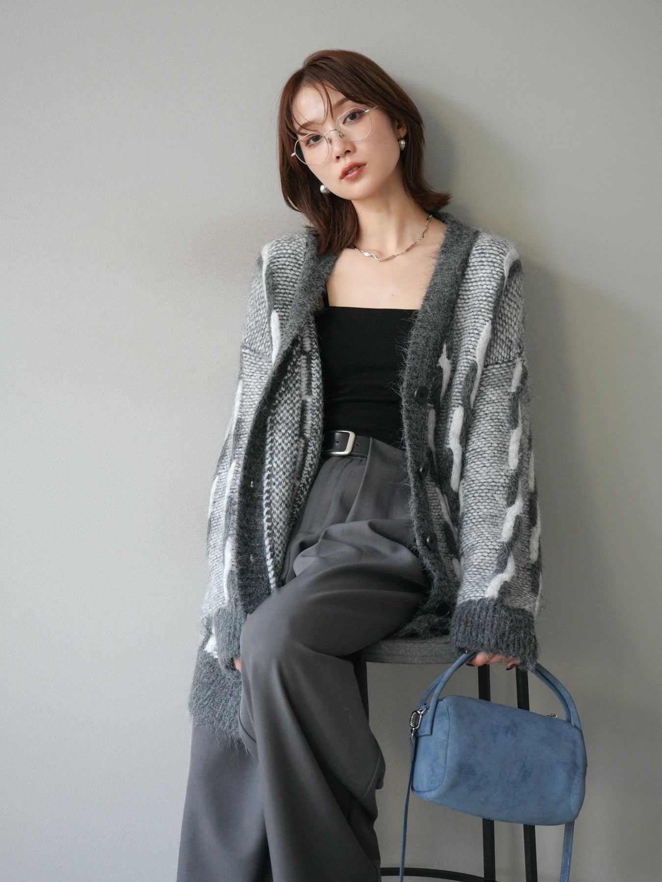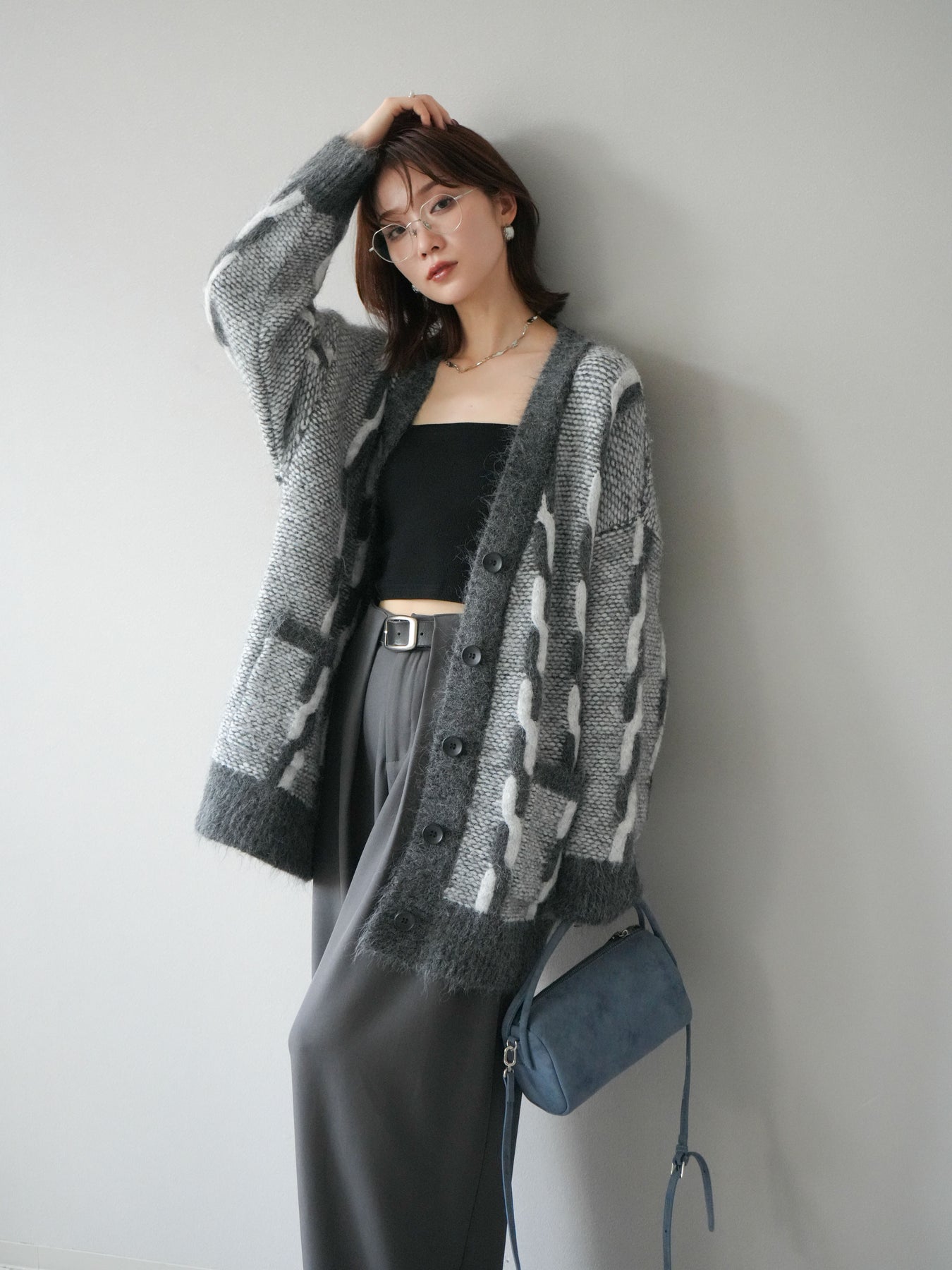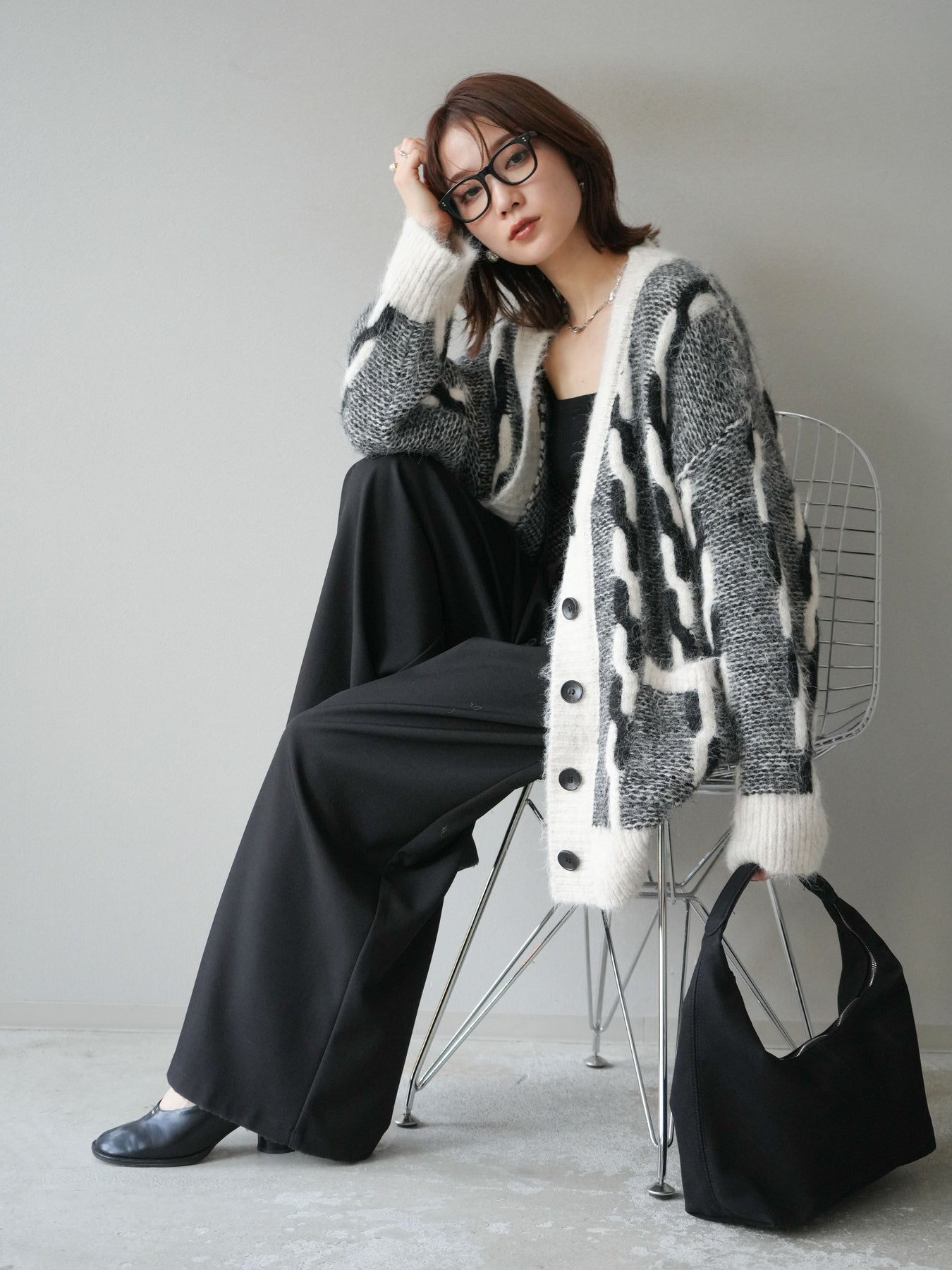 ◆ [予約]バイカラー編み込みデザインニットカーディガン