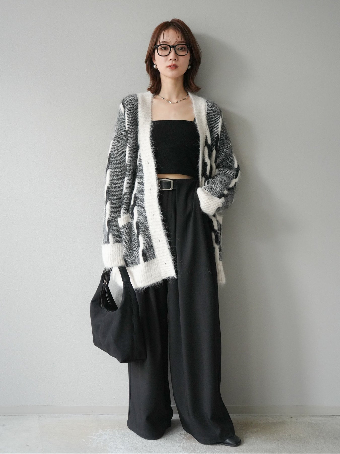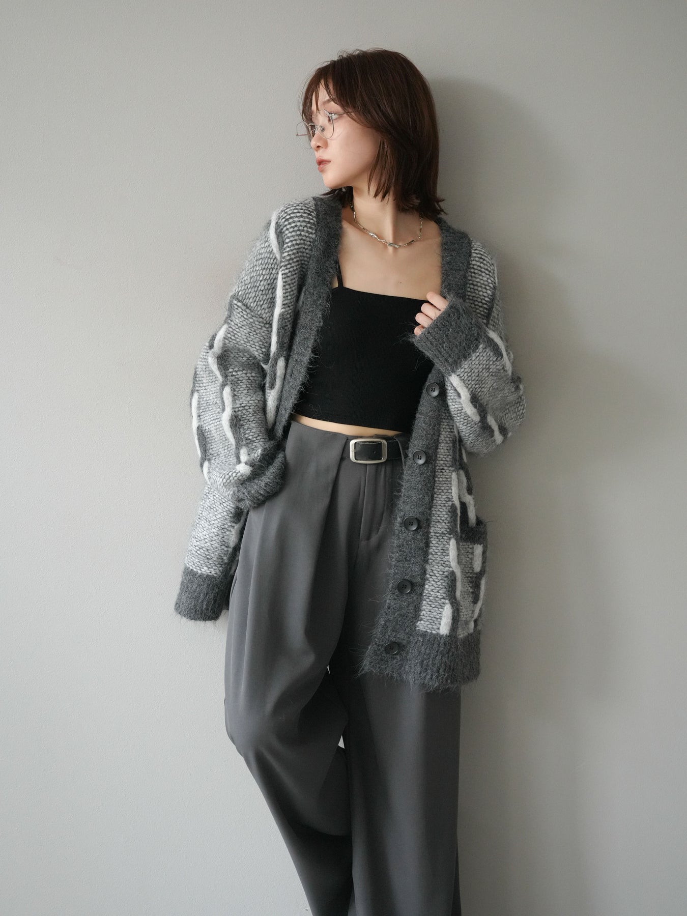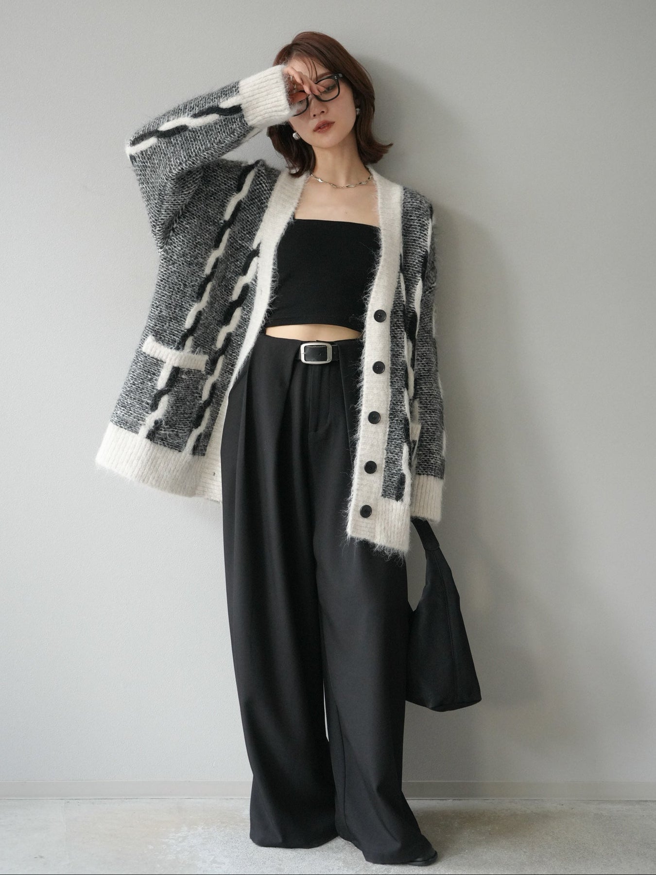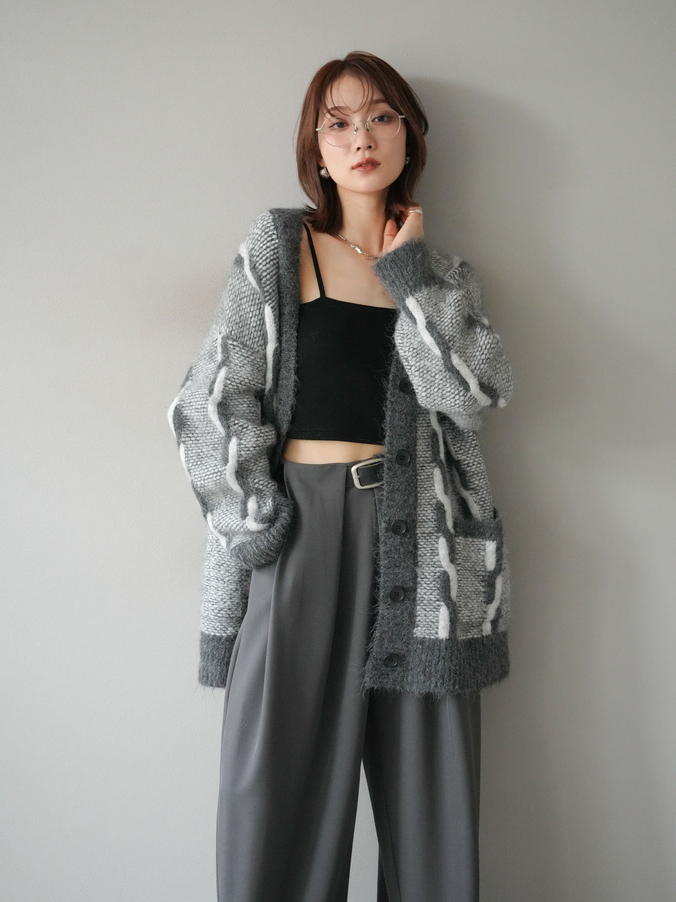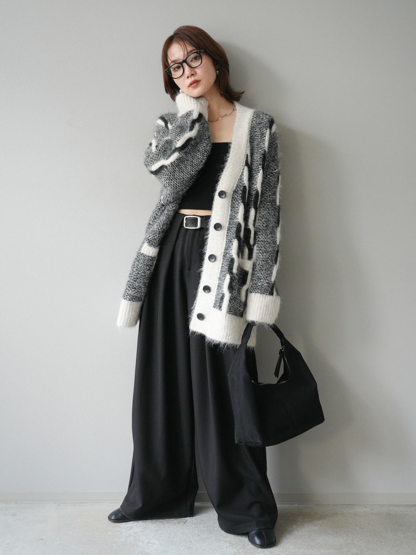 ◆ [予約]バイカラー編み込みデザインニットカーディガン