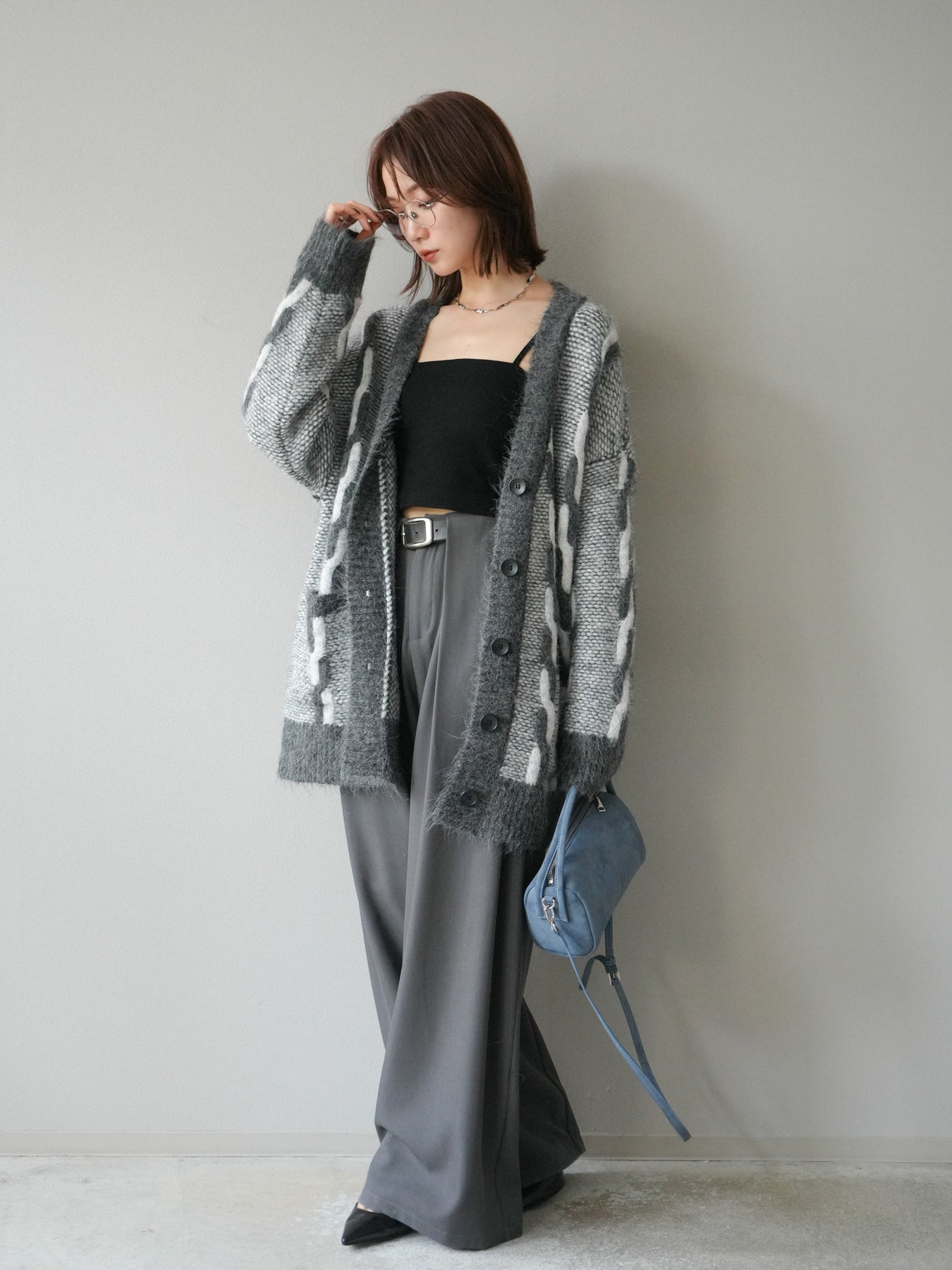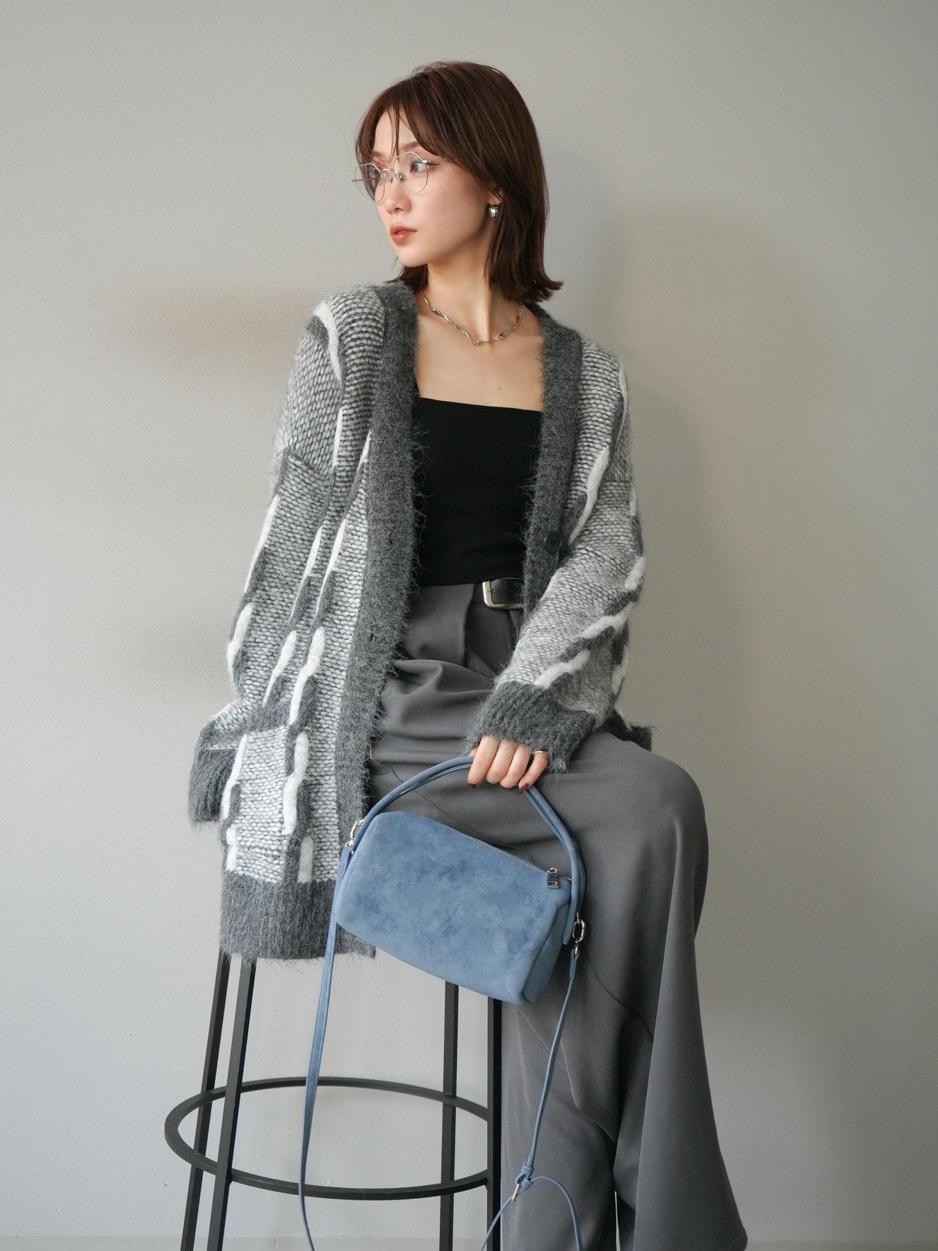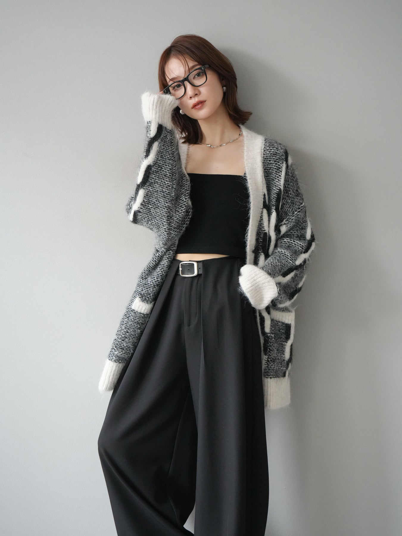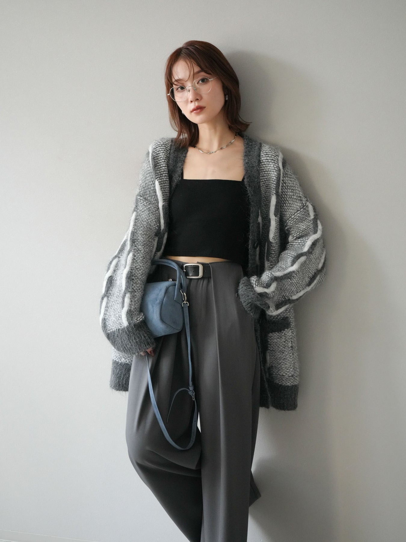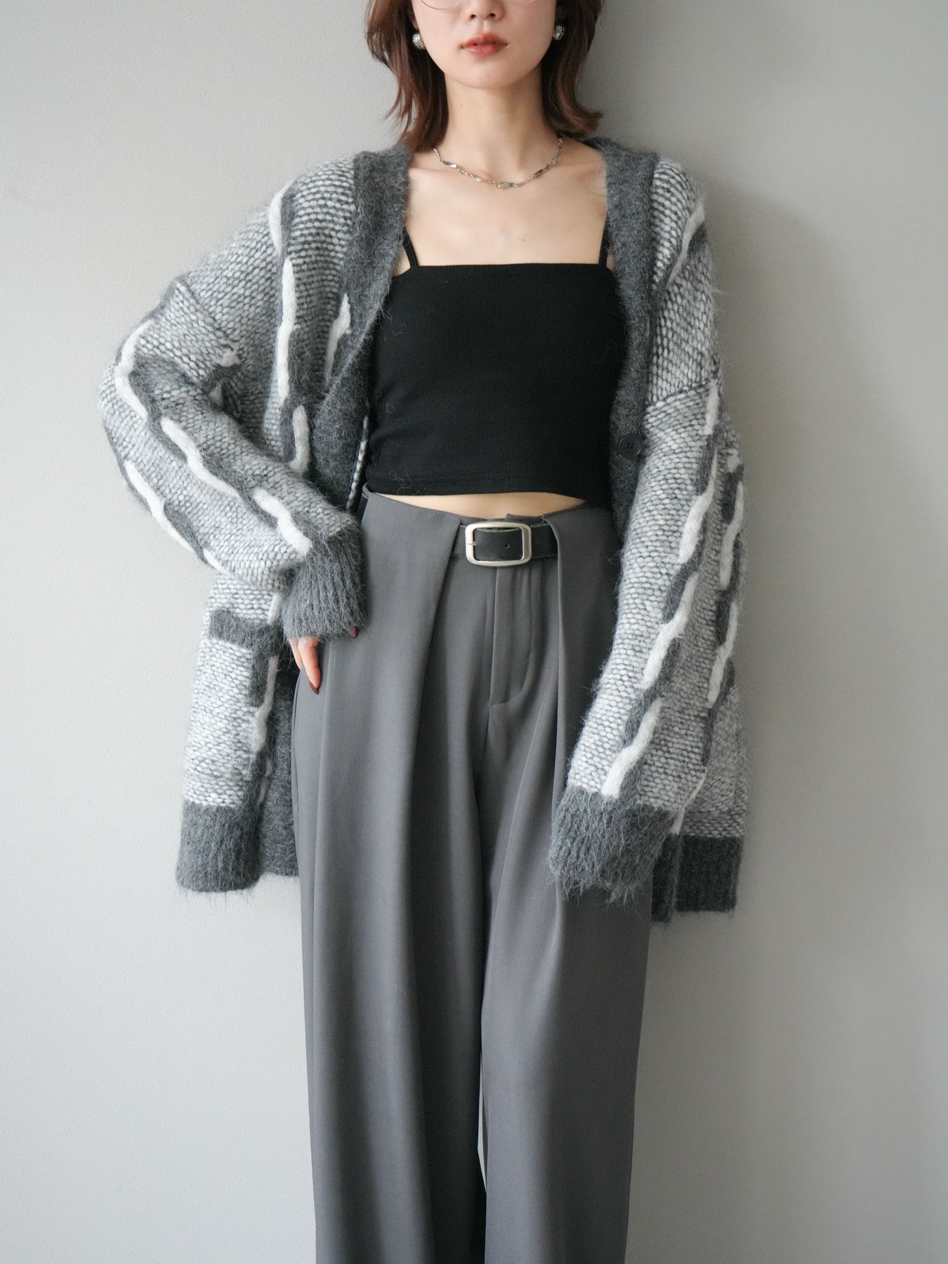 ◆ [予約]バイカラー編み込みデザインニットカーディガン