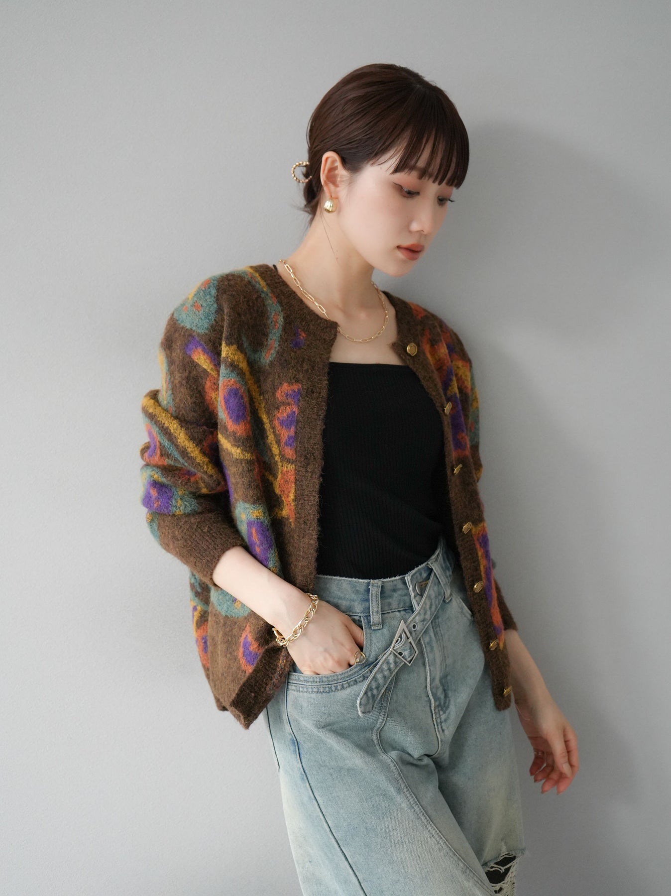 一件帶有漂亮復古佩斯利圖案的針織開襟衫。由柔軟的混合紗線製成,非常適合秋冬風格。適度寬鬆的輪廓易於分層搭配,穿著舒適。連結設計增添了亮點,可用於從休閒到時尚的各種服裝。 ※除下裝、吊帶背心(內衣)以外的所有商品均不包含內衣。