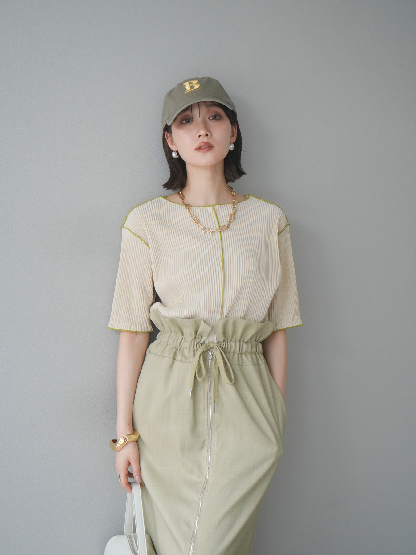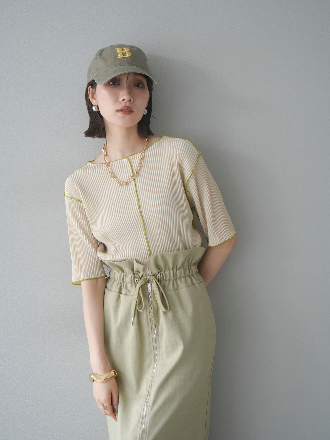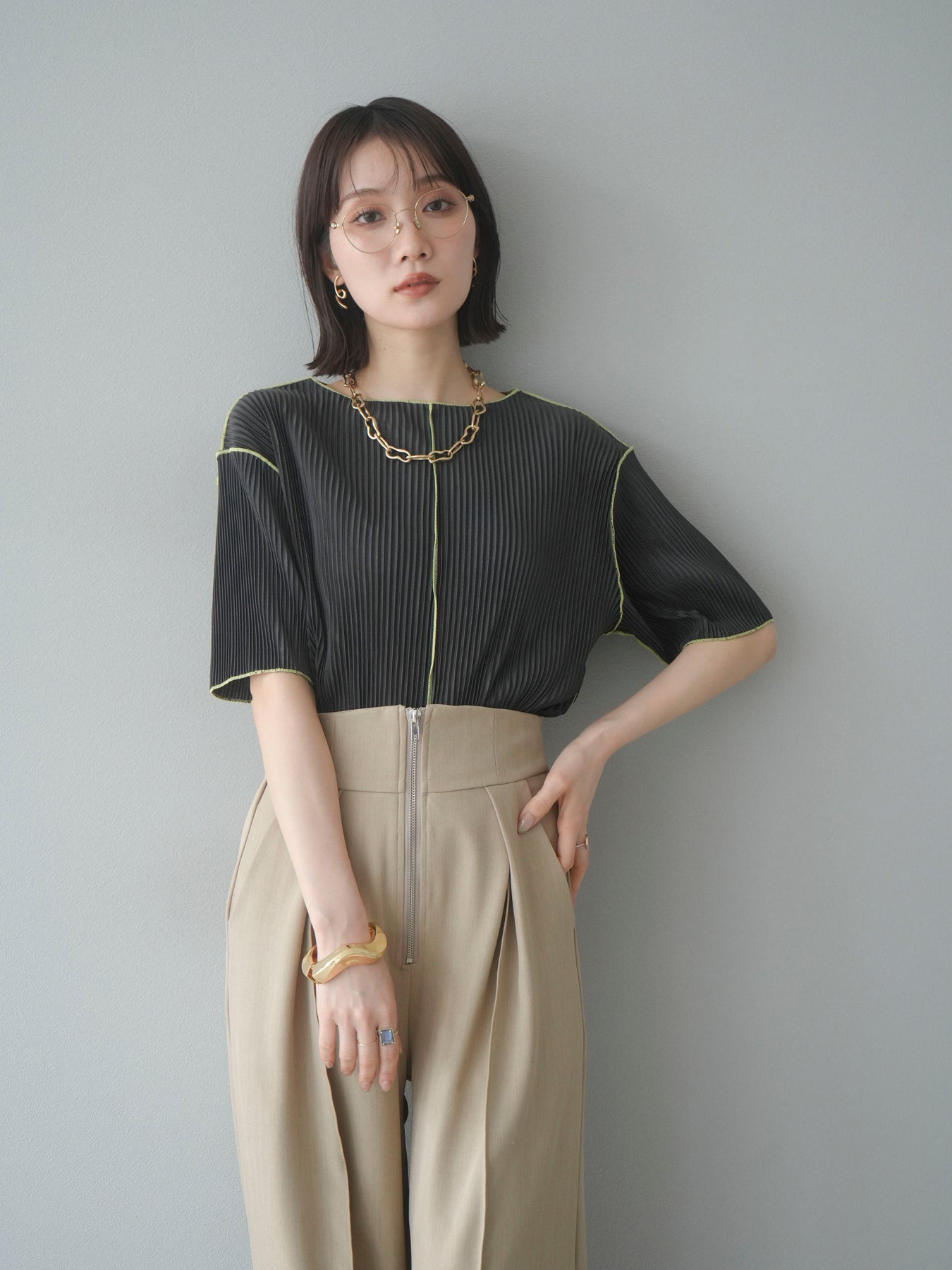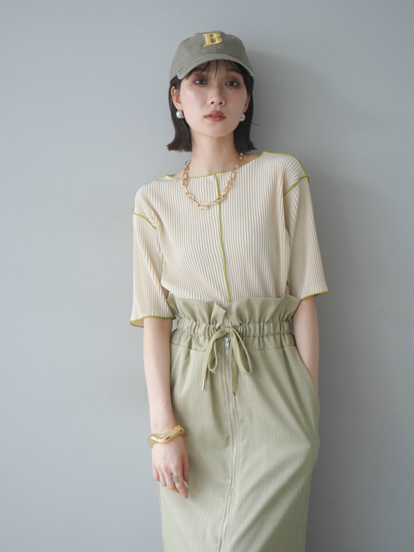 色彩協調的柔和褶皺半袖上衣,採用精緻的褶皺面料,點綴著柔和的色彩。輕盈富彈性的褶皺布料貼合身體,帶來修身效果。柔和的色彩帶來簡約而不失俏皮的氣息,非常適合單獨穿著。長度適中,輪廓寬鬆,易於搭配褲裝或裙裝,是完美的疊穿選擇。 *除下裝和吊帶背心(內衣)外,其他商品均不含內衣。