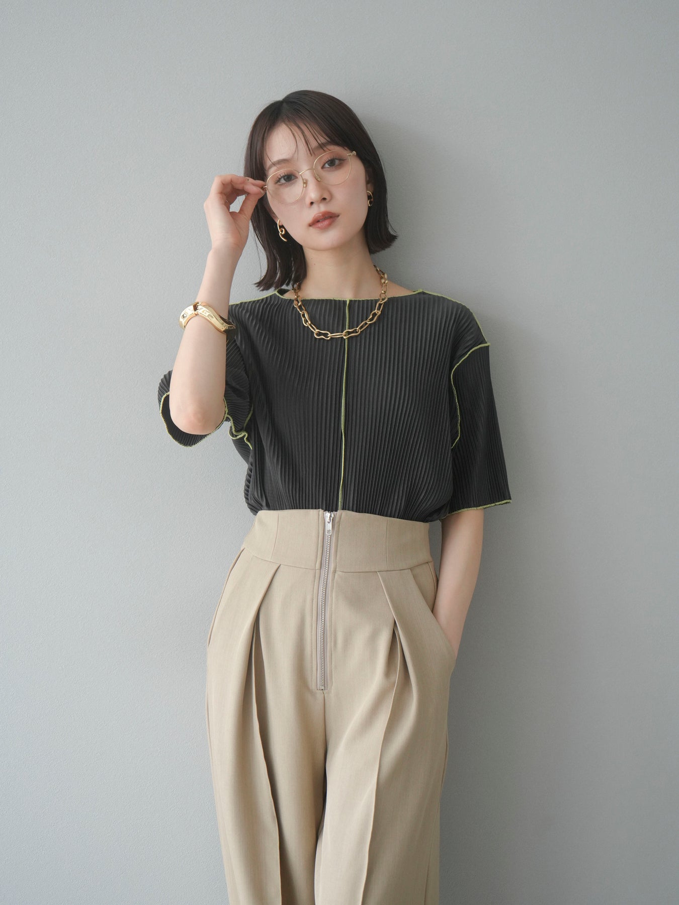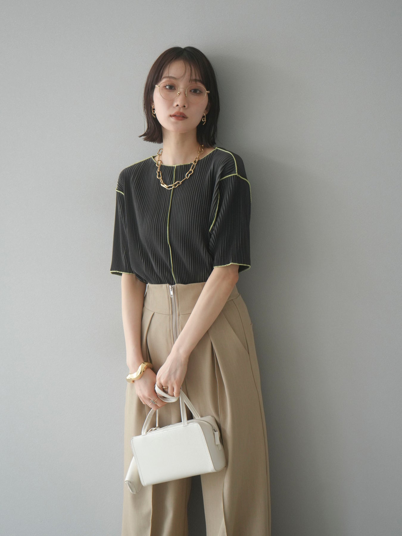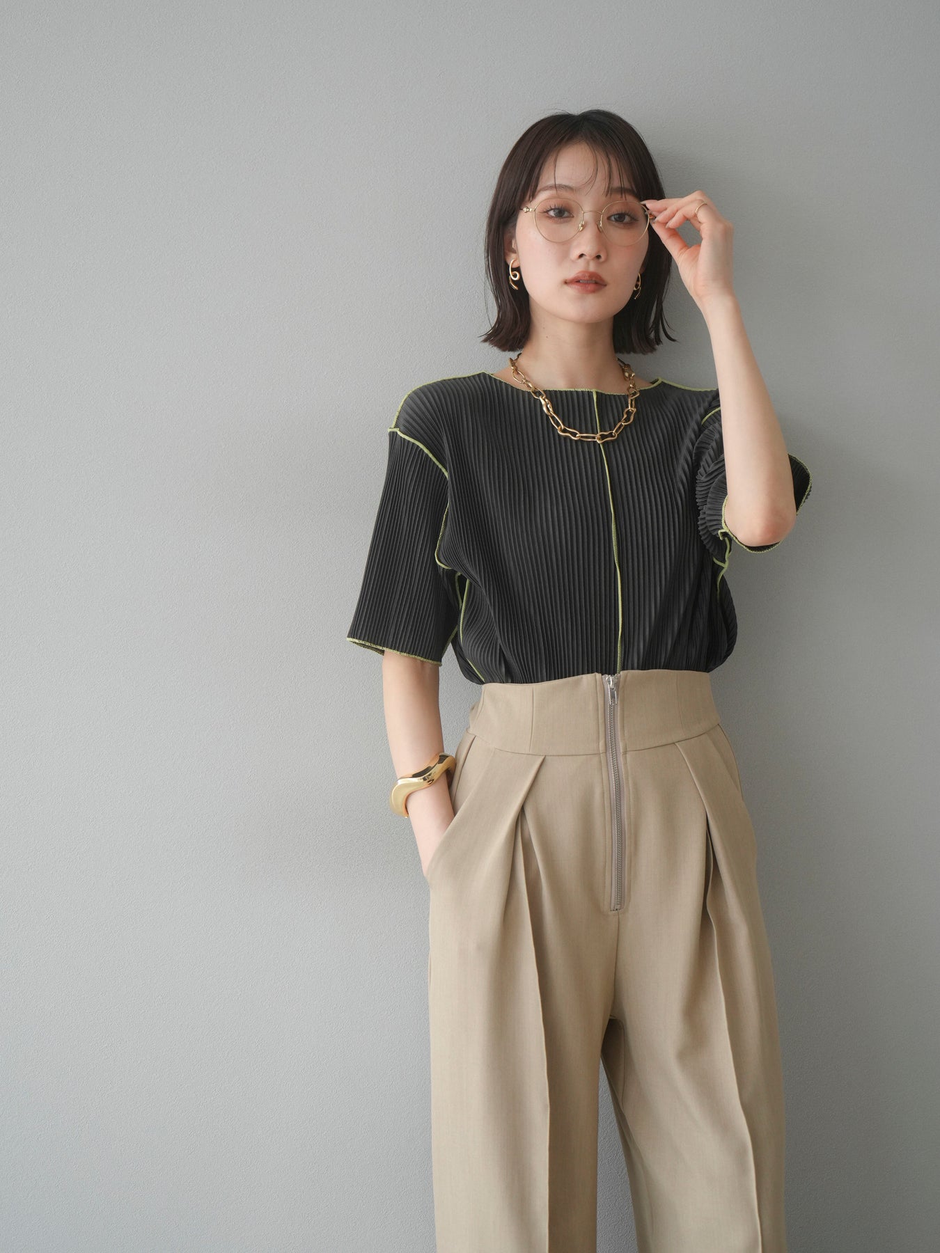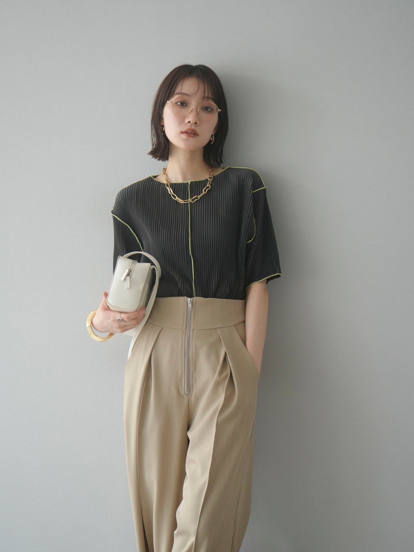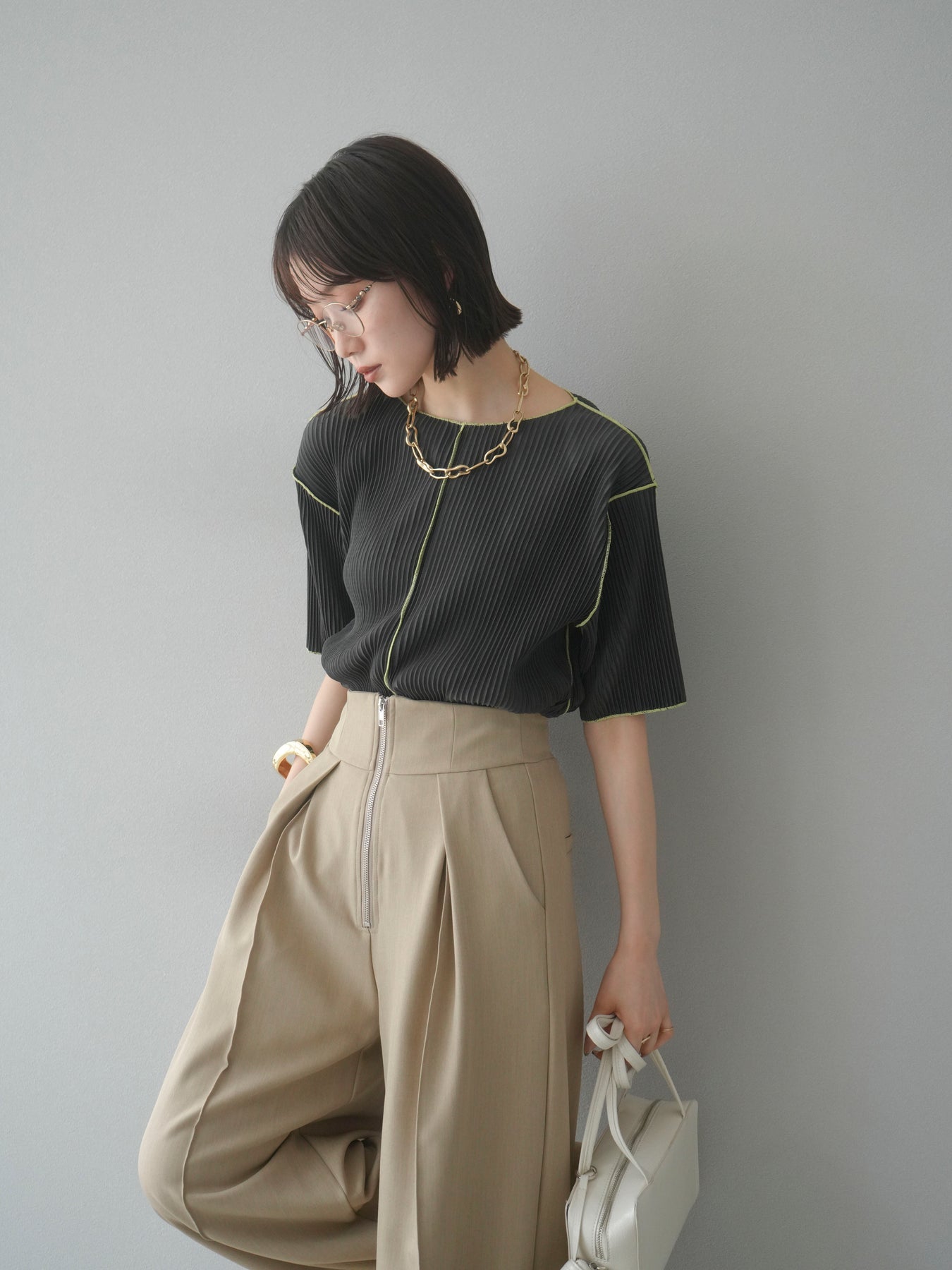 色彩協調的柔和褶皺半袖上衣,採用精緻的褶皺面料,點綴著柔和的色彩。輕盈富彈性的褶皺布料貼合身體,帶來修身效果。柔和的色彩帶來簡約而不失俏皮的氣息,非常適合單獨穿著。長度適中,輪廓寬鬆,易於搭配褲裝或裙裝,是完美的疊穿選擇。 *除下裝和吊帶背心(內衣)外,其他商品均不含內衣。
