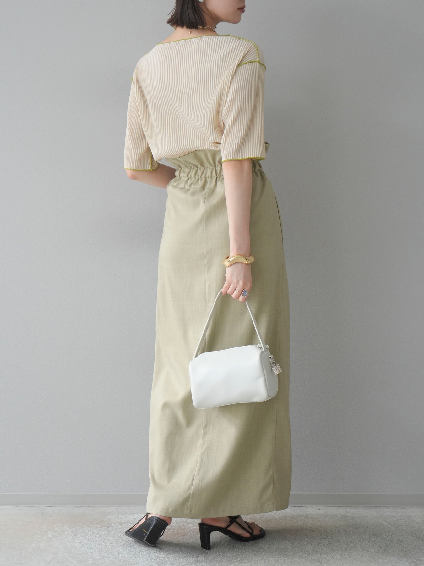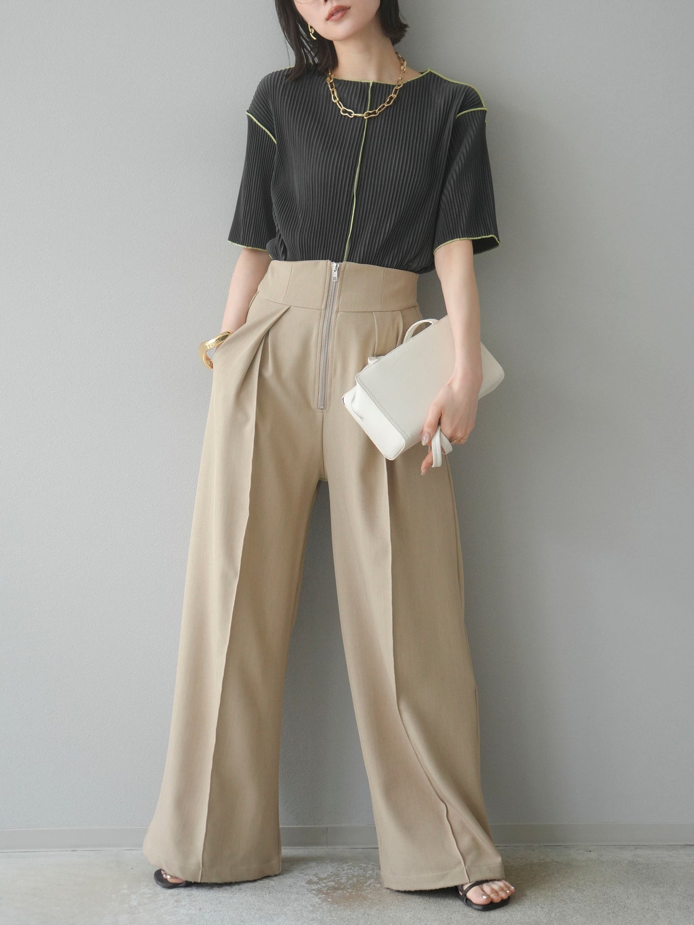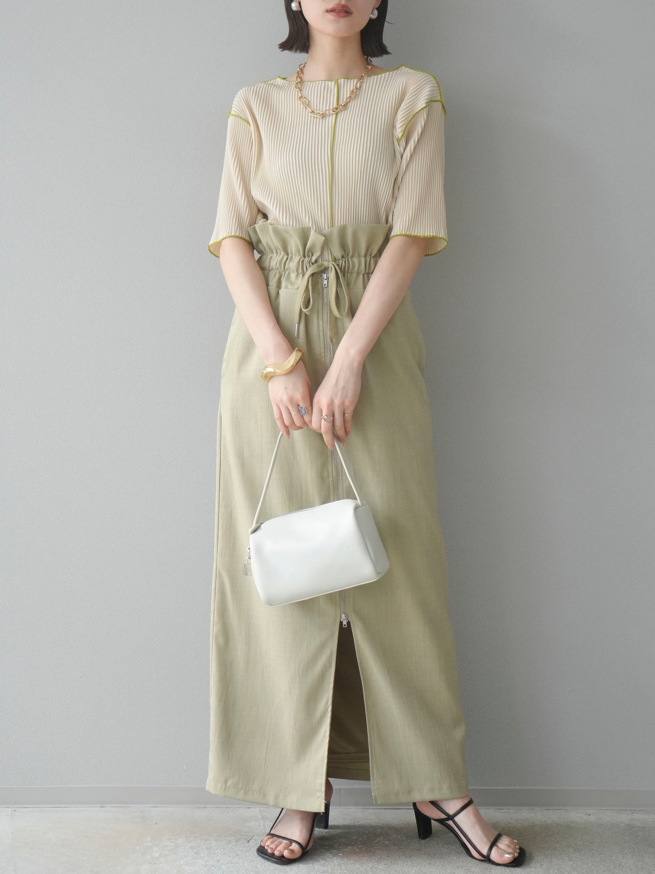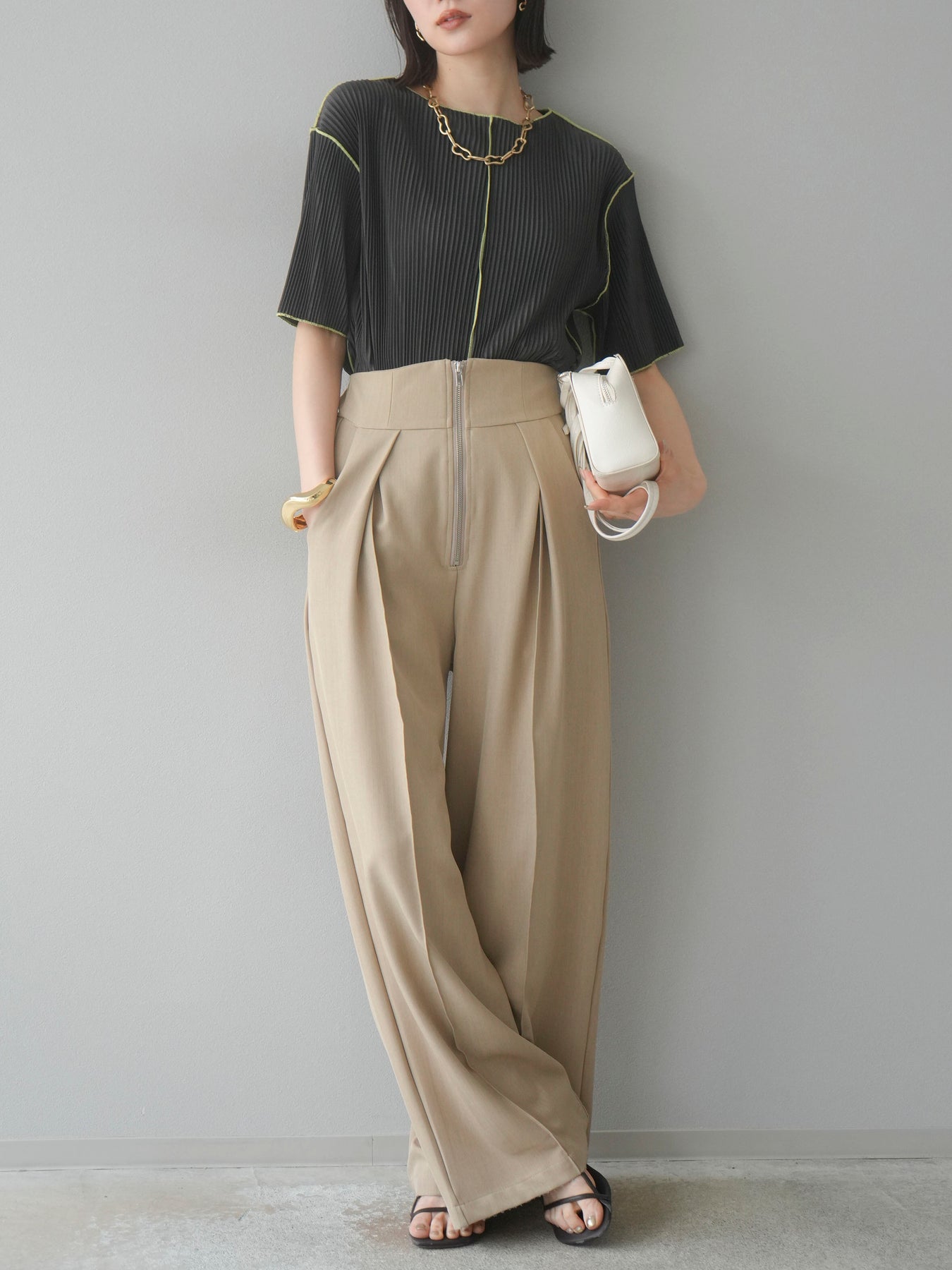 色彩協調的柔和褶皺半袖上衣,採用精緻的褶皺面料,點綴著柔和的色彩。輕盈富彈性的褶皺布料貼合身體,帶來修身效果。柔和的色彩帶來簡約而不失俏皮的氣息,非常適合單獨穿著。長度適中,輪廓寬鬆,易於搭配褲裝或裙裝,是完美的疊穿選擇。 *除下裝和吊帶背心(內衣)外,其他商品均不含內衣。