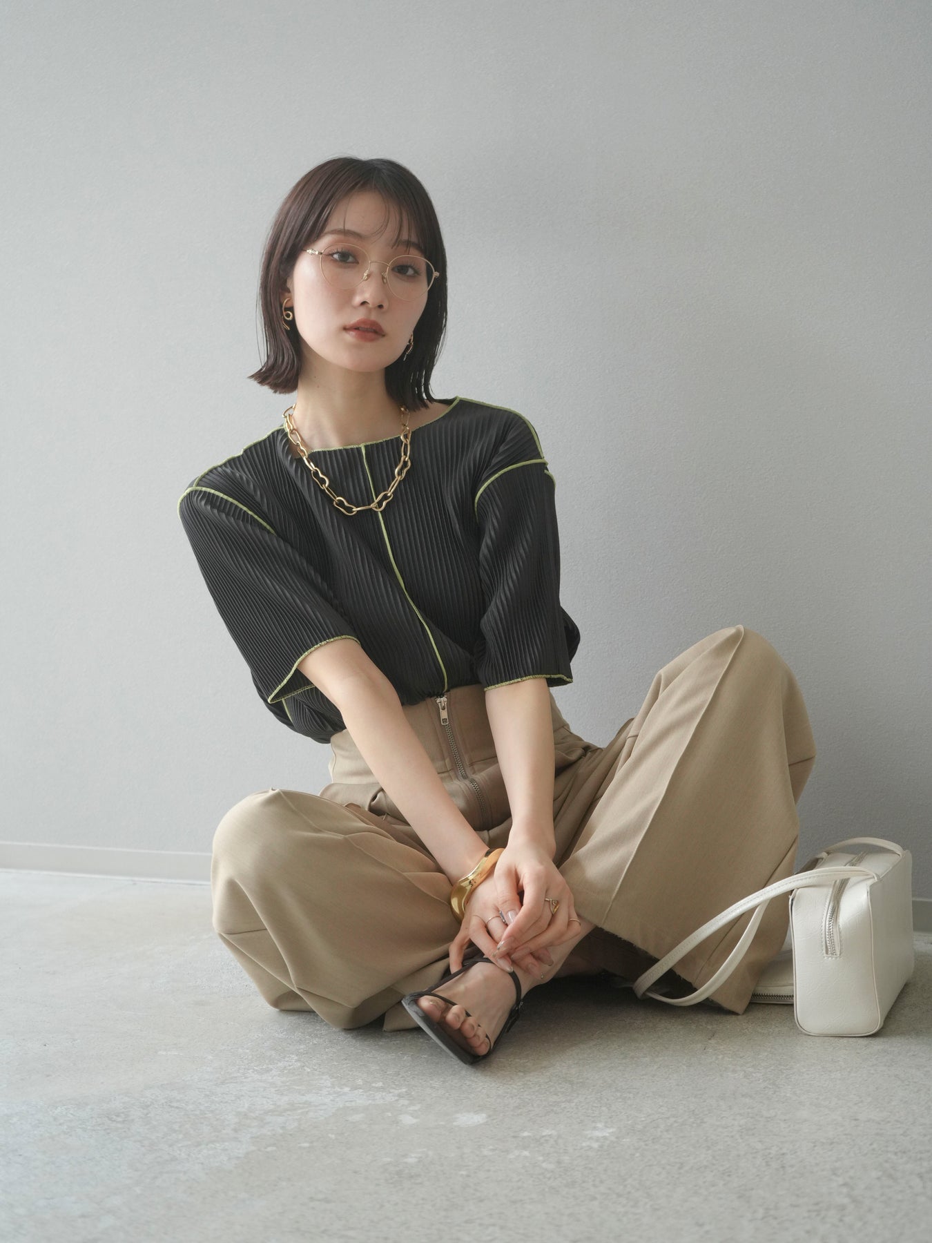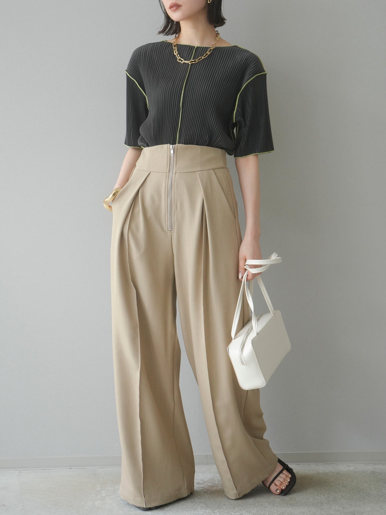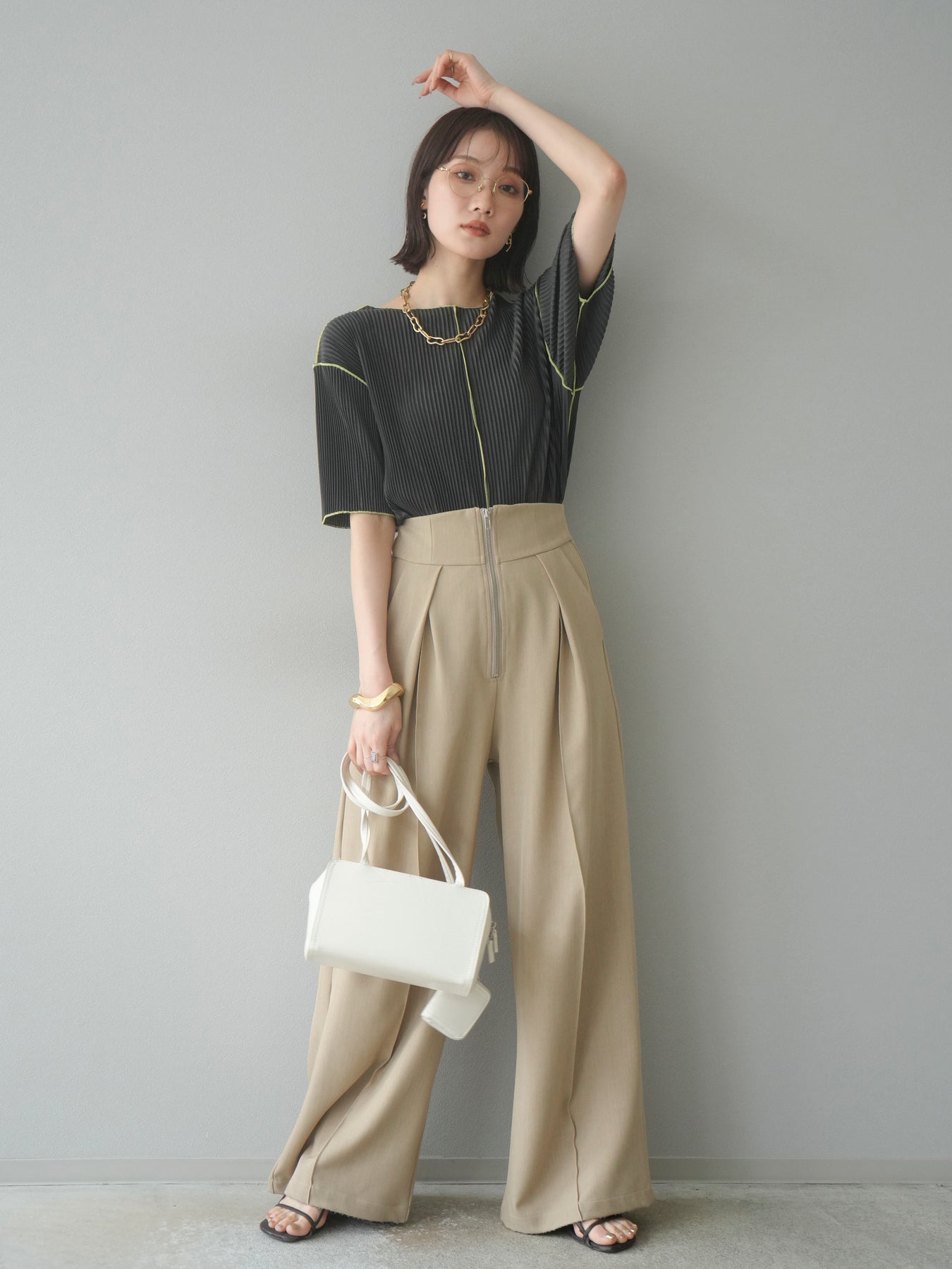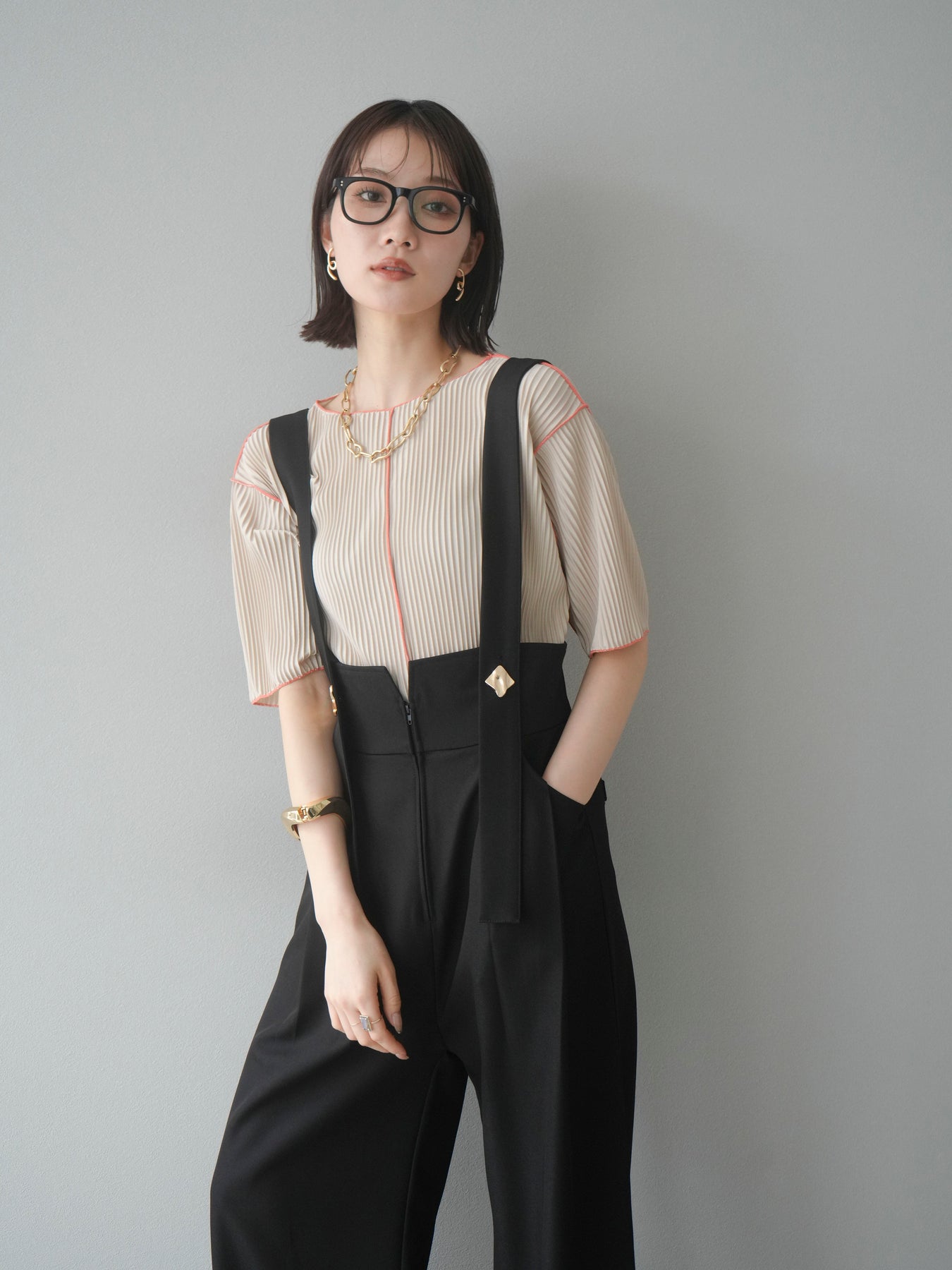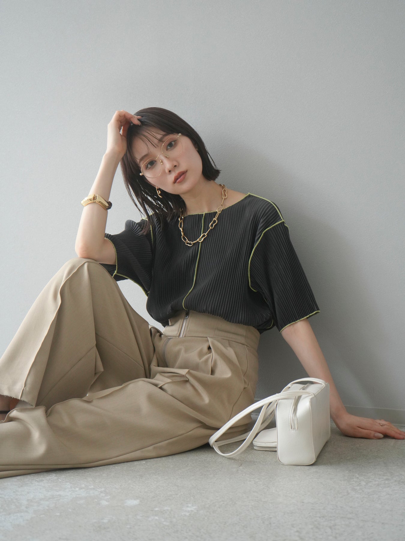 色彩協調的柔和褶皺半袖上衣,採用精緻的褶皺面料,點綴著柔和的色彩。輕盈富彈性的褶皺布料貼合身體,帶來修身效果。柔和的色彩帶來簡約而不失俏皮的氣息,非常適合單獨穿著。長度適中,輪廓寬鬆,易於搭配褲裝或裙裝,是完美的疊穿選擇。 *除下裝和吊帶背心(內衣)外,其他商品均不含內衣。