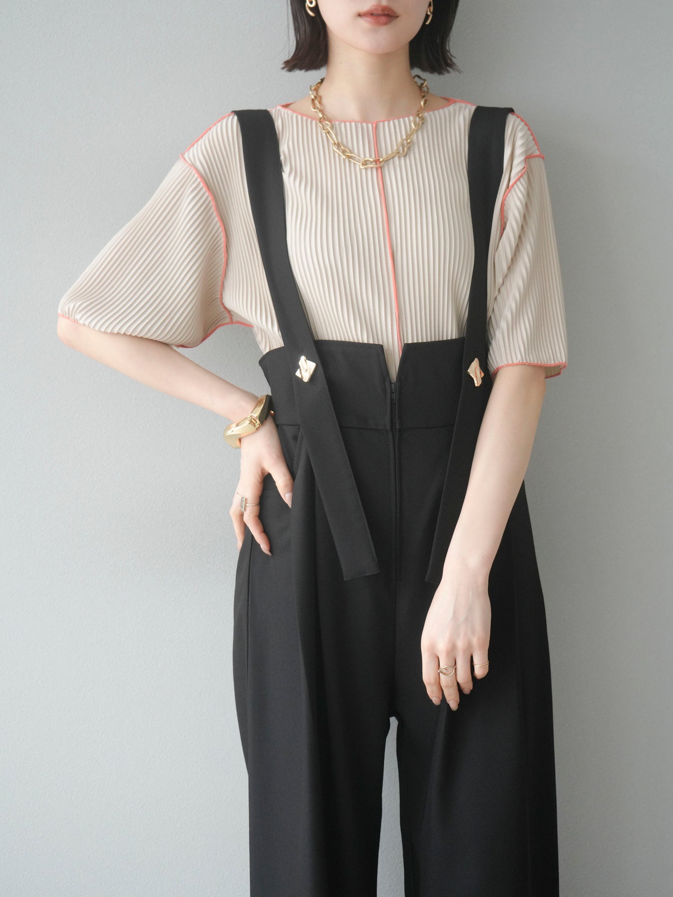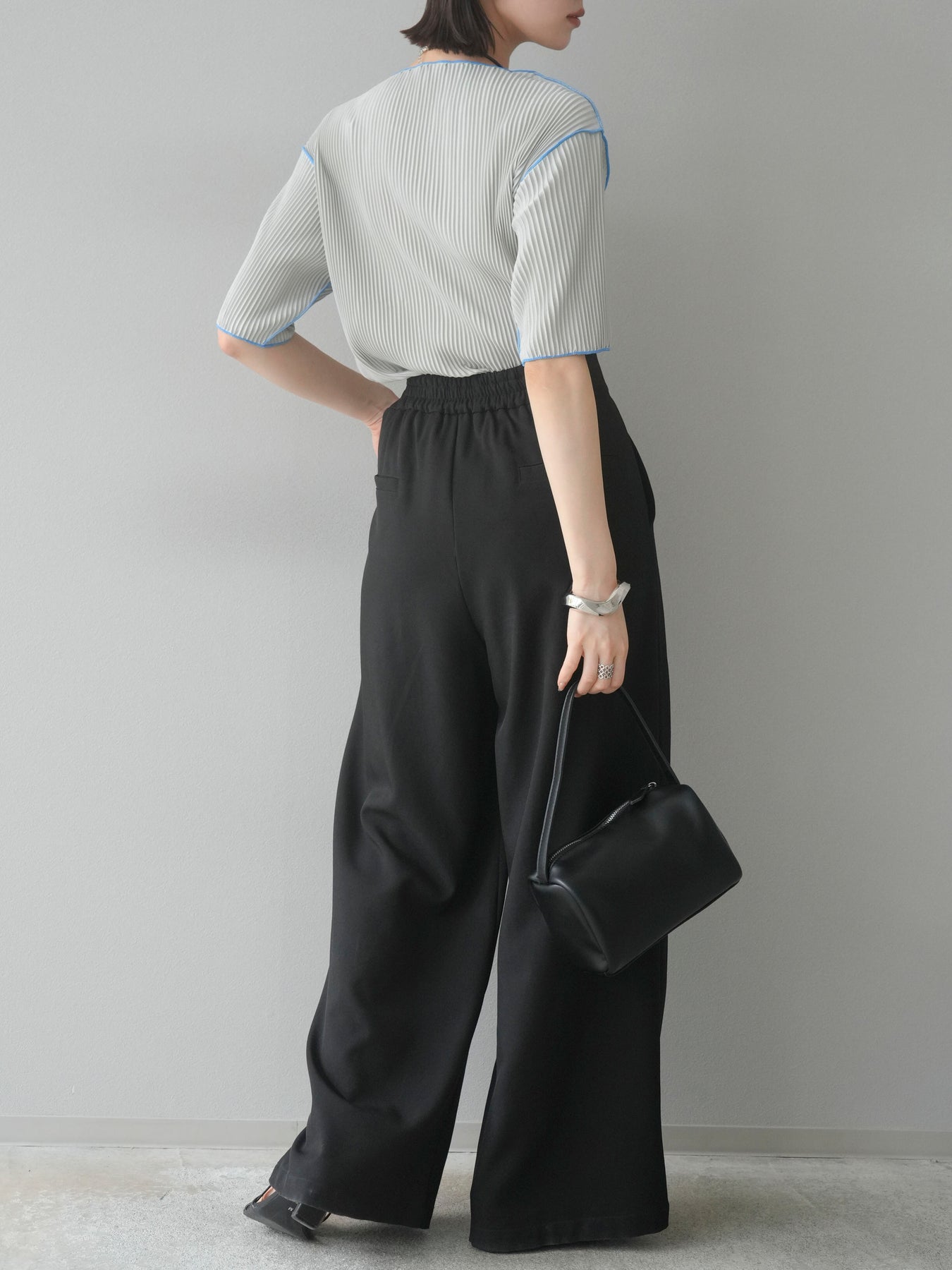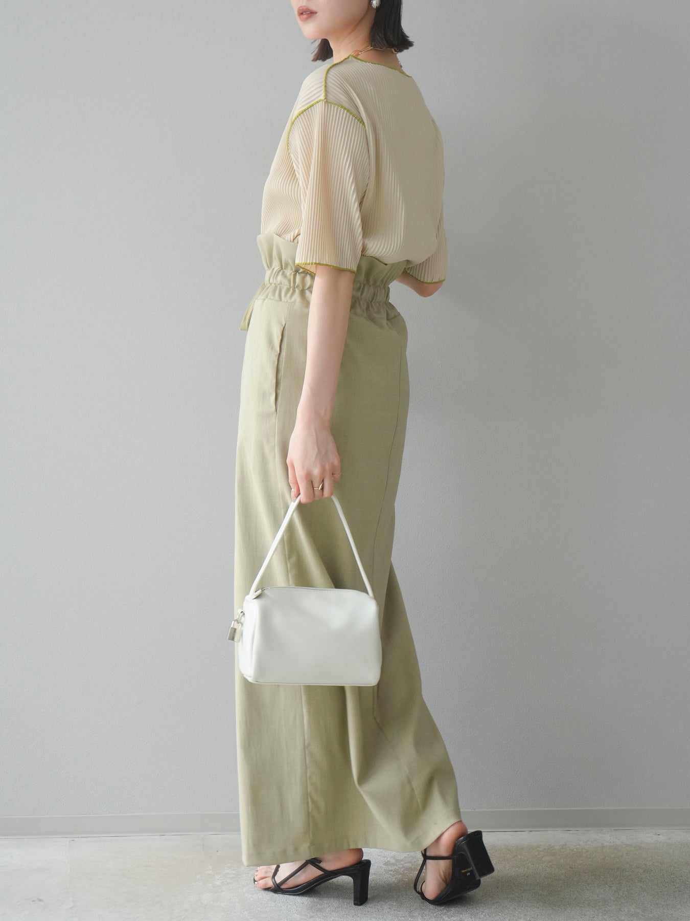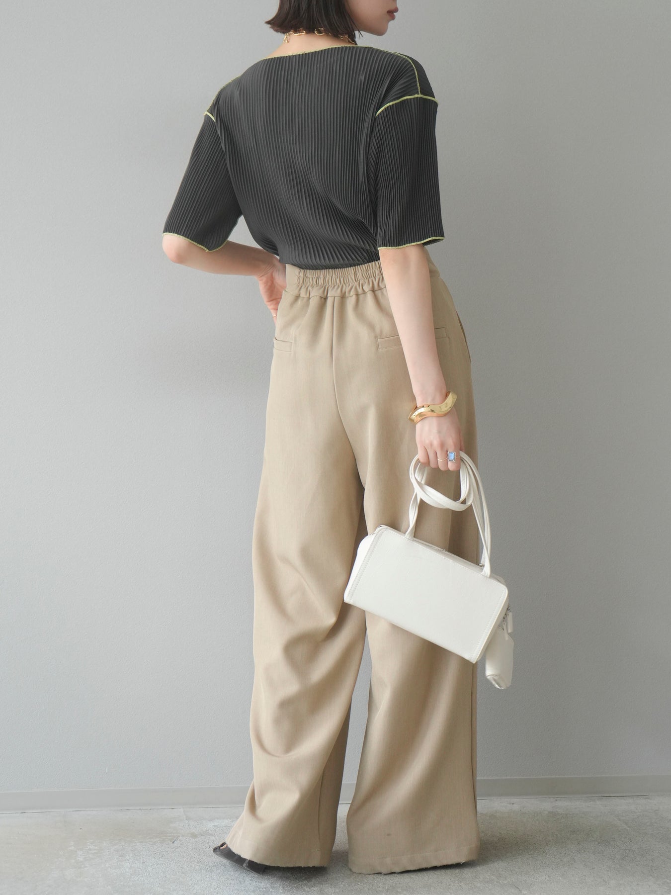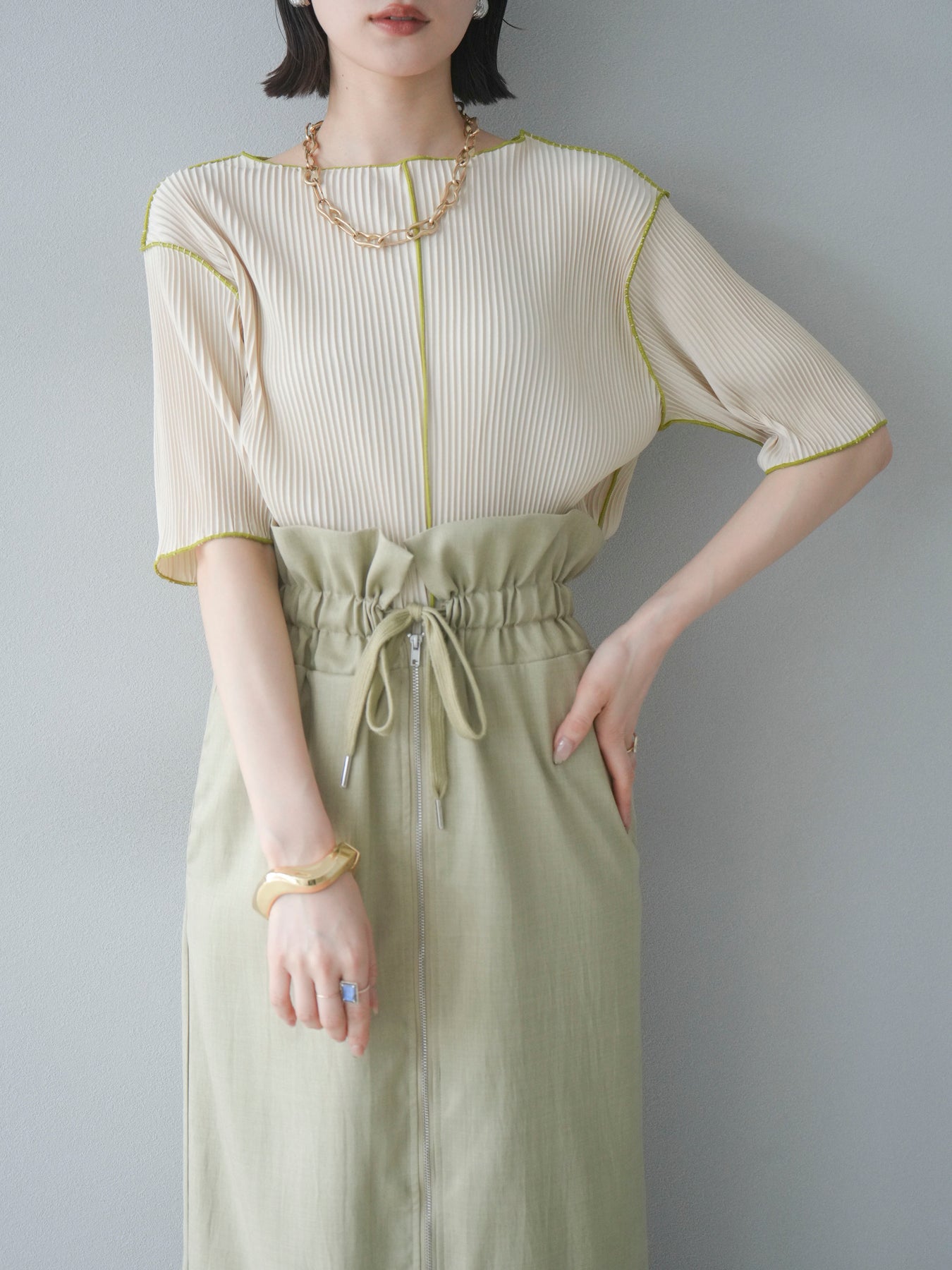 ◆ 【預購】色彩協調的柔和褶皺半袖上衣