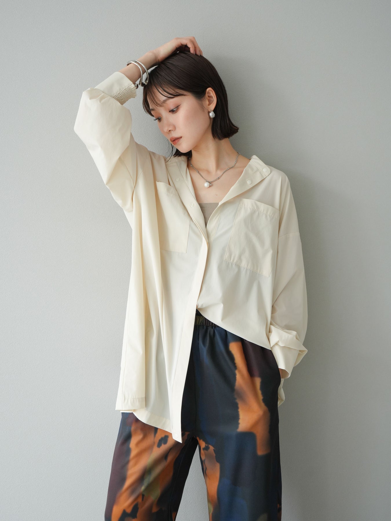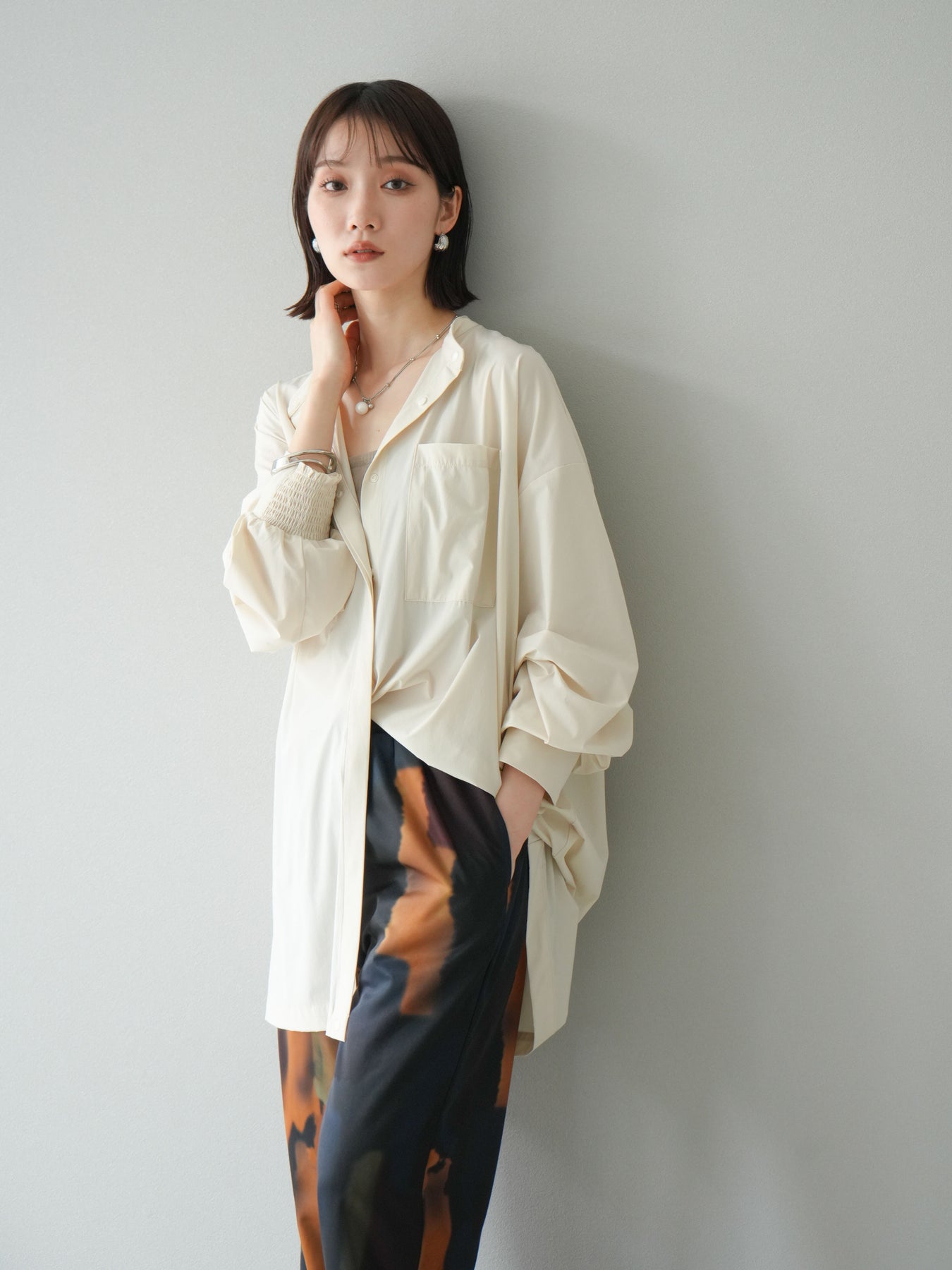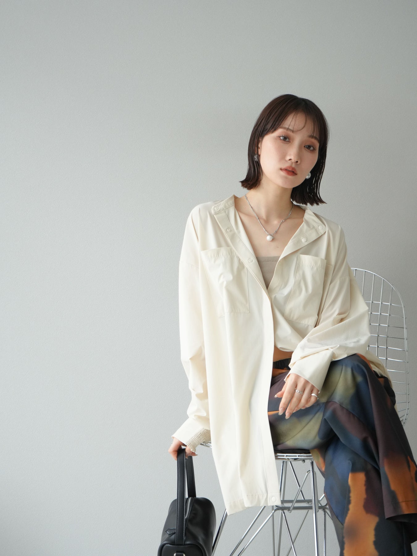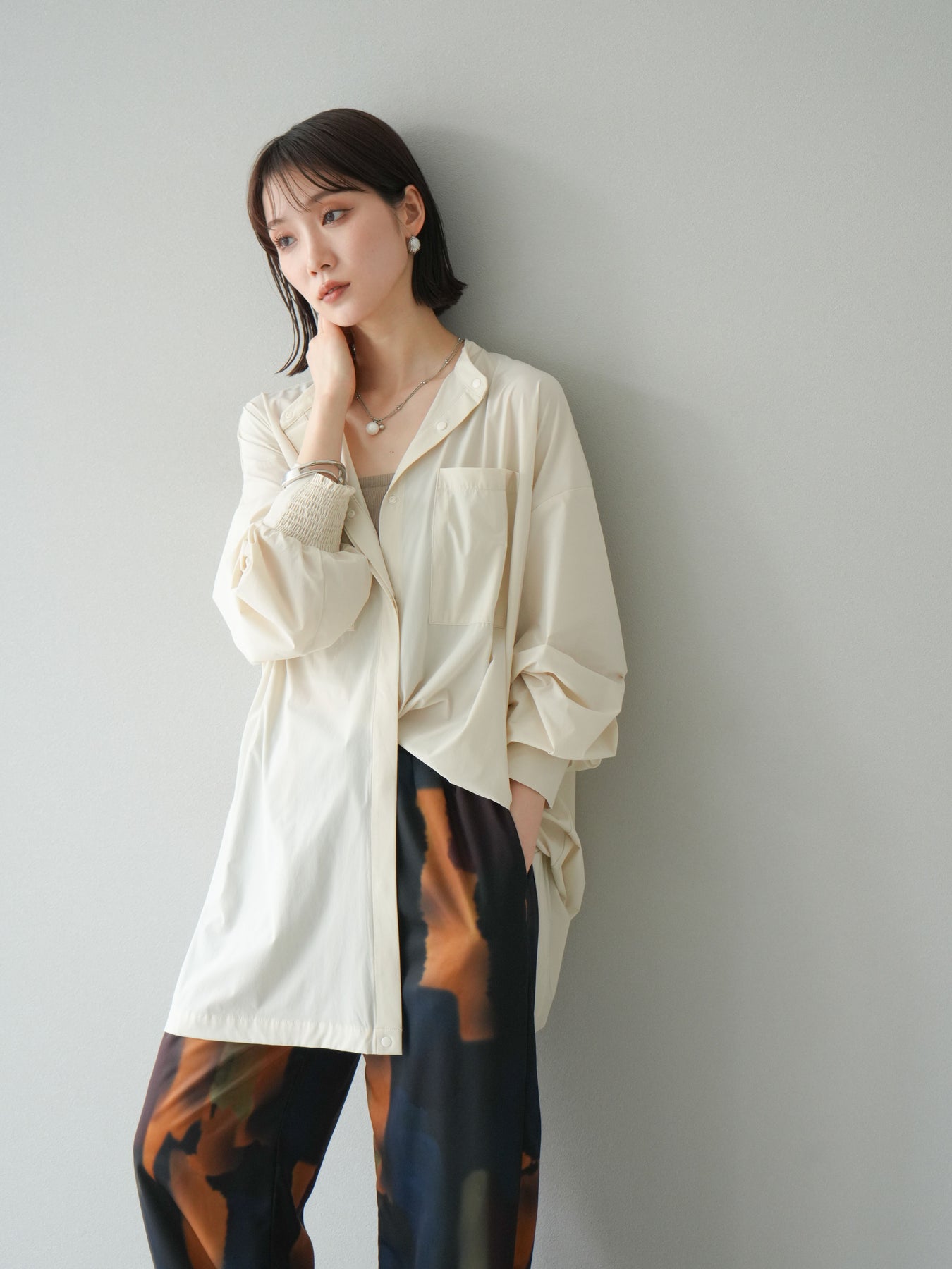 這款兩用外套採用觸感清涼的ICE TOUCH材質製成。它擁有順滑的觸感和輕盈的垂墜感,即使在炎熱天氣也能舒適穿著。簡約的立領和隱形門襟設計,讓您可以正反兩面穿著。它既可以作為襯衫穿著,也可以作為夾克穿著,讓您在整個季節都能擁有更多穿搭選擇。長度恰到好處地遮蓋臀部,非常適合隱藏身材。 *除下裝和吊帶背心(內衣)外,所有商品均不包含內衣。