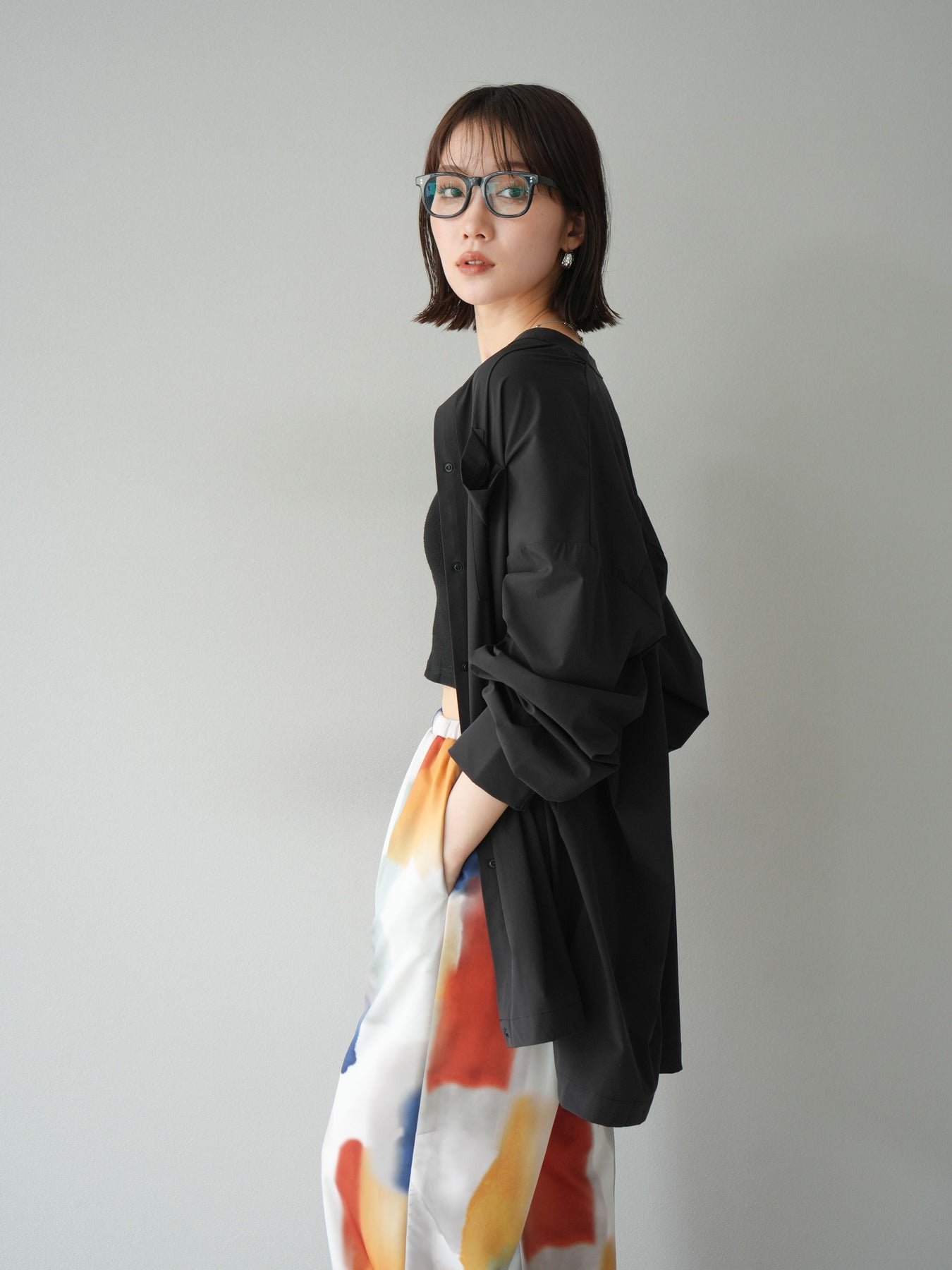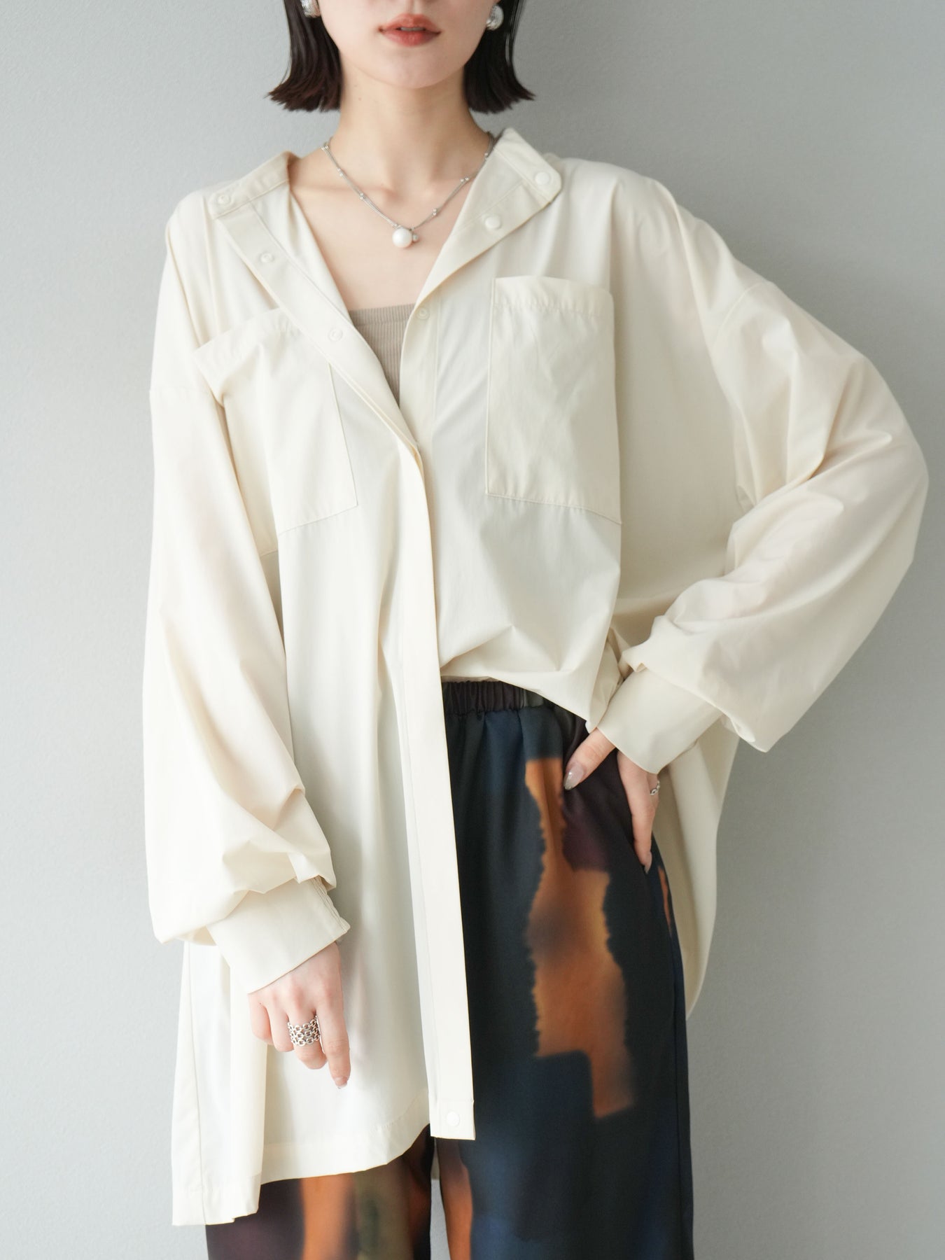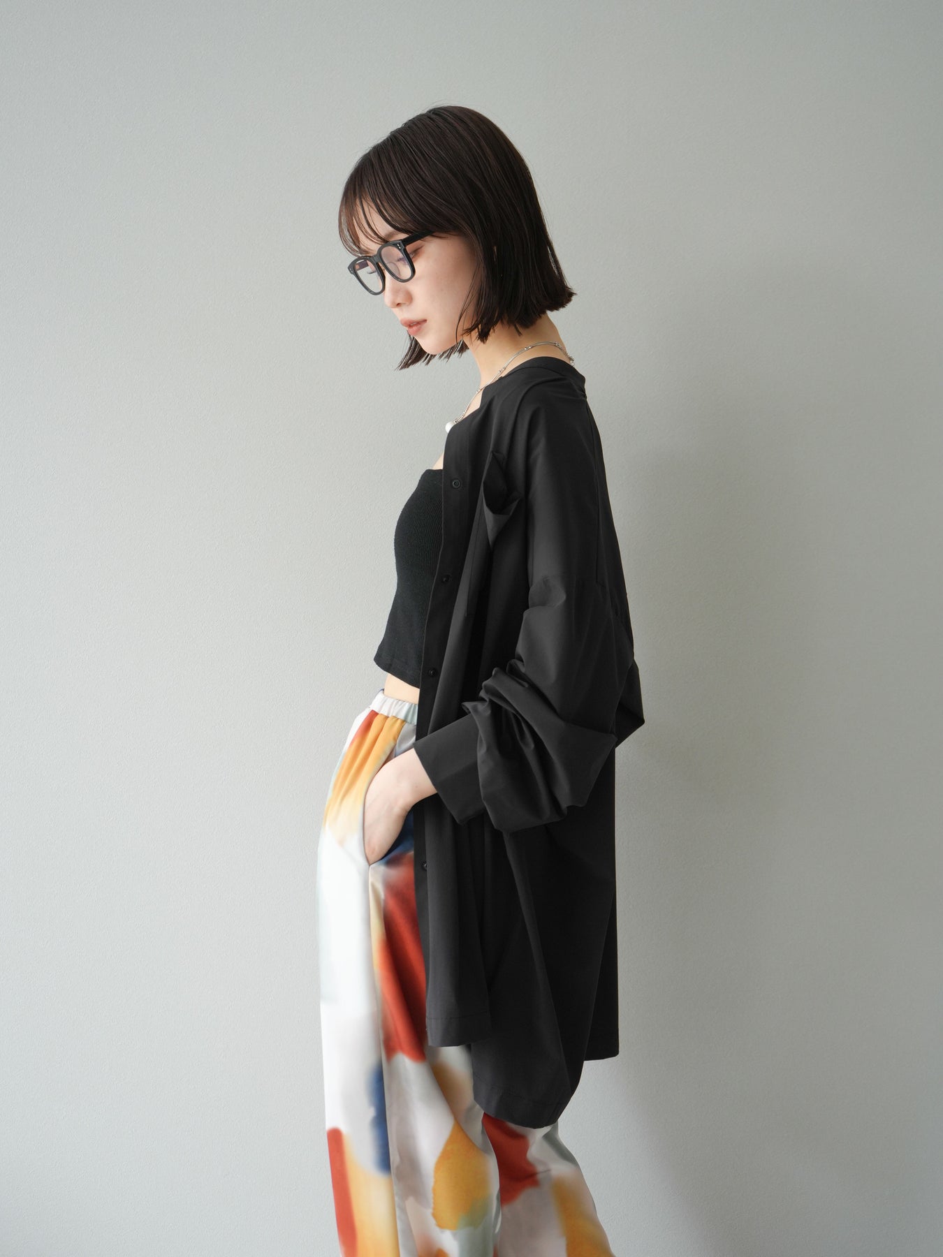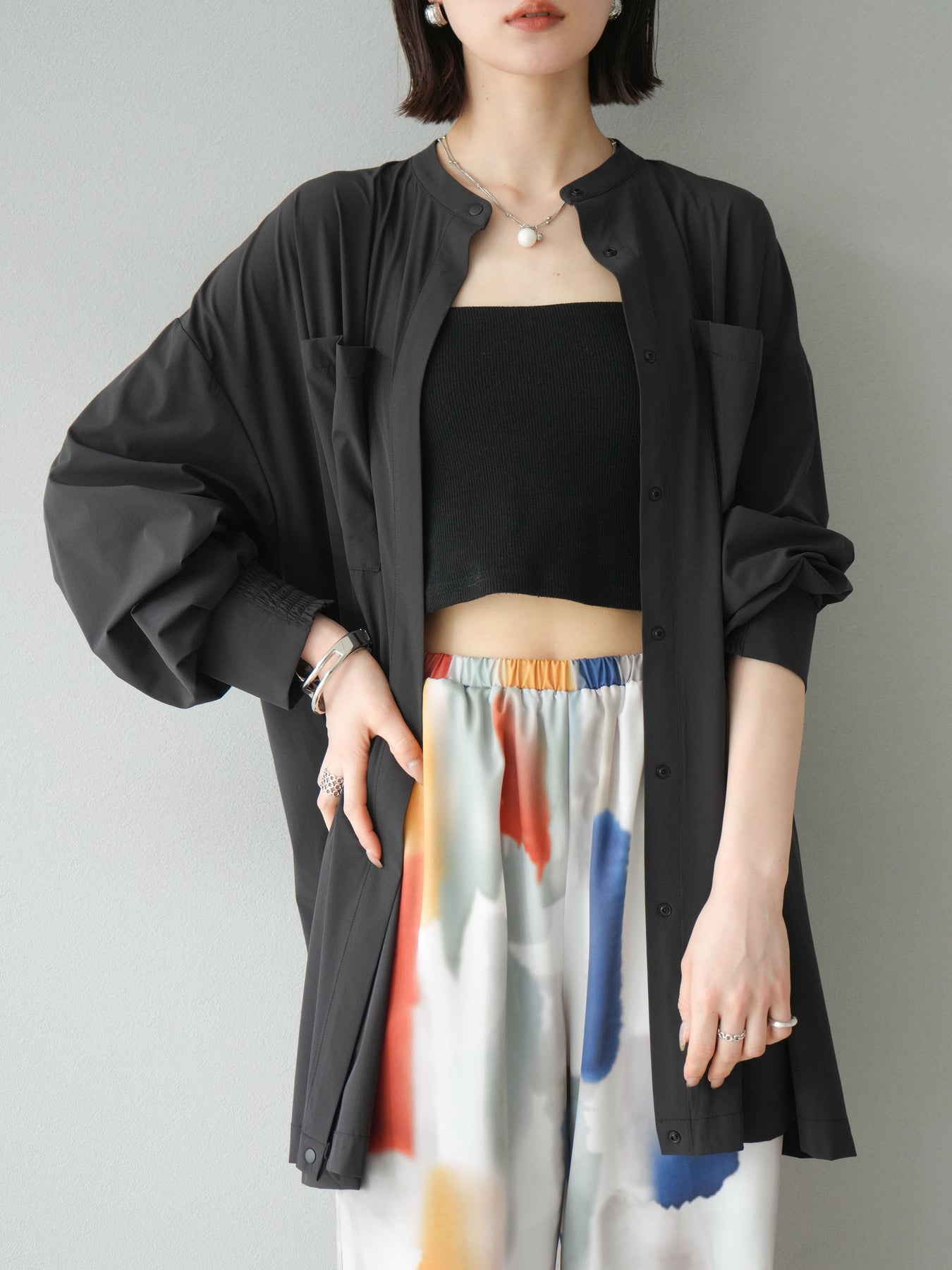 這款兩用外套採用觸感清涼的ICE TOUCH材質製成。它擁有順滑的觸感和輕盈的垂墜感,即使在炎熱天氣也能舒適穿著。簡約的立領和隱形門襟設計,讓您可以正反兩面穿著。它既可以作為襯衫穿著,也可以作為夾克穿著,讓您在整個季節都能擁有更多穿搭選擇。長度恰到好處地遮蓋臀部,非常適合隱藏身材。 *除下裝和吊帶背心(內衣)外,所有商品均不包含內衣。