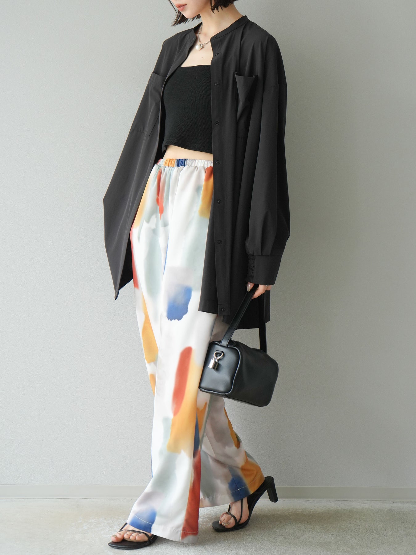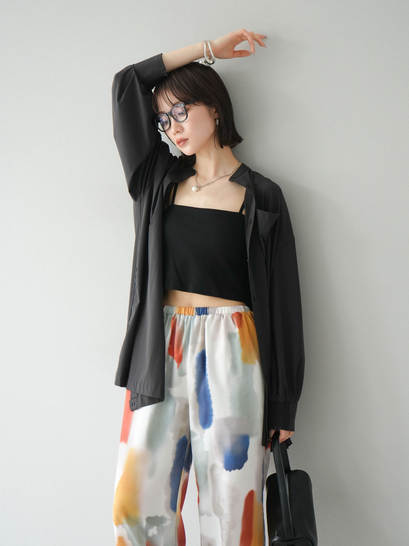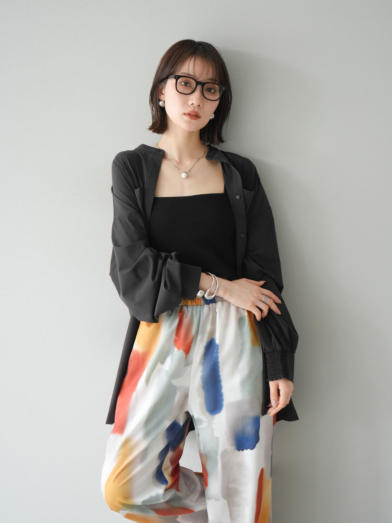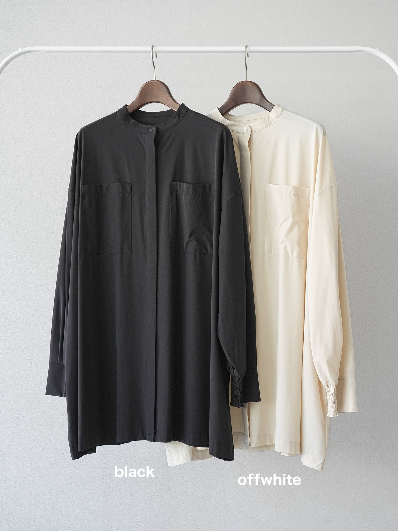這款兩用外套採用觸感清涼的ICE TOUCH材質製成。它擁有順滑的觸感和輕盈的垂墜感,即使在炎熱天氣也能舒適穿著。簡約的立領和隱形門襟設計,讓您可以正反兩面穿著。它既可以作為襯衫穿著,也可以作為夾克穿著,讓您在整個季節都能擁有更多穿搭選擇。長度恰到好處地遮蓋臀部,非常適合隱藏身材。 *除下裝和吊帶背心(內衣)外,所有商品均不包含內衣。