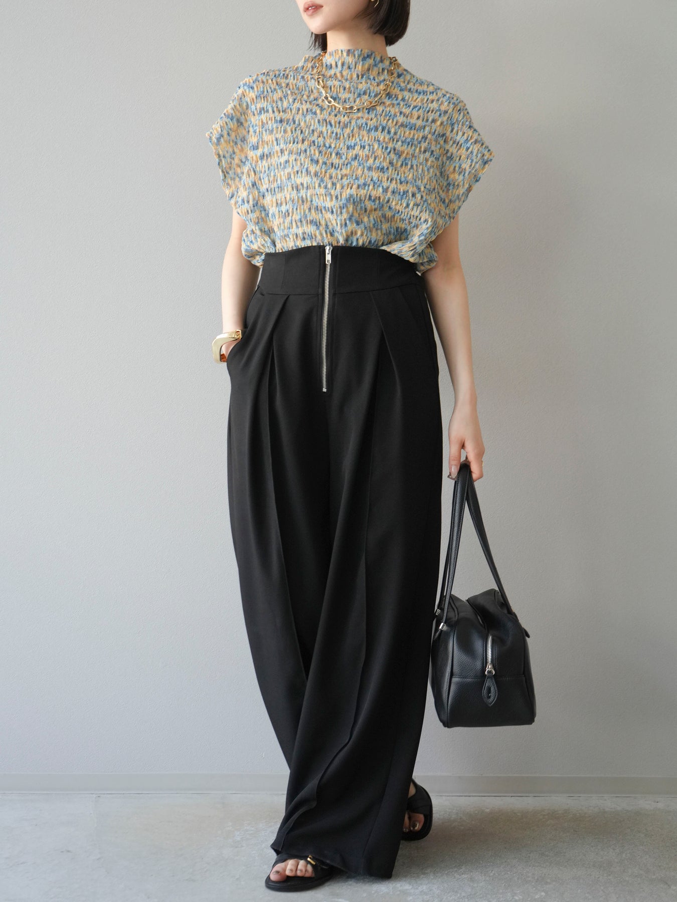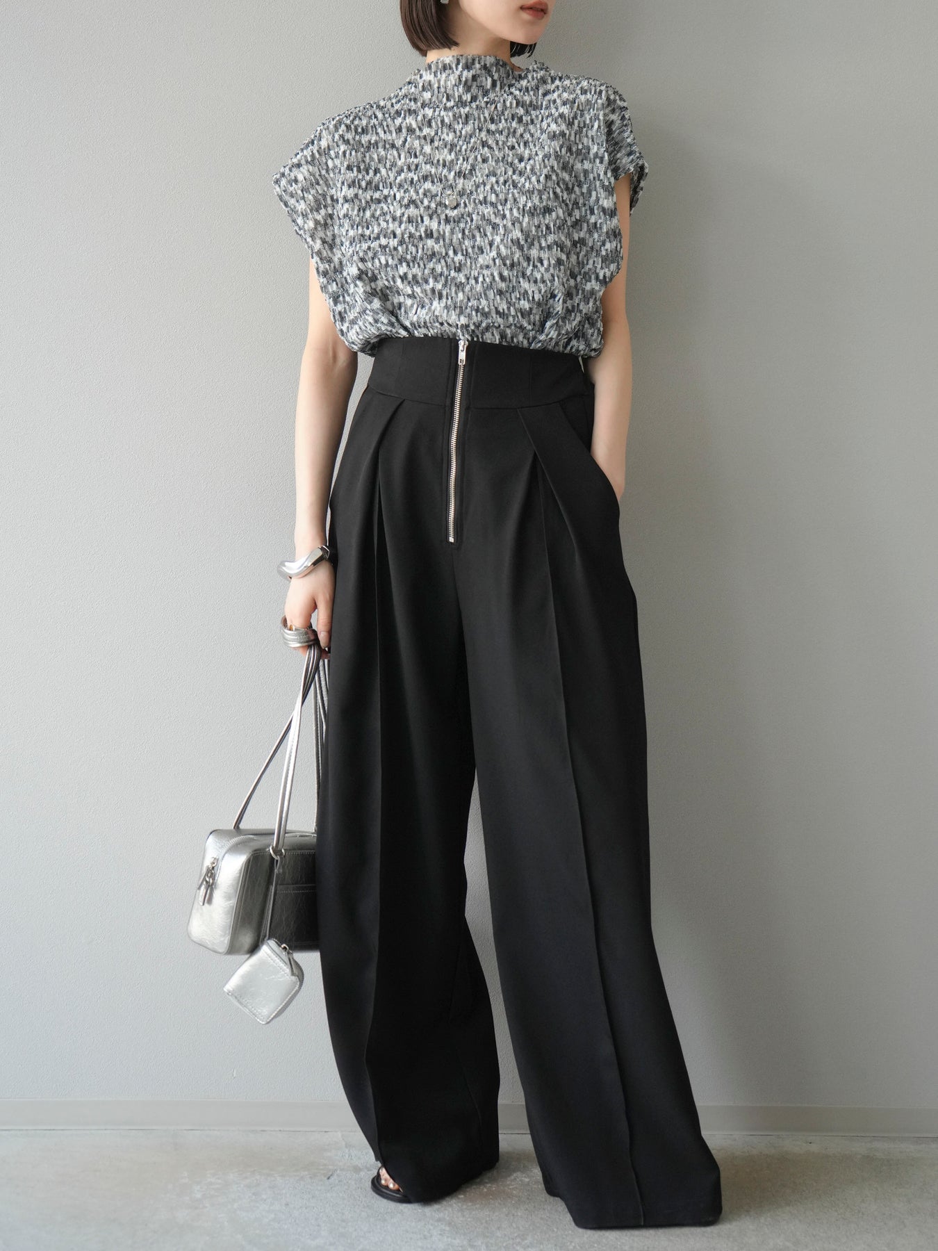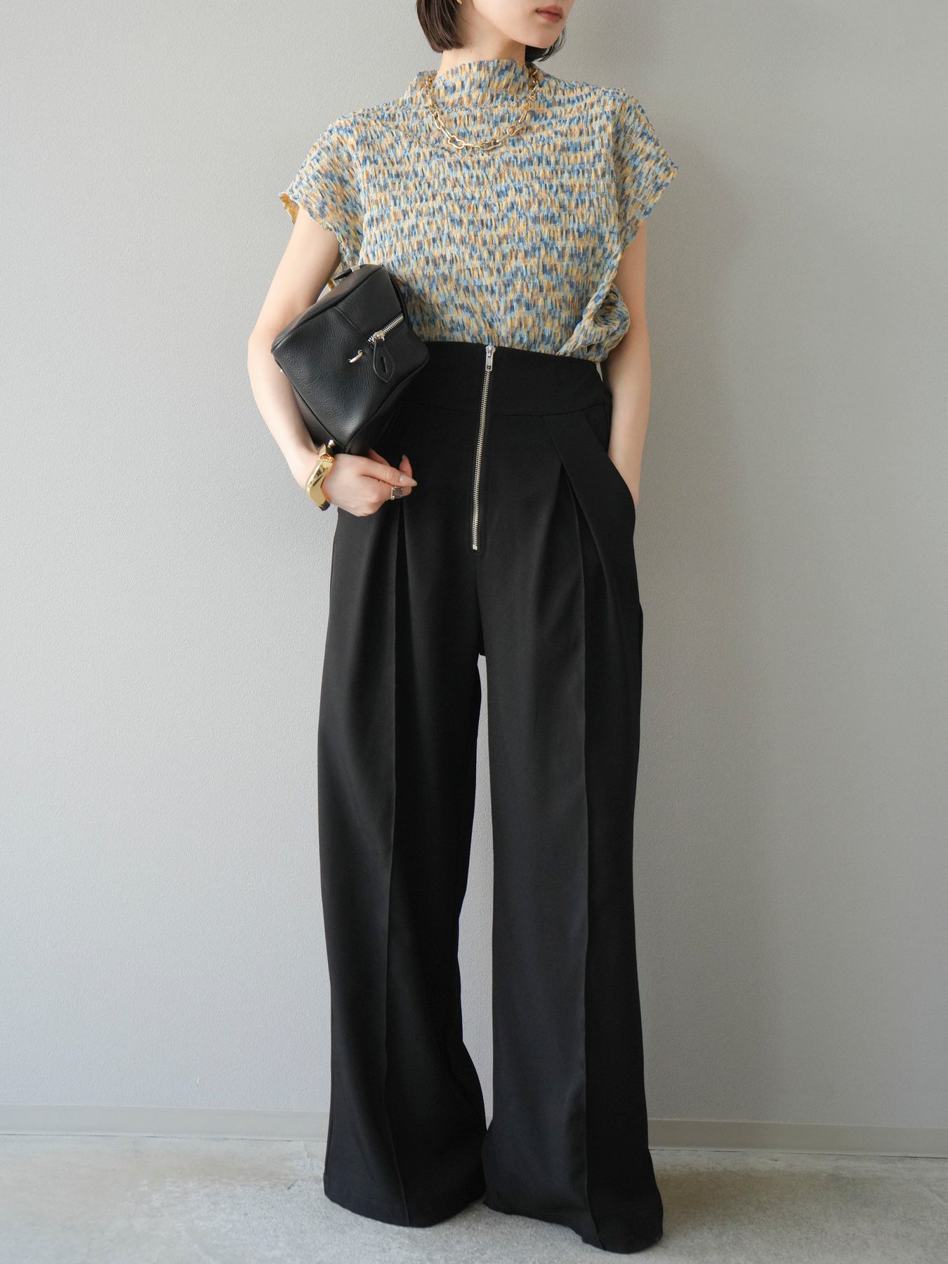 ◆ [預購] 拉鍊褶襉寬褲