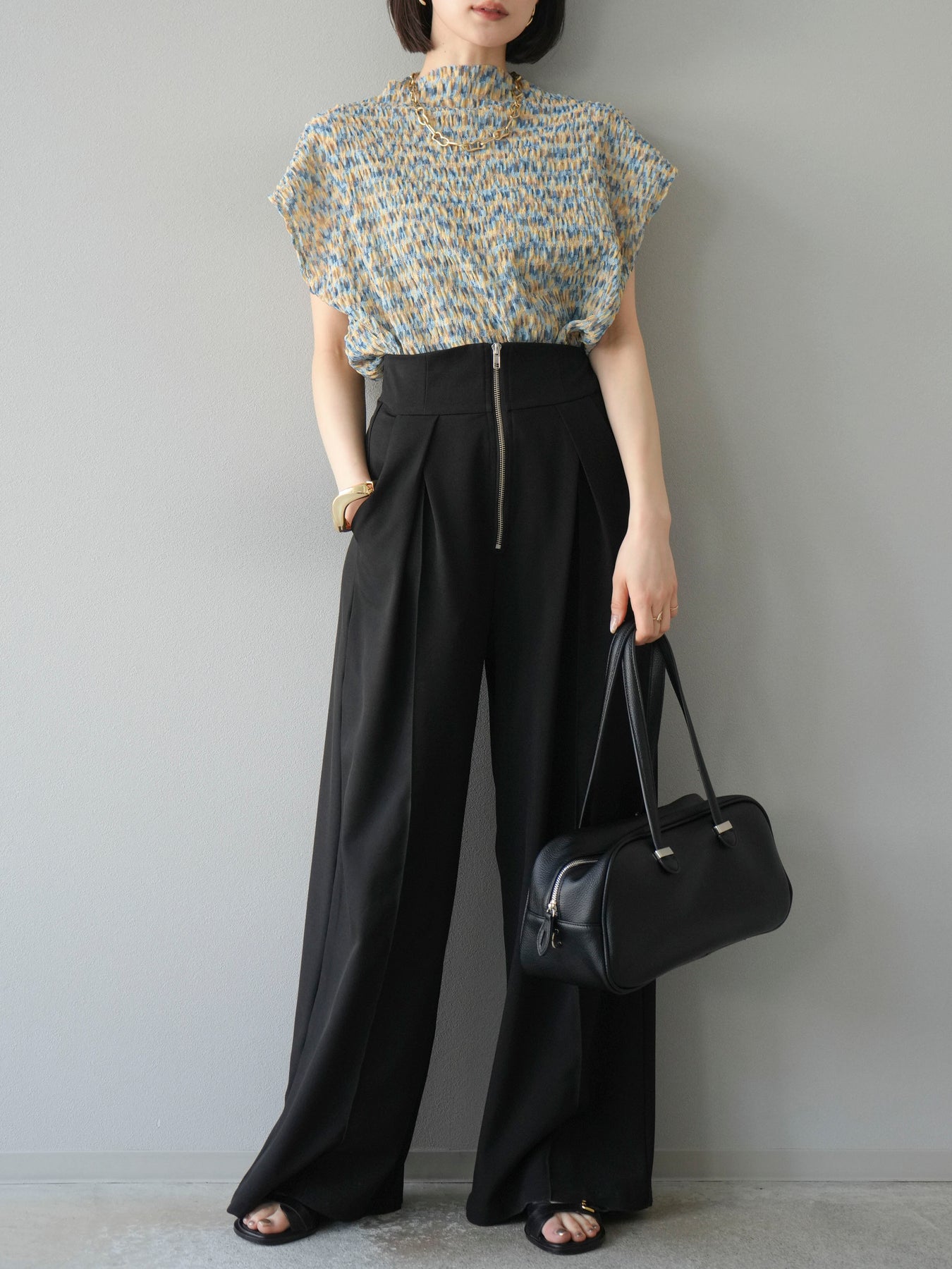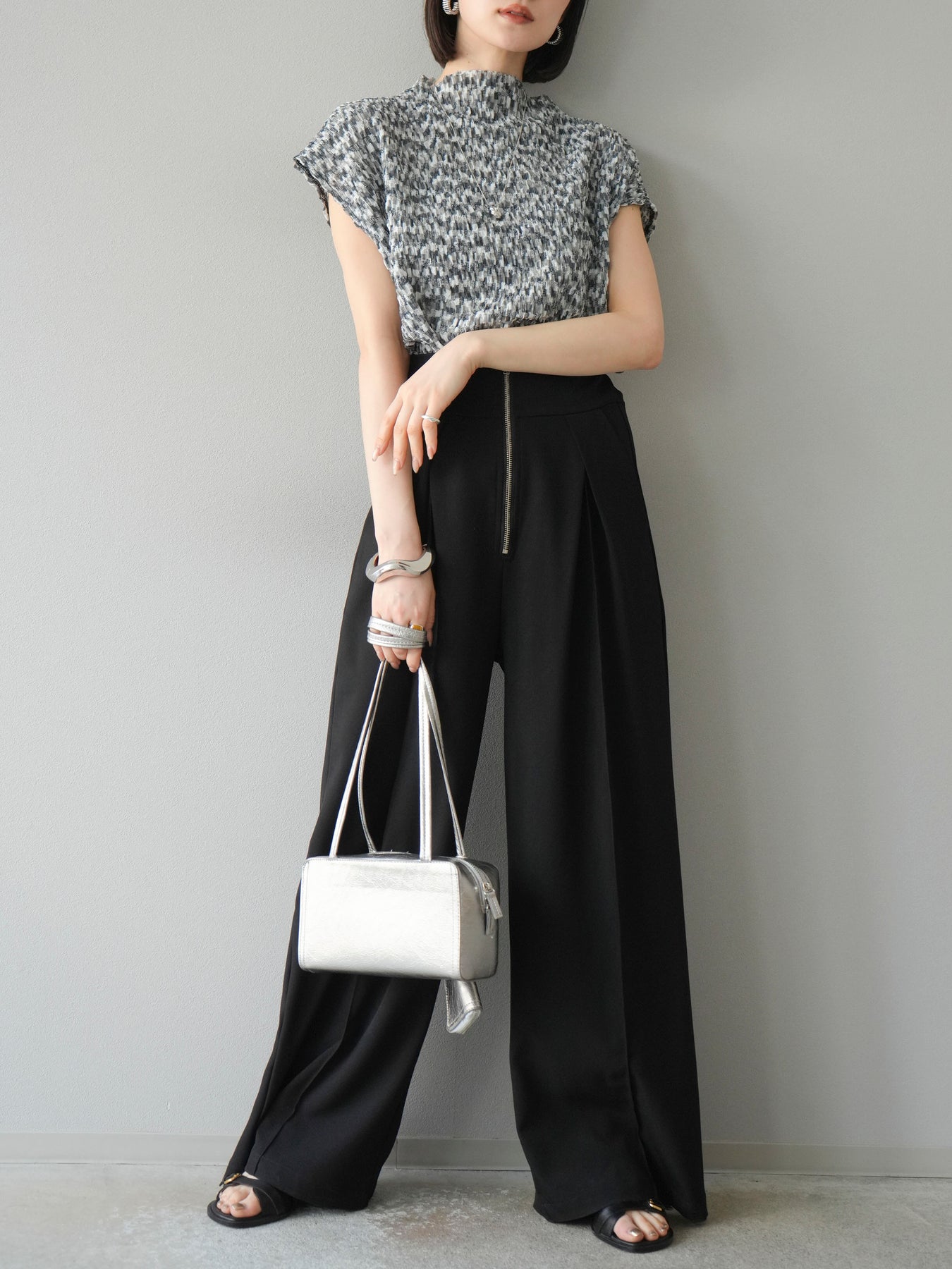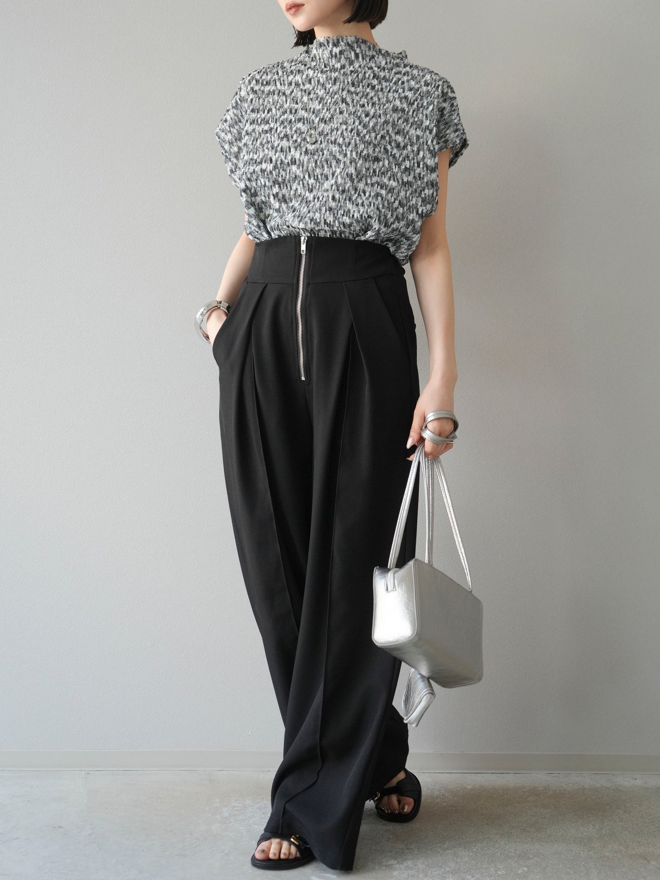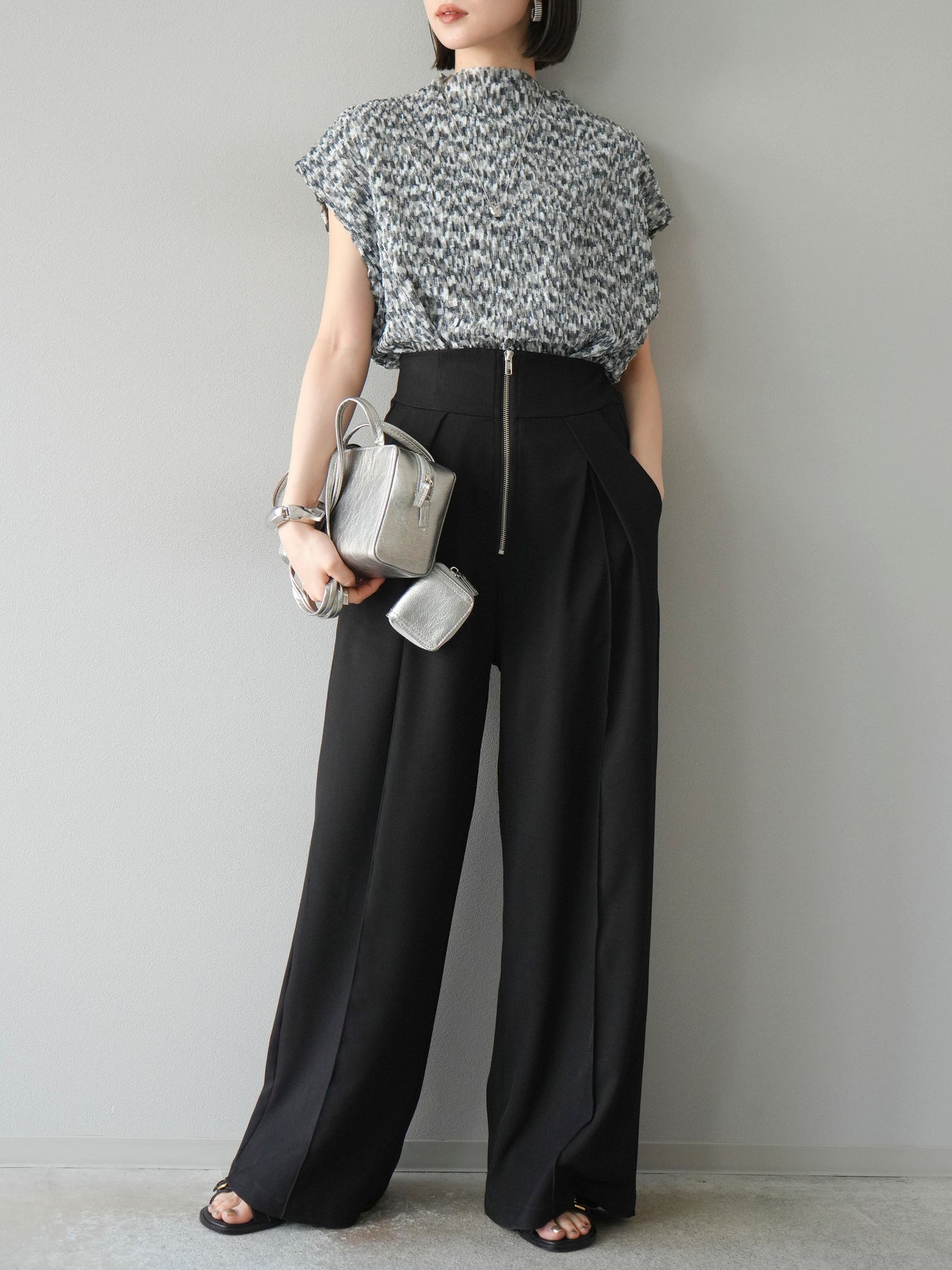 ◆ [預購] 拉鍊褶襉寬褲