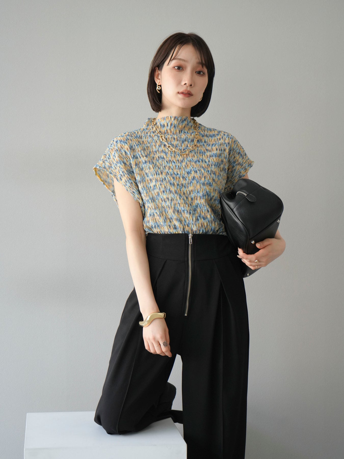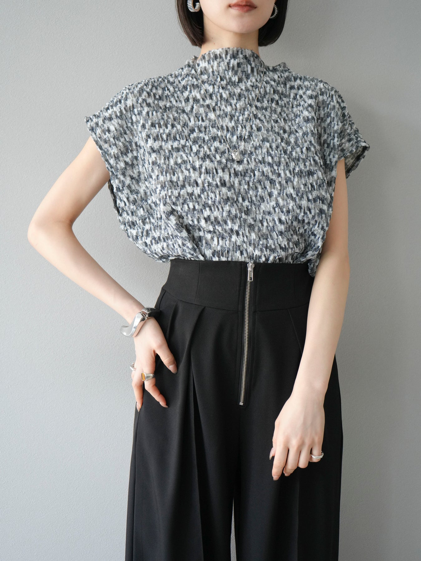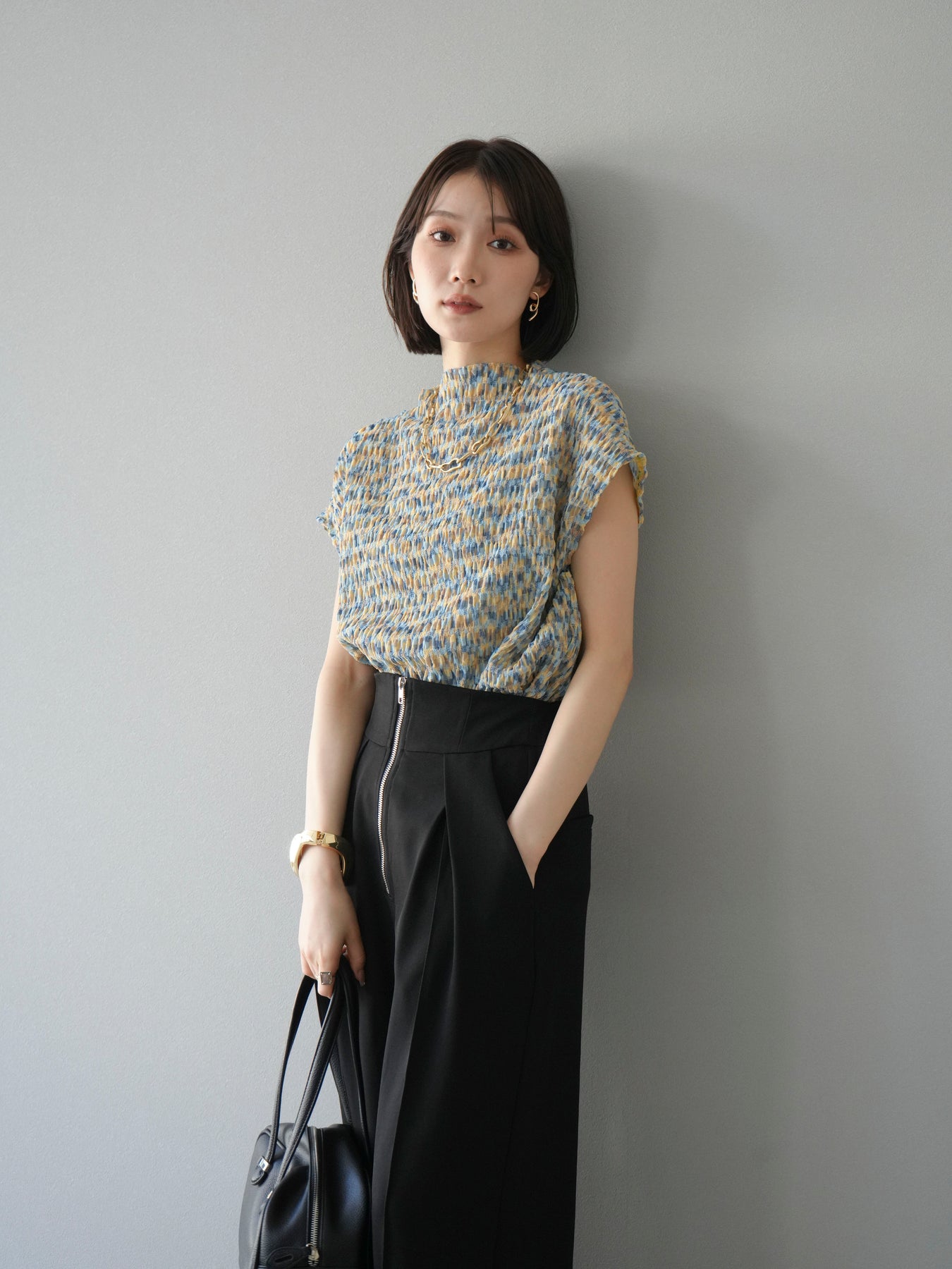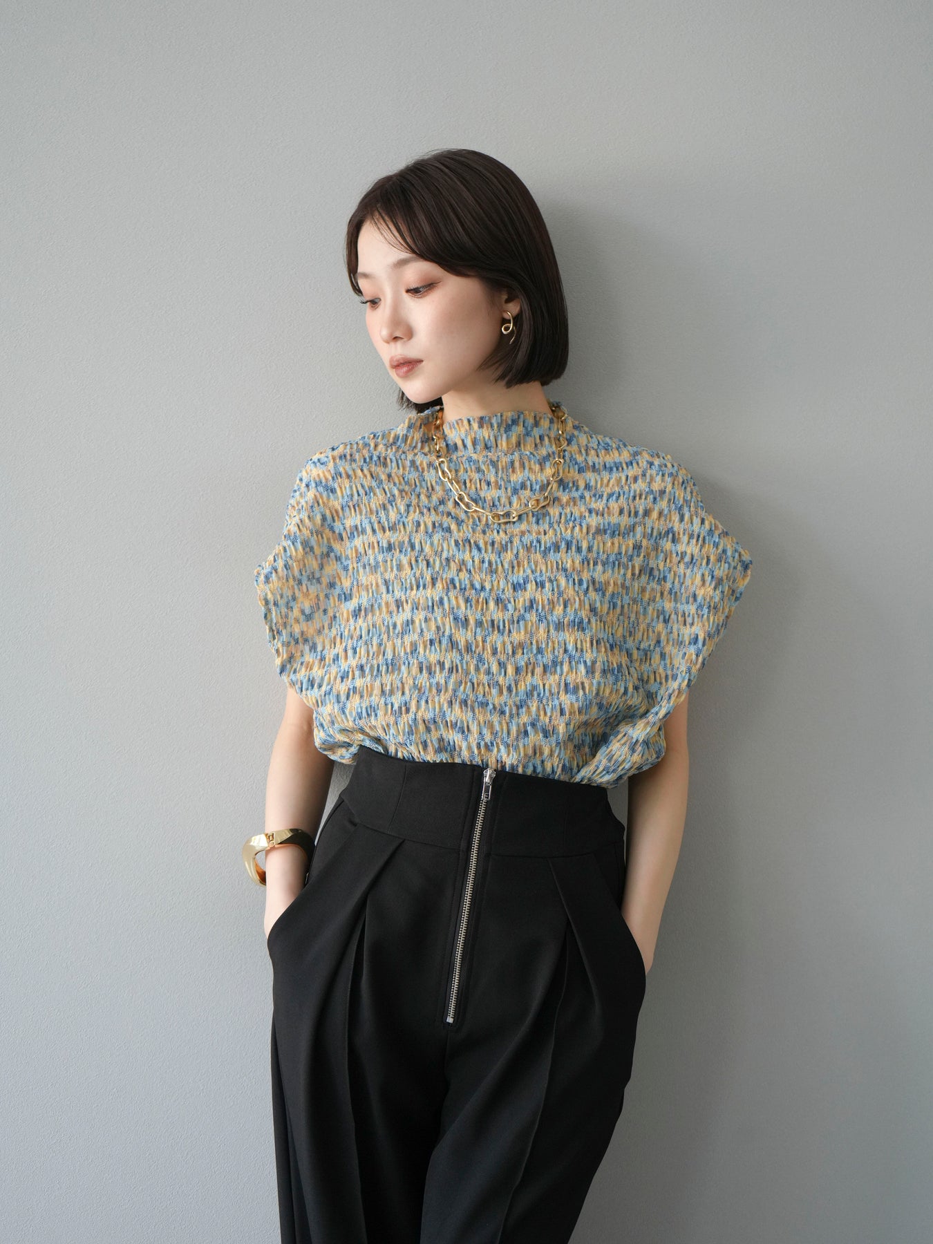多色隨意褶法式上衣,擁有細膩的隨意褶皺和華麗的多色圖案。富有表現力的凹凸感和輕盈的質感,是單穿也十分好看的簡約單品。法式袖設計略帶休閒感,恰到好處地遮蓋了令人煩惱的手臂區域。彈性布料穿著舒適,可搭配牛仔褲、裙子等各種下裝。這件單品能為您的夏季造型增添亮點。 *除下裝及吊帶背心(內搭)外,其他商品皆不包含內搭。